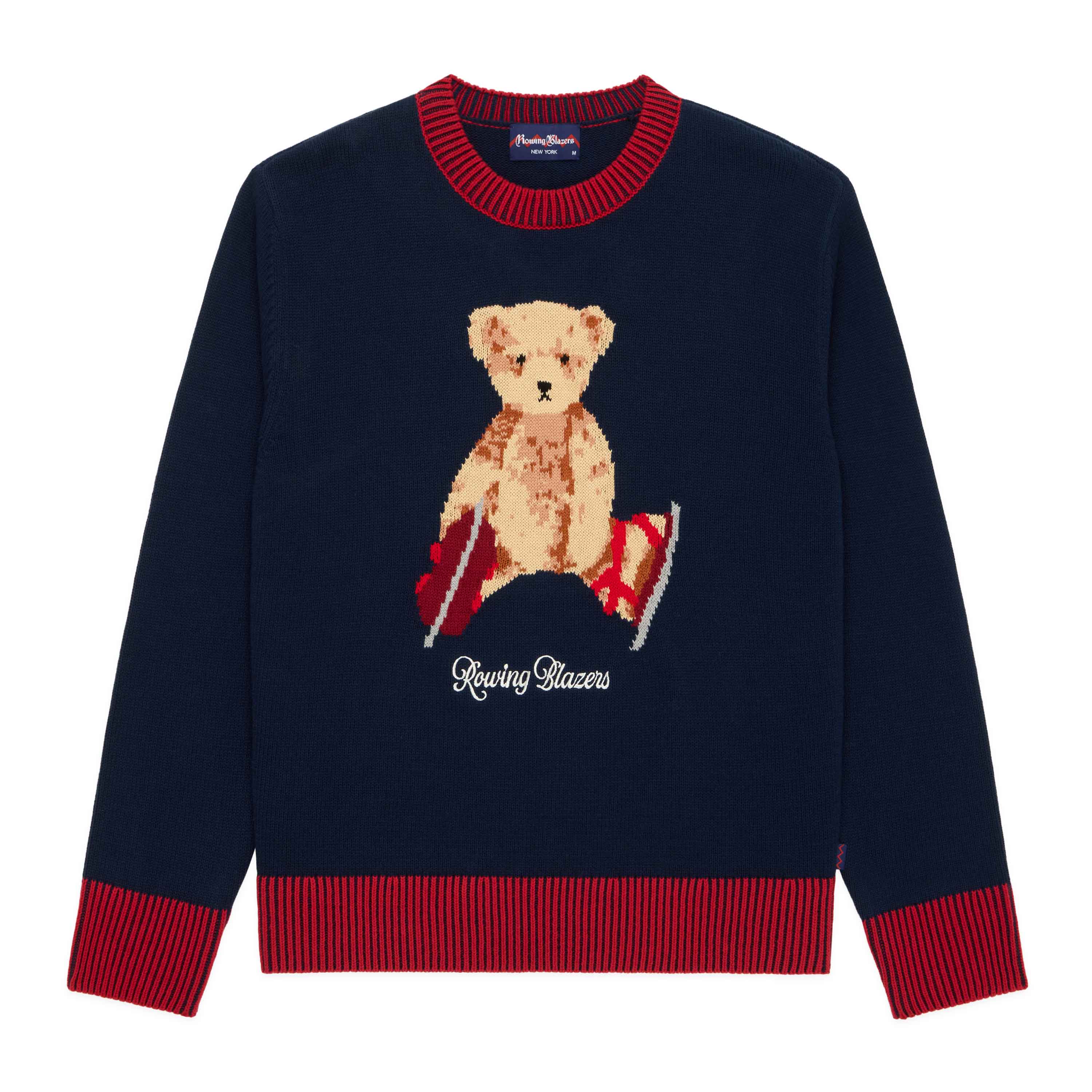 - Cotton-and-cashmere blend crewneck sweater with a bear in ice skates on the chest