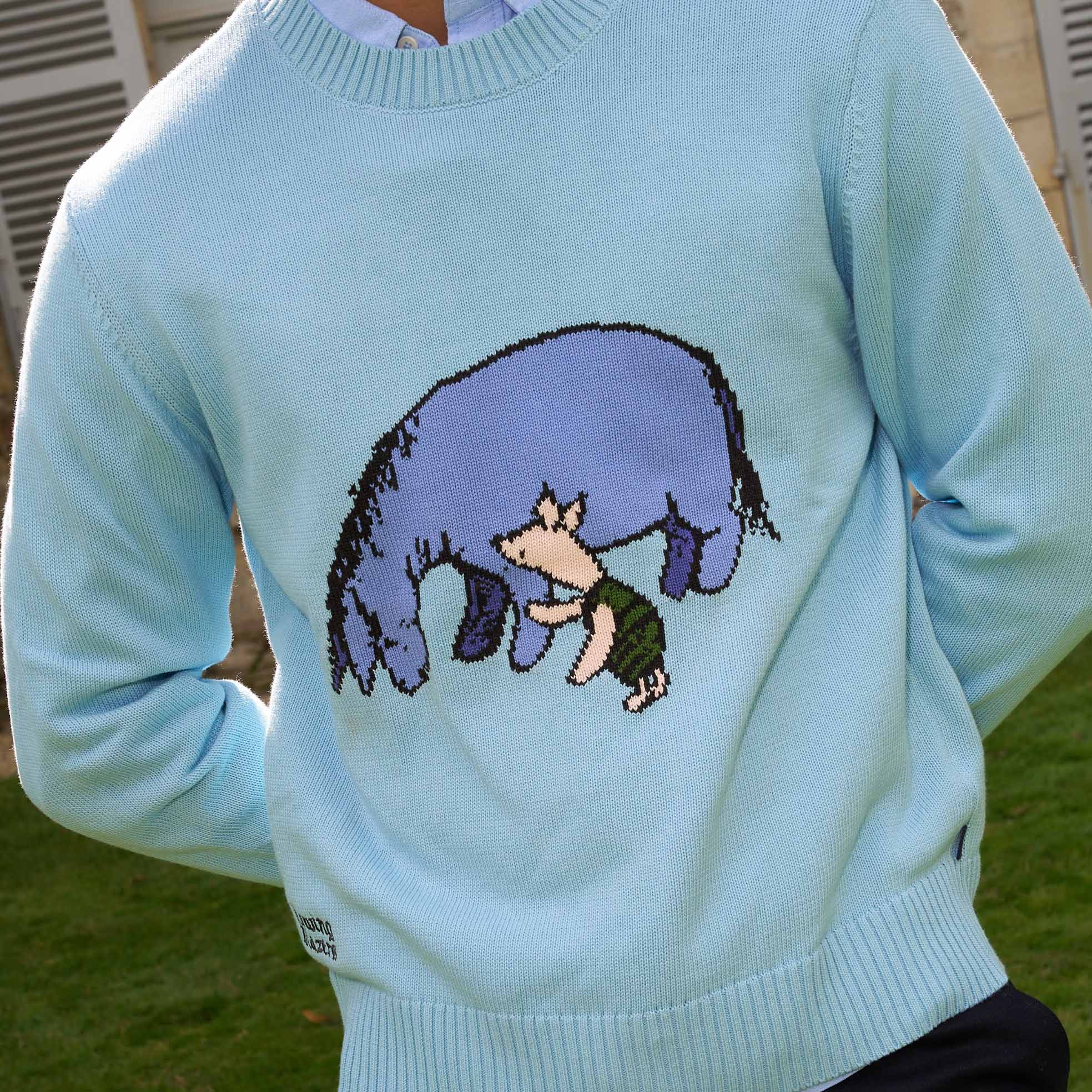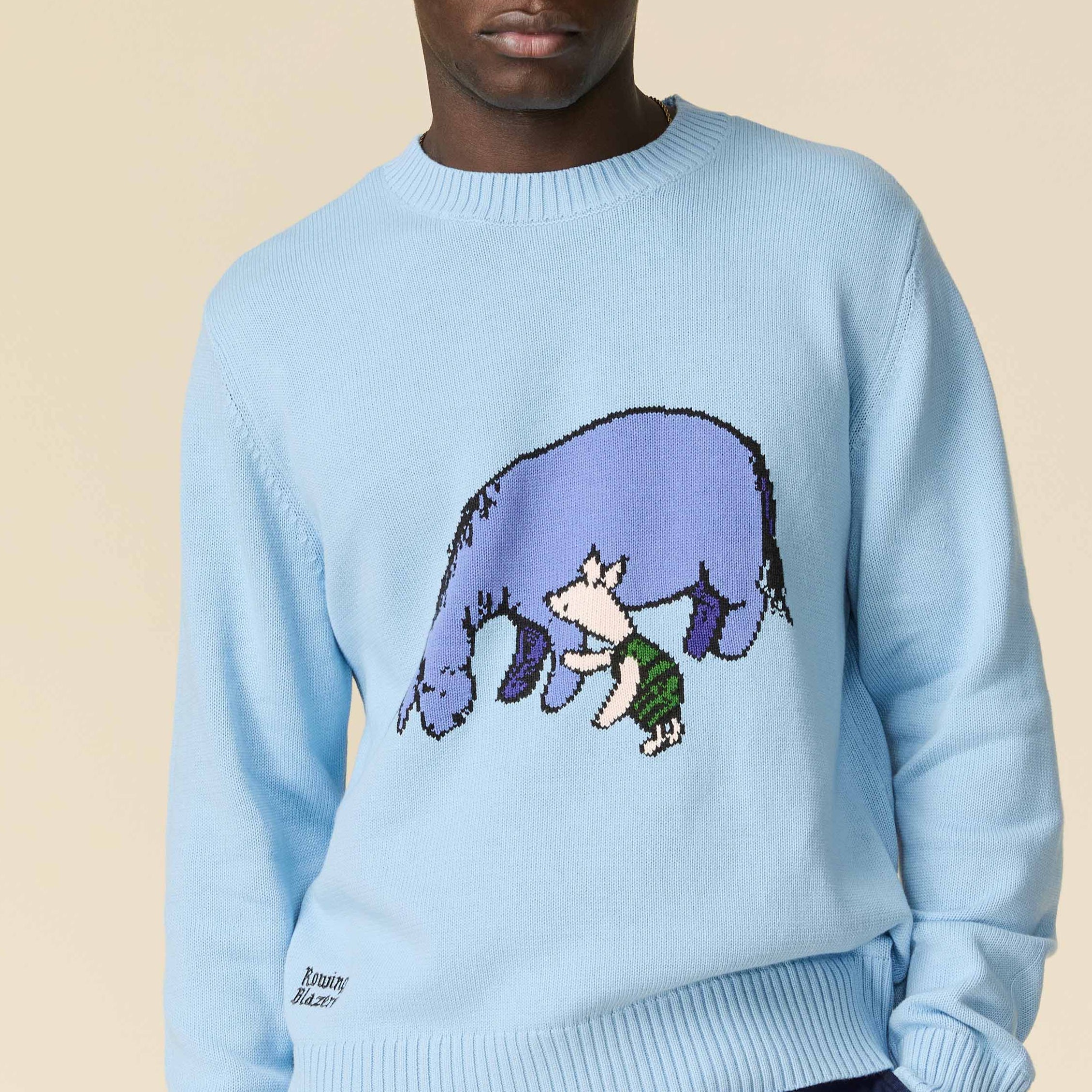 Men's Cotton Eeyore and Piglet Sweater Blue