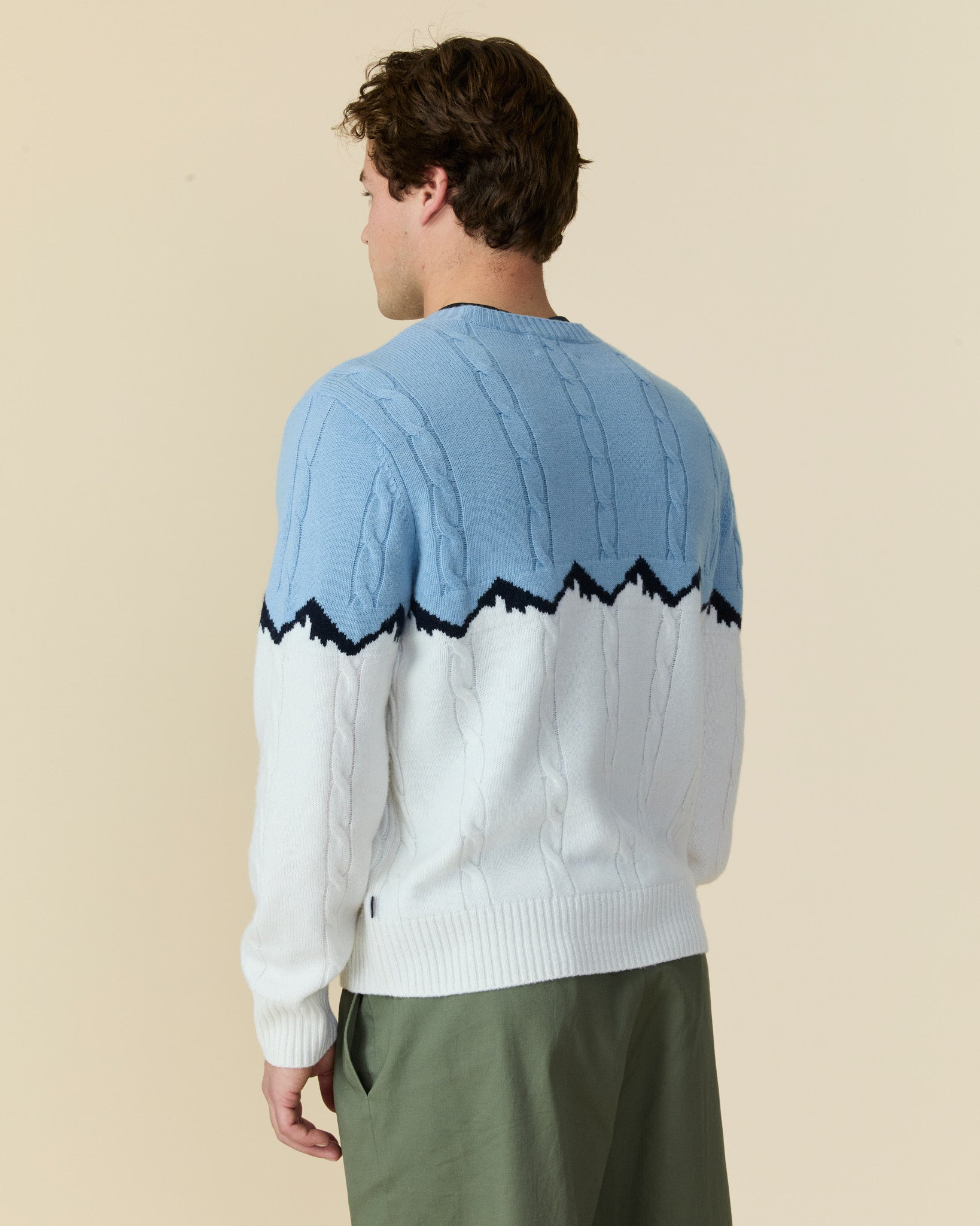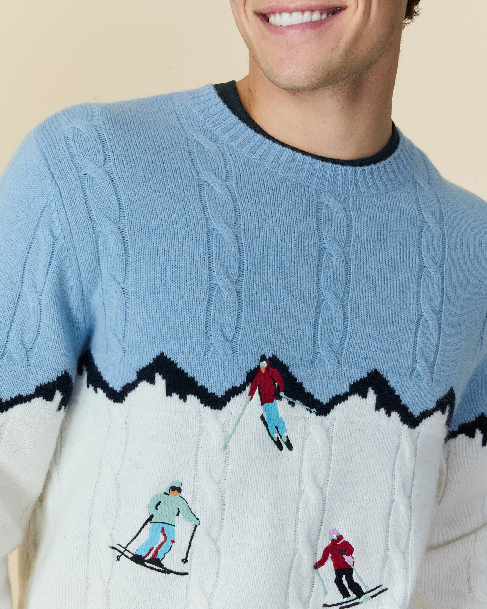 Men's Cashmere Apres Skis Cable Knit Sweater Blue Multi
