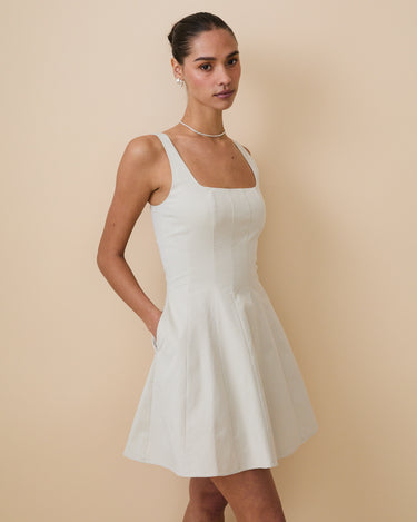 • Fitted at the waist with a flowy skirt from the waist down