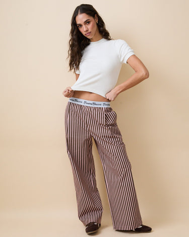 Women's Poplin Pant Chocolate Rose Stripe