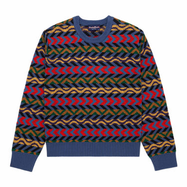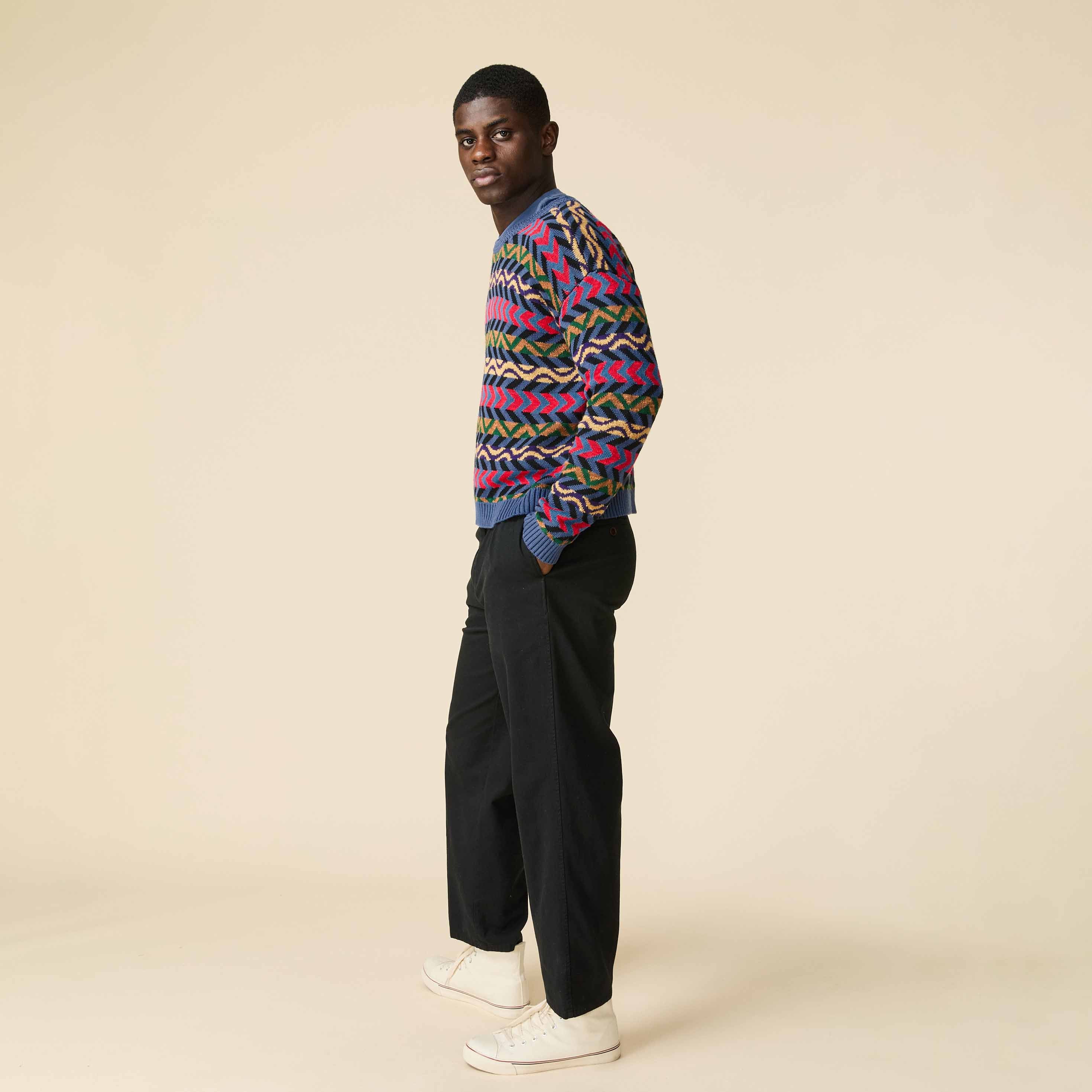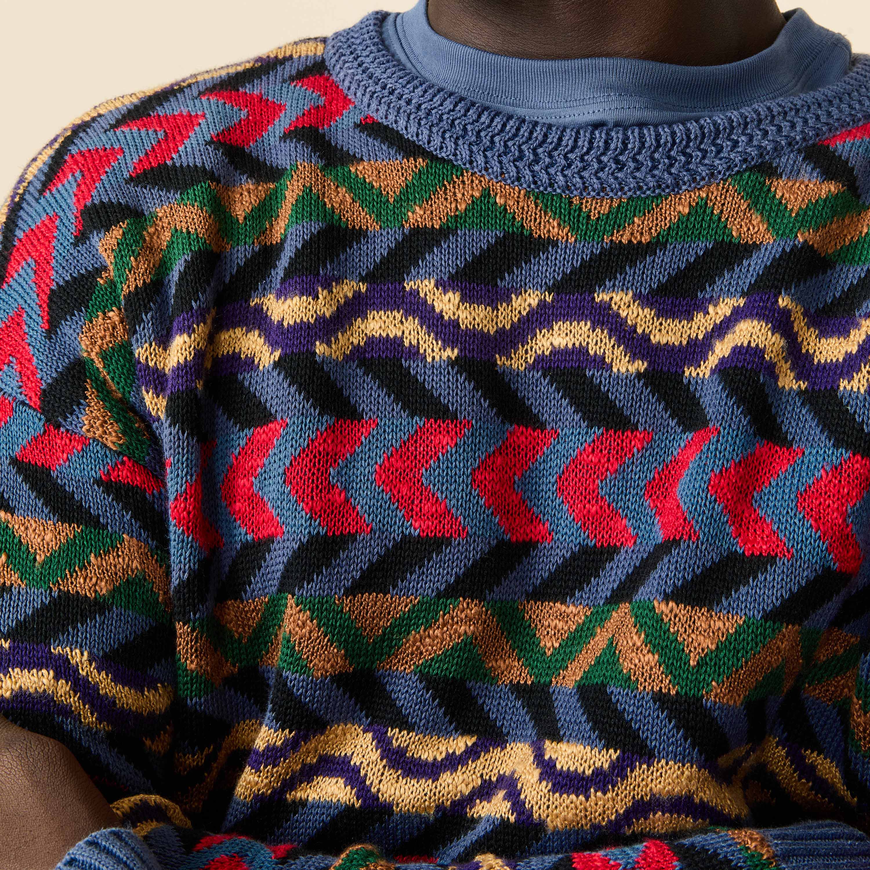 • Men’s crewneck sweater with a retro-inspired geometric stripe pattern