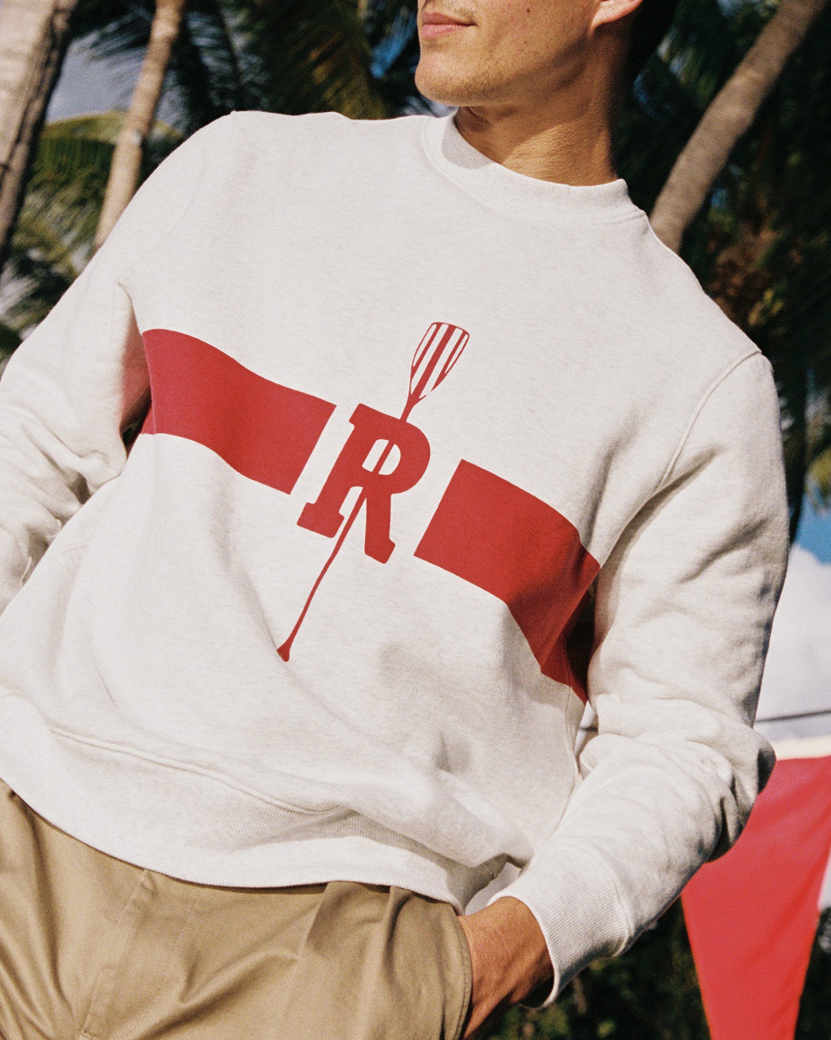 • Classic oar motif and bold red “R” with thick red stripe