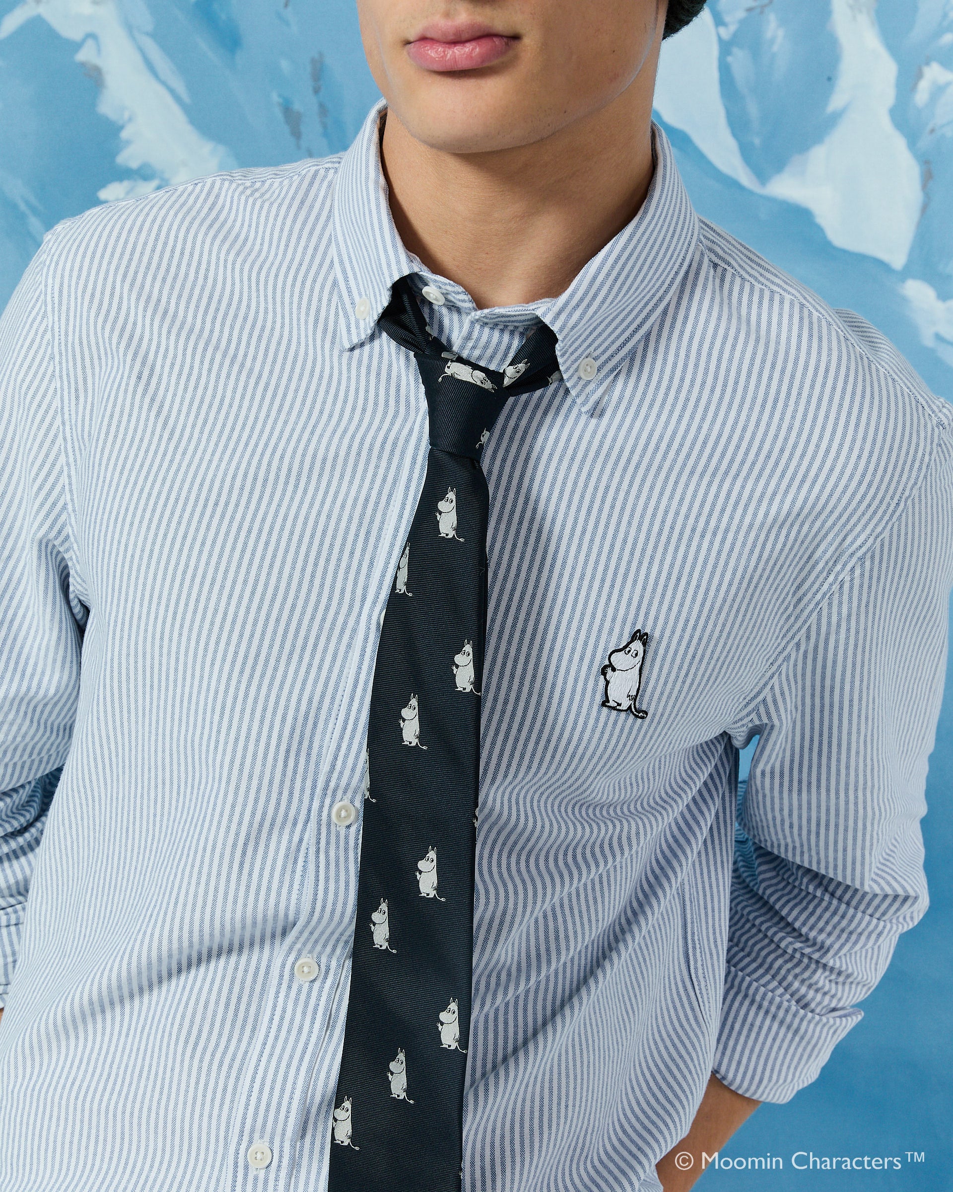 - Classic striped Oxford cloth button-down with an embroidered Moomin icon on the left chest