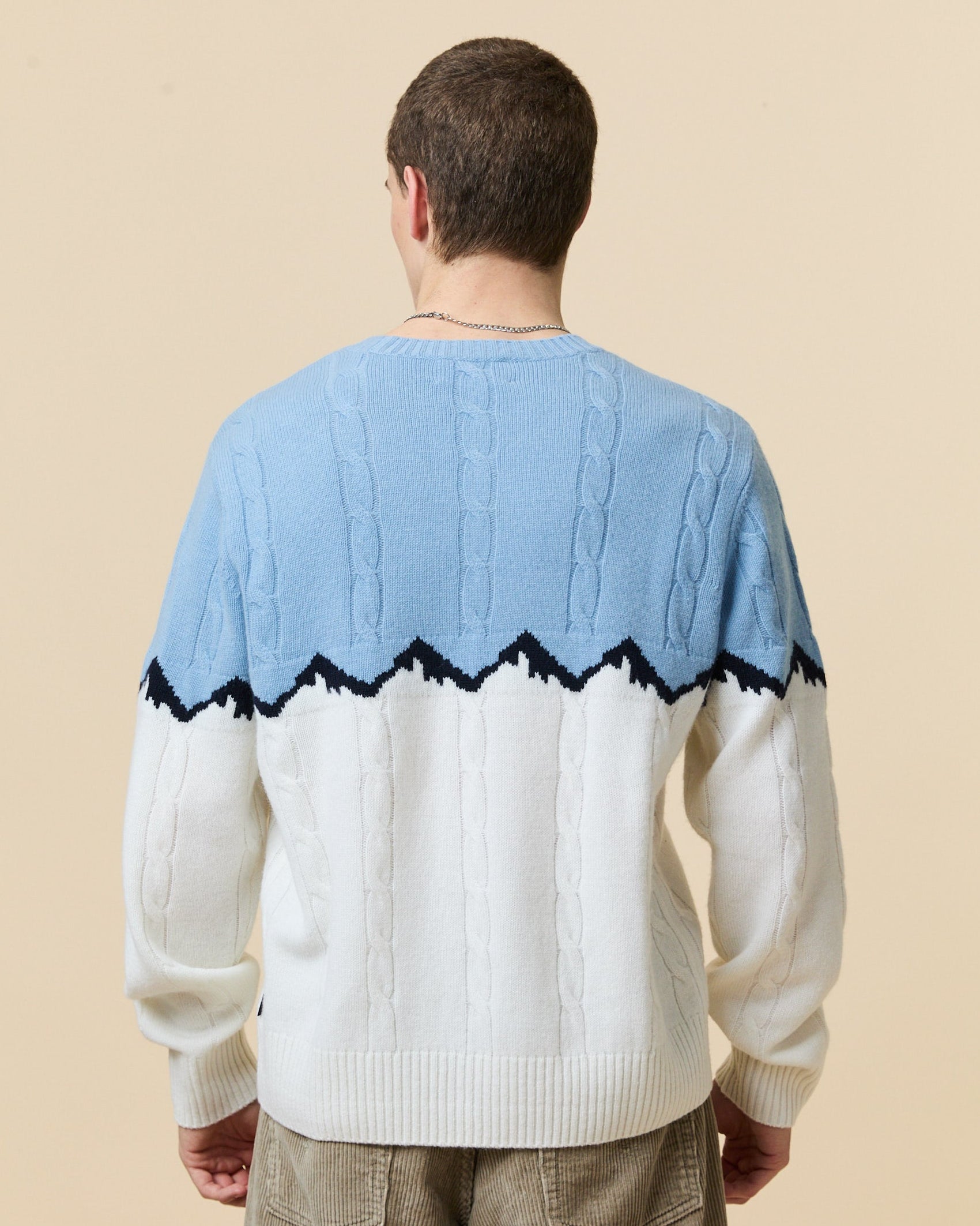 Men's Cashmere Apres Skis Cable Knit Sweater Blue Multi