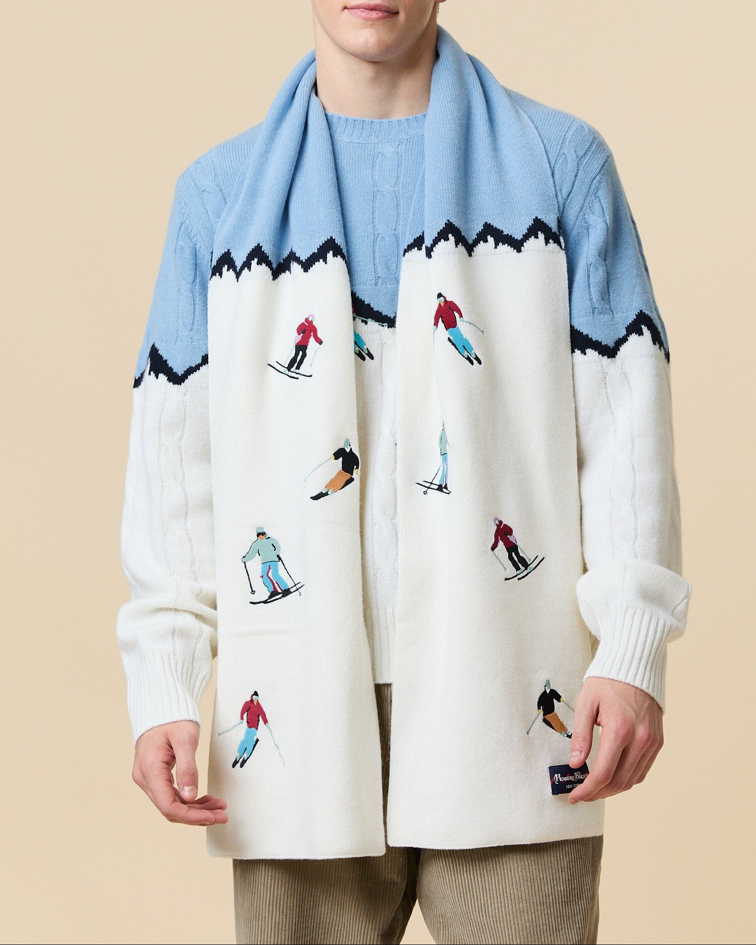 - Ribbed collar, cuffs and hem. Embroidered skiers Pairs with our Men’s Cashmere Après-Ski Scarf
