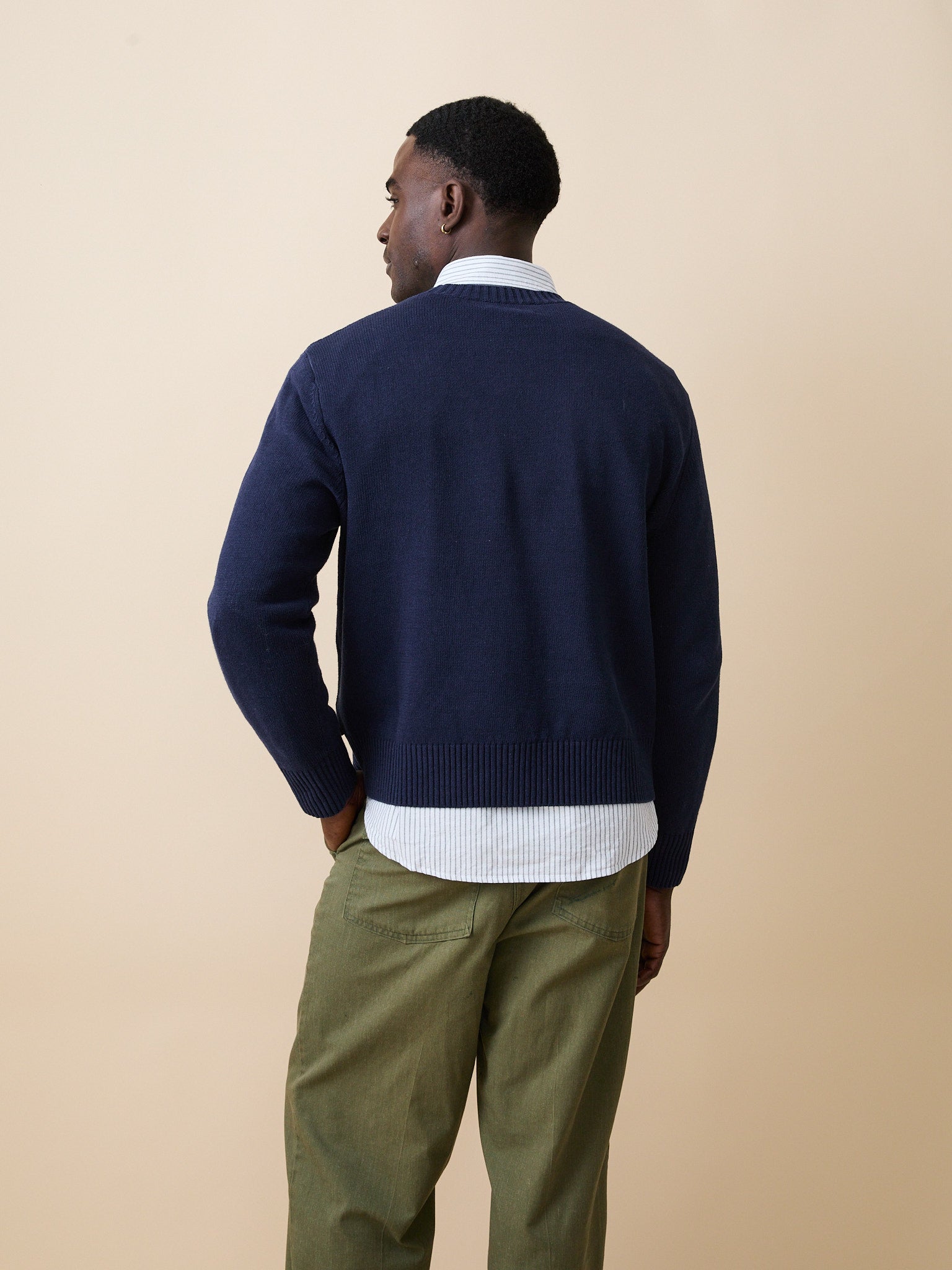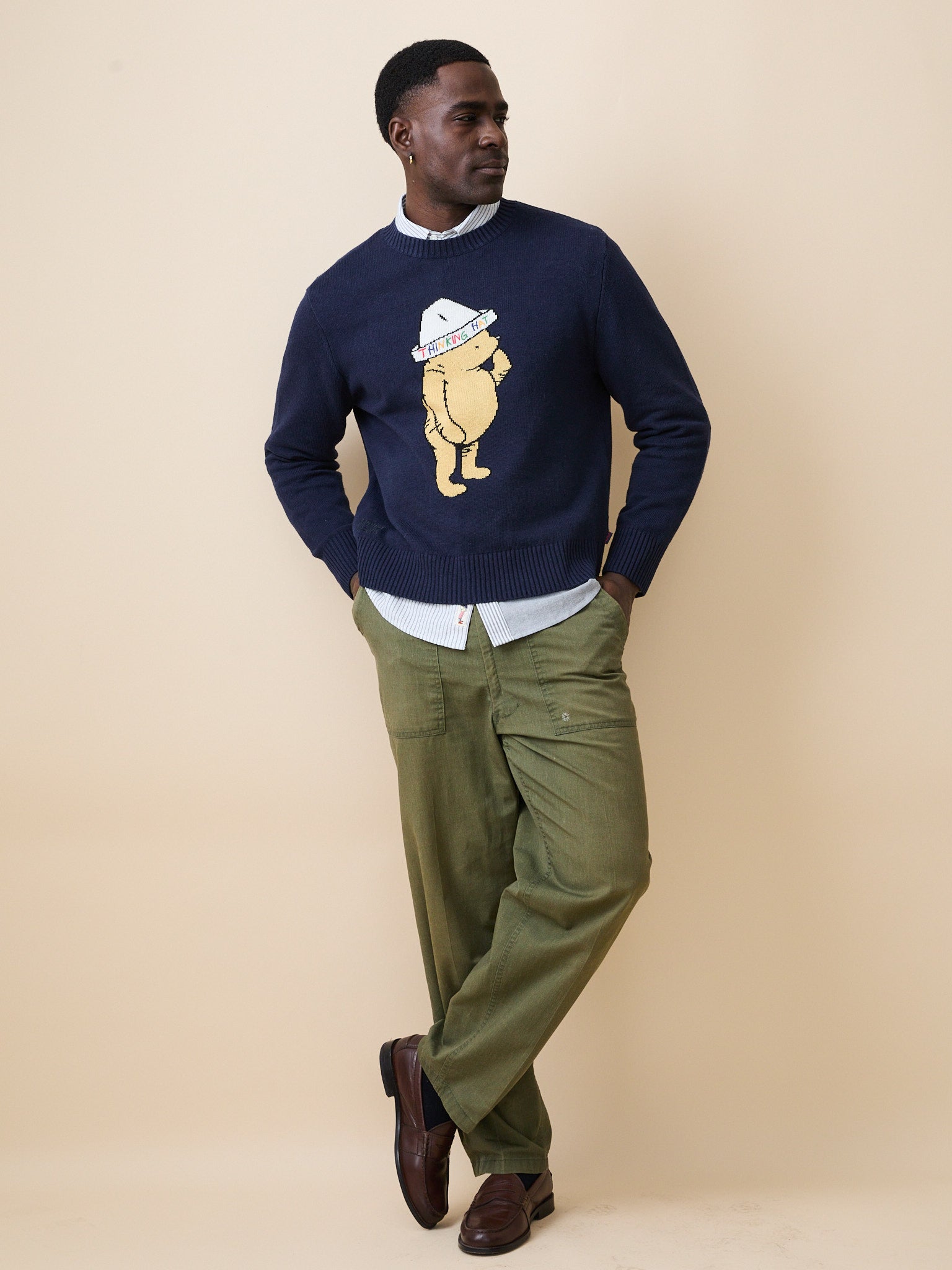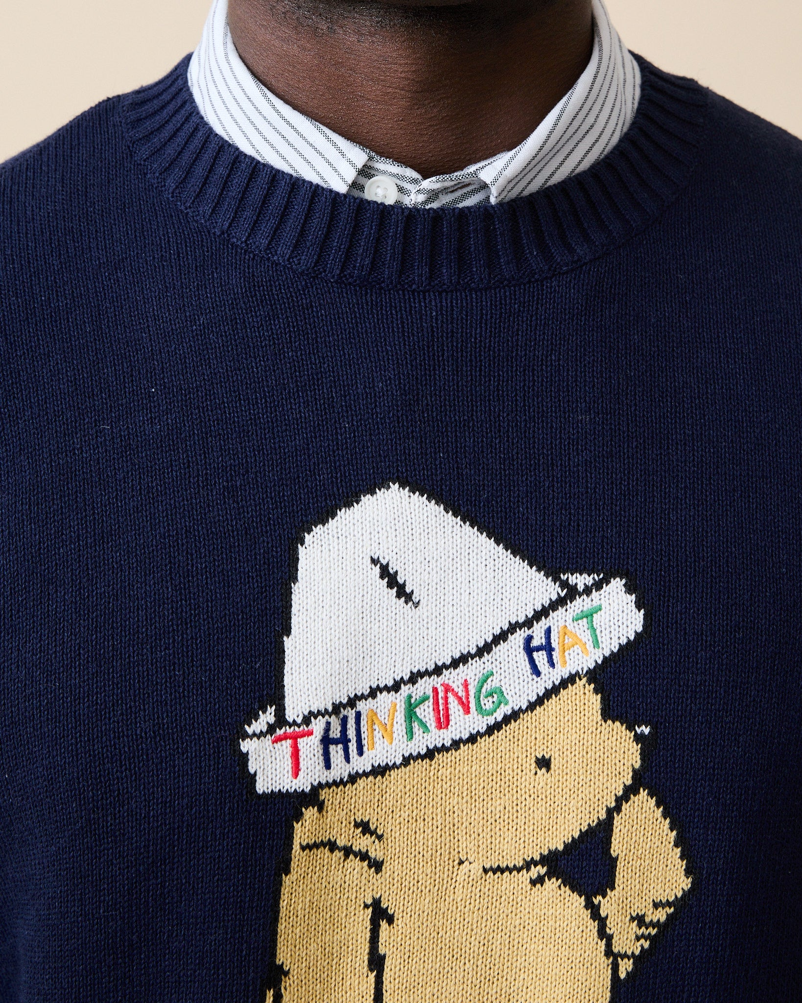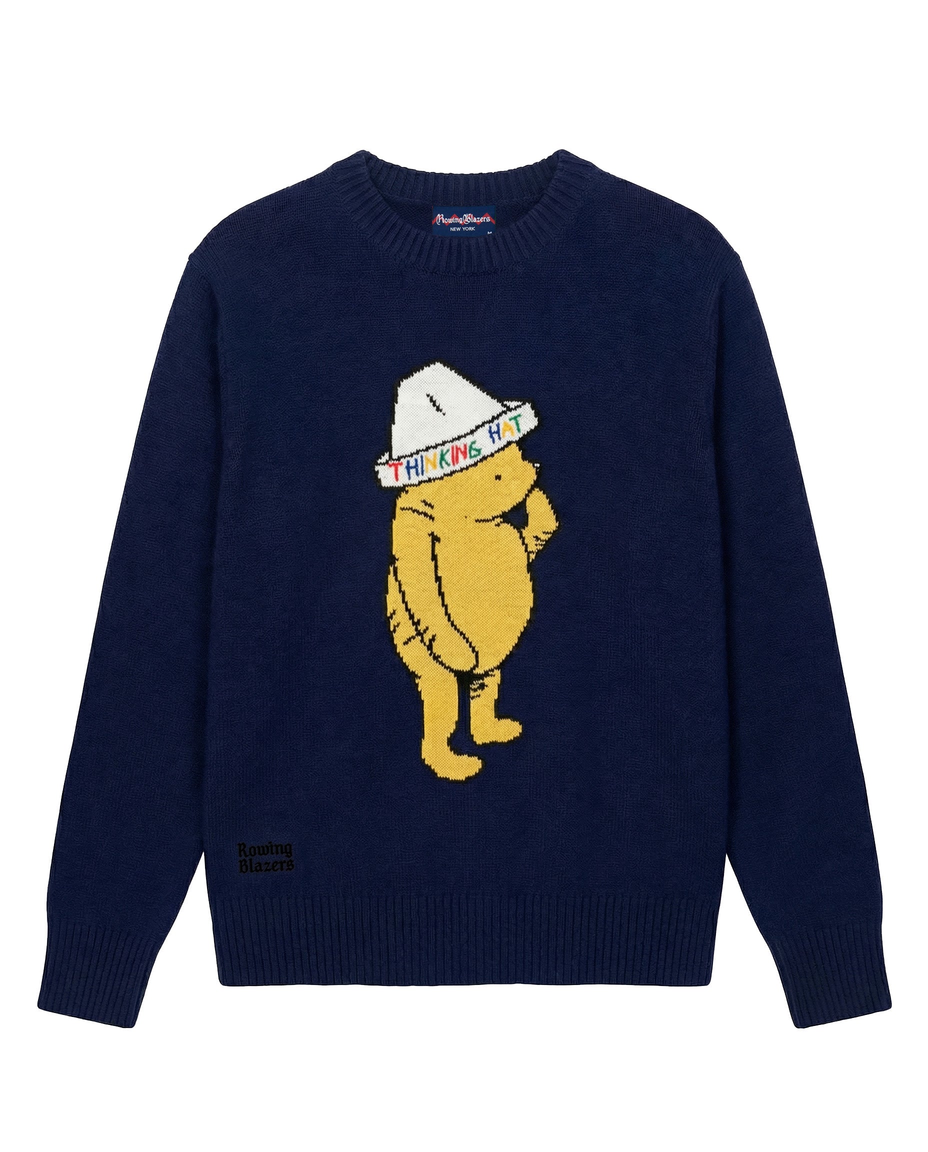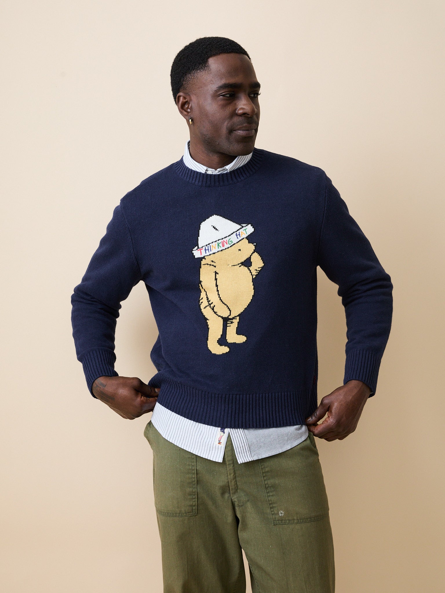 Men's Cotton Linen Thinking Hat Pooh Sweater Navy