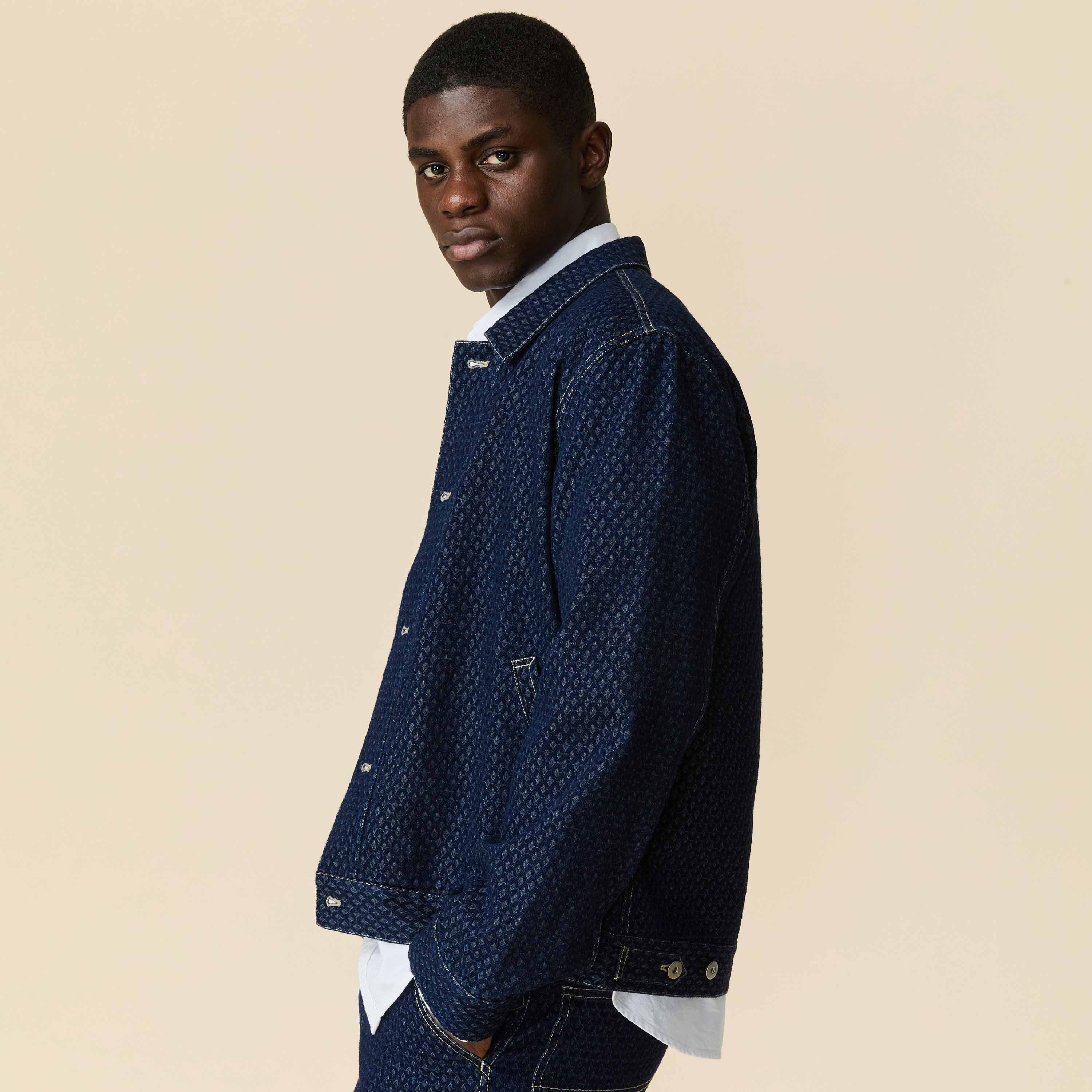 - Men’s cotton denim jacket with an all-over Jacquard-knit tonal pattern