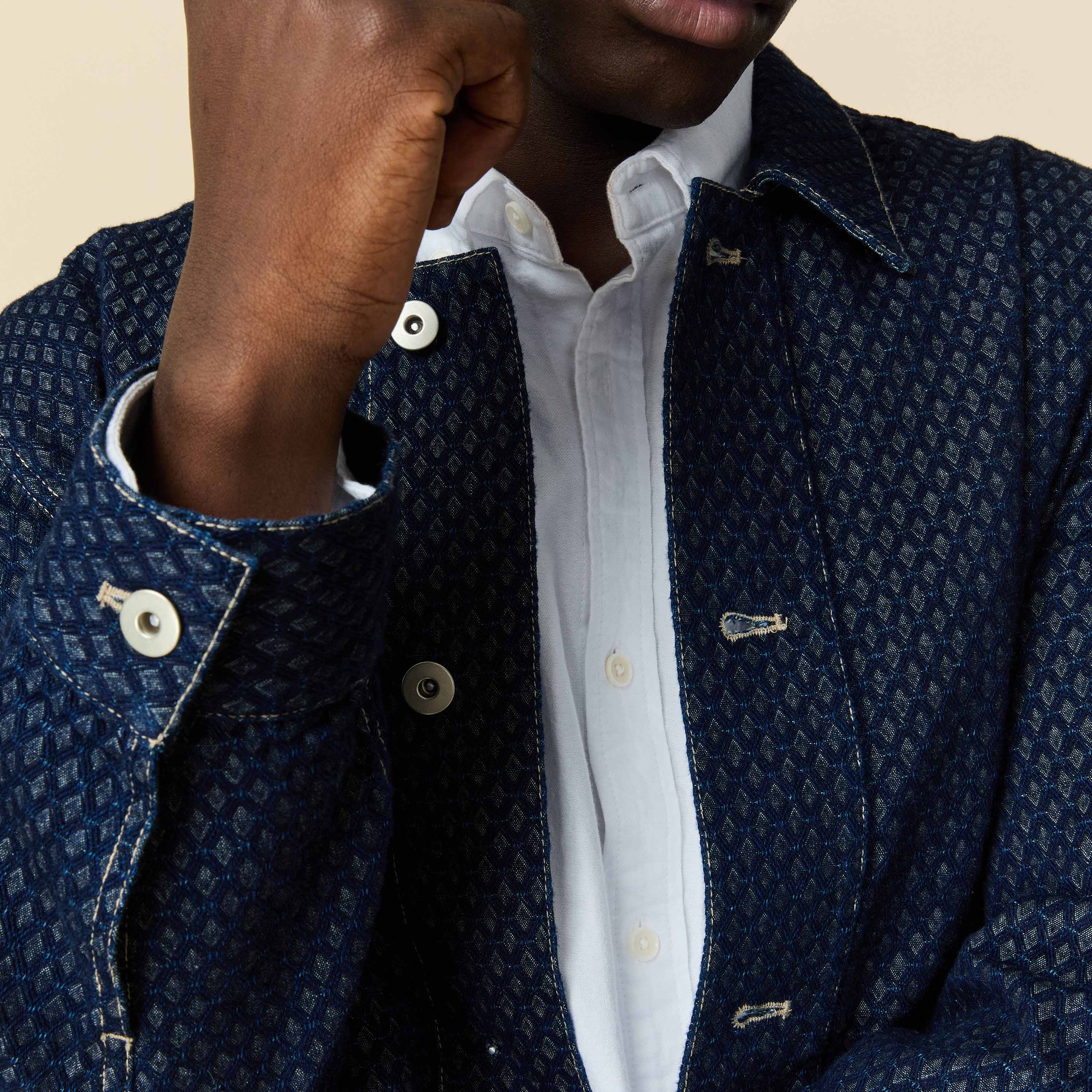- Pairs with Men’s Indigo Jacquard Denim Pant