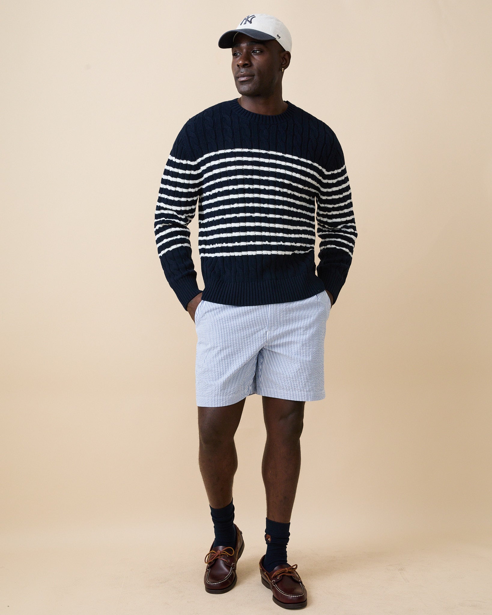 Men's Mariner Stripe Cable Knit Sweater Navy/White Stripe