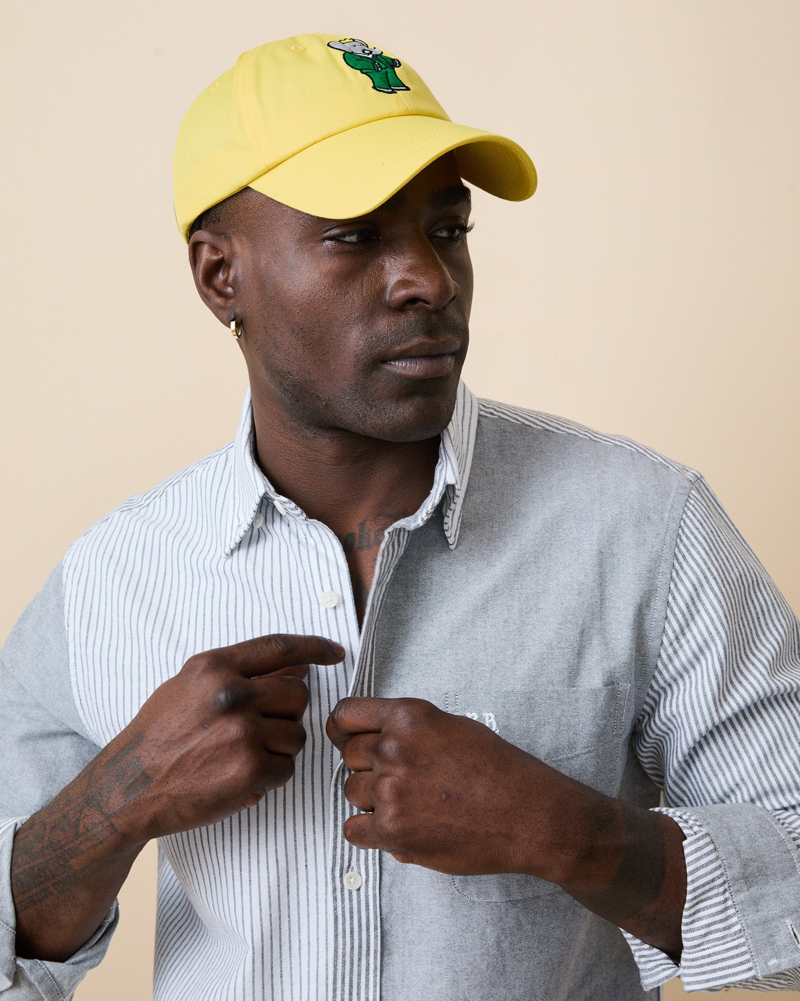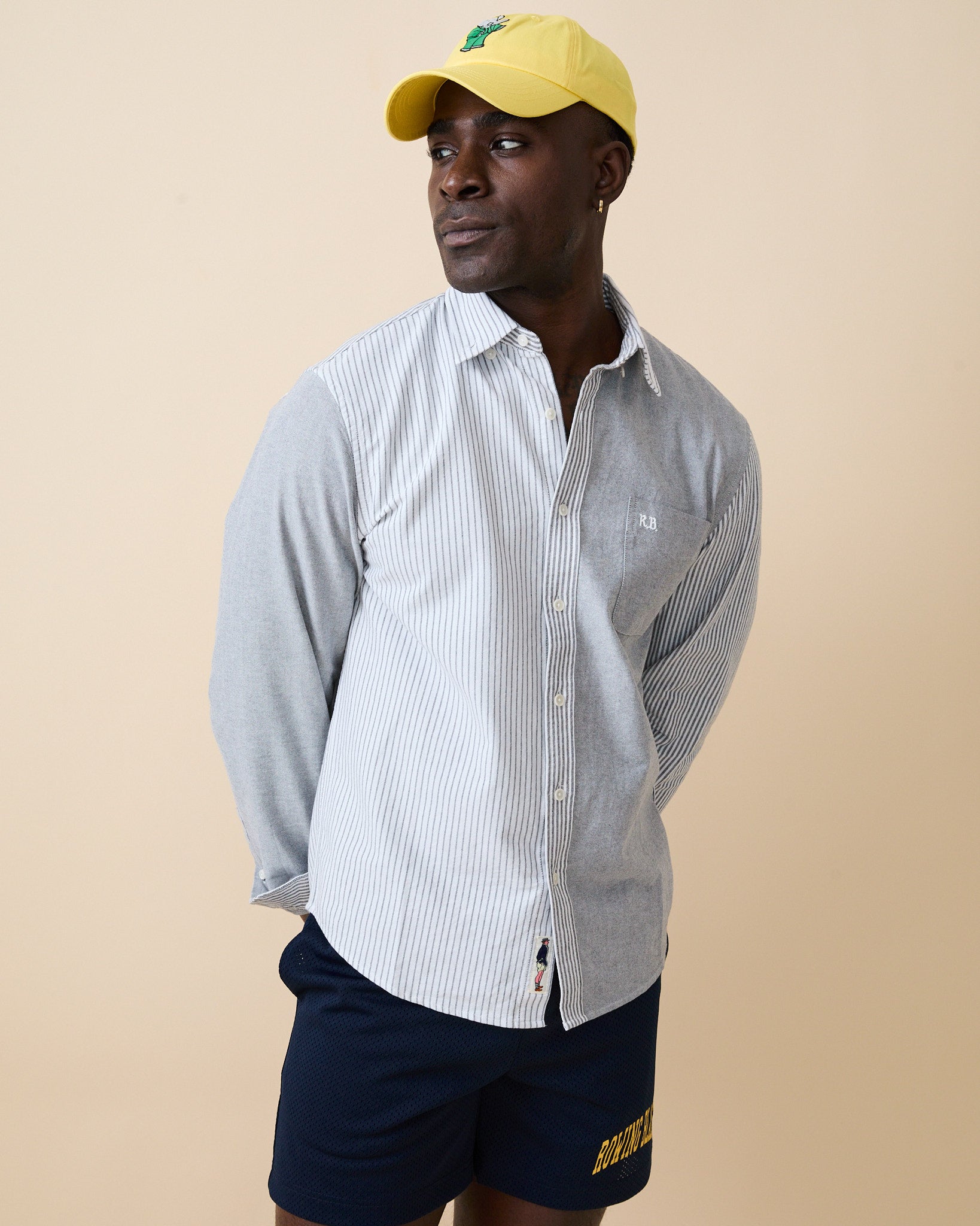 - Men’s mixed-stripe design with contrasting patterns on each side