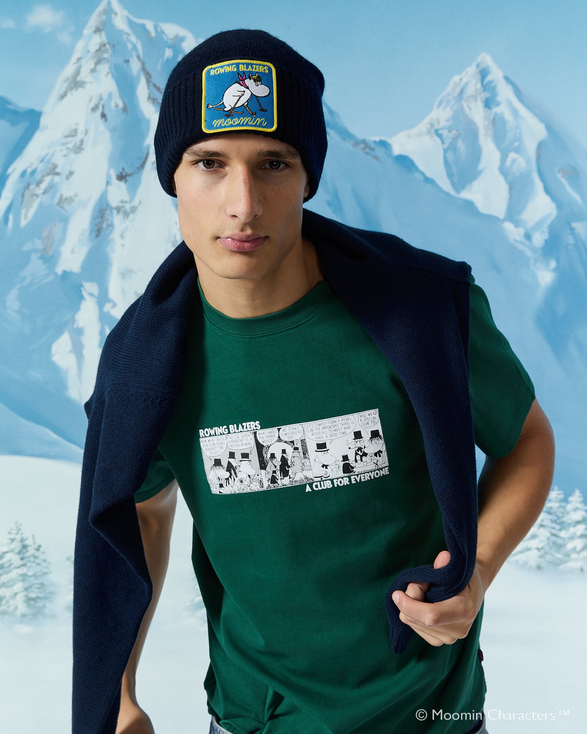 - Wool-and-cashmere blend beanie with an embroidered Moomin ski patch on the hem