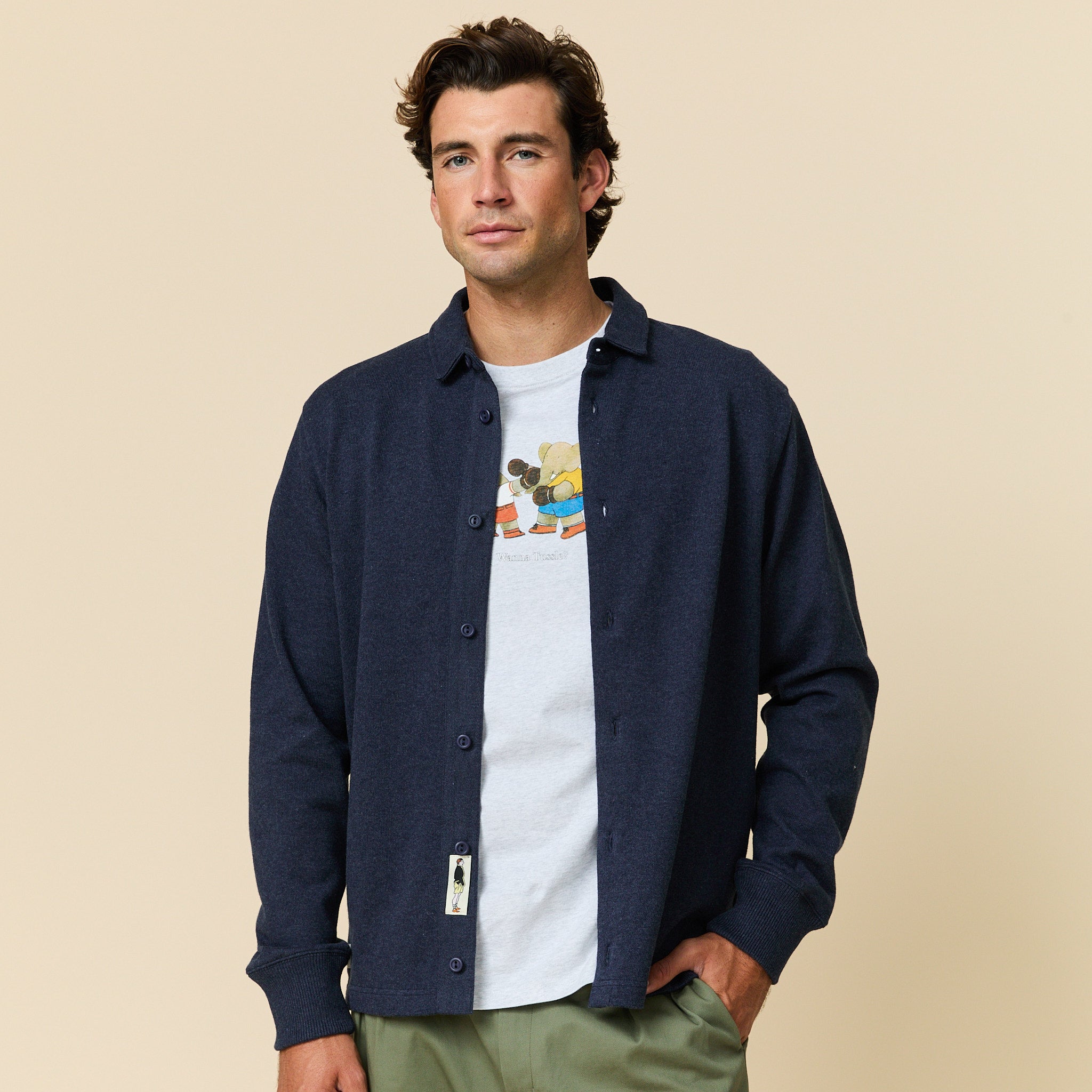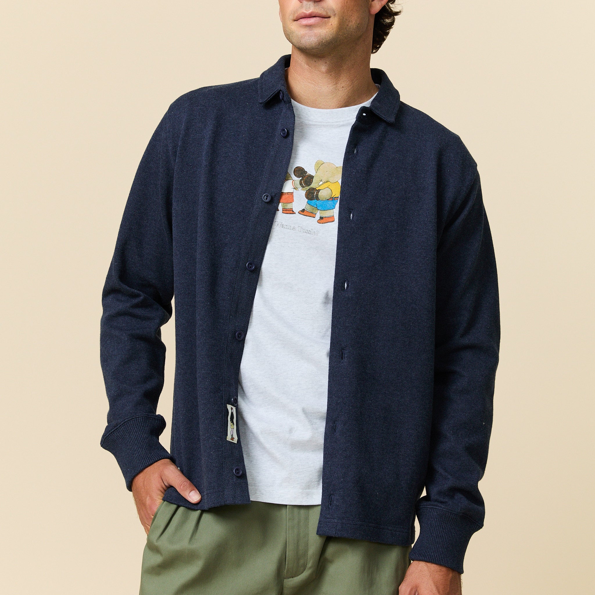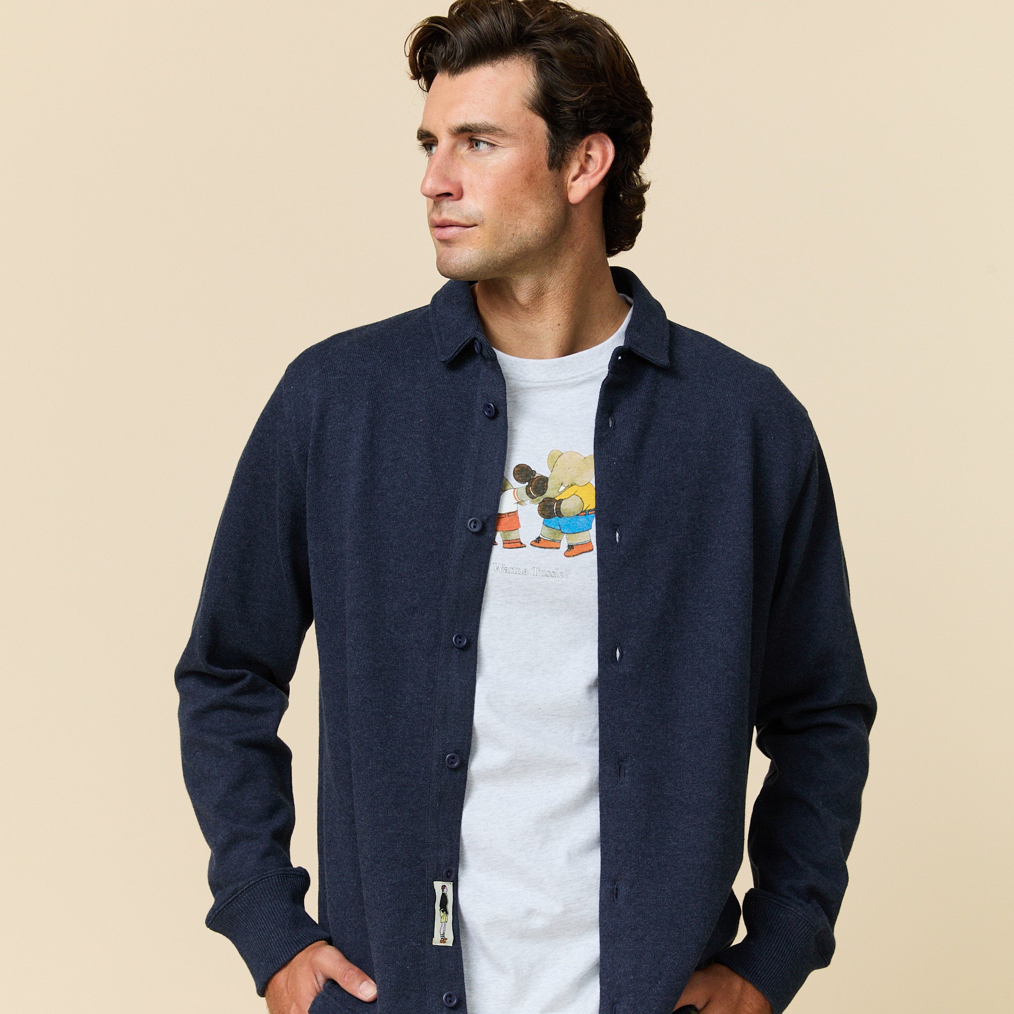 - Men’s heavyweight button-up rugby overshirt made from organic cotton