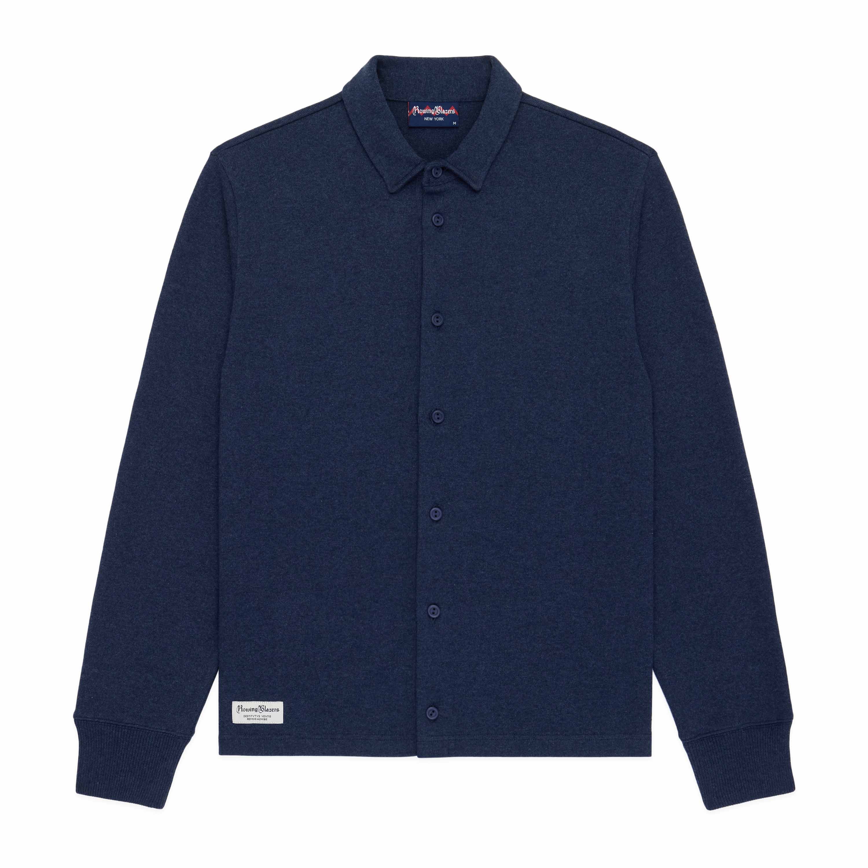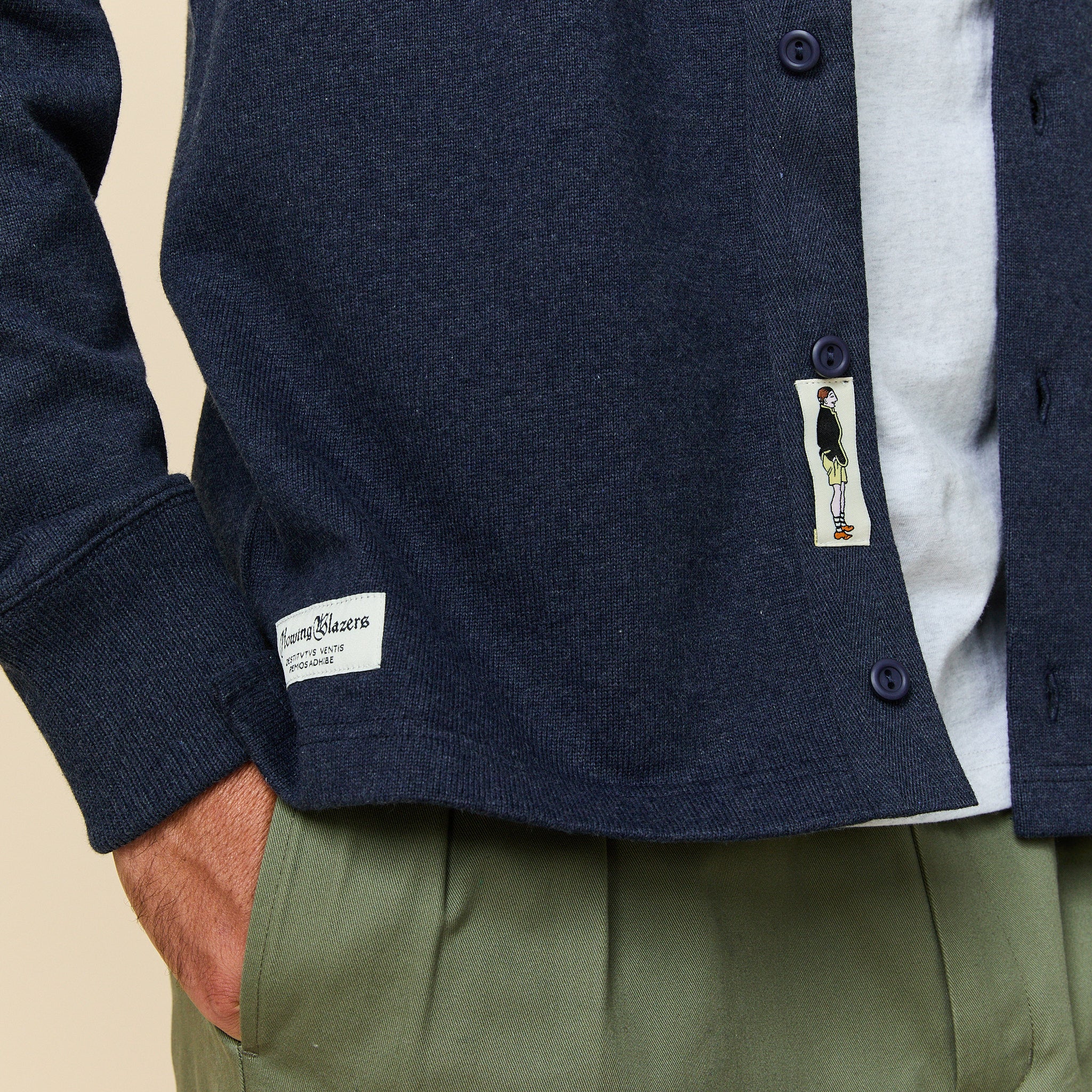 - Ribbed rugby collar. 6-button placket. Single-button cuffs. Split hems. Rowing Blazers tag at right hip