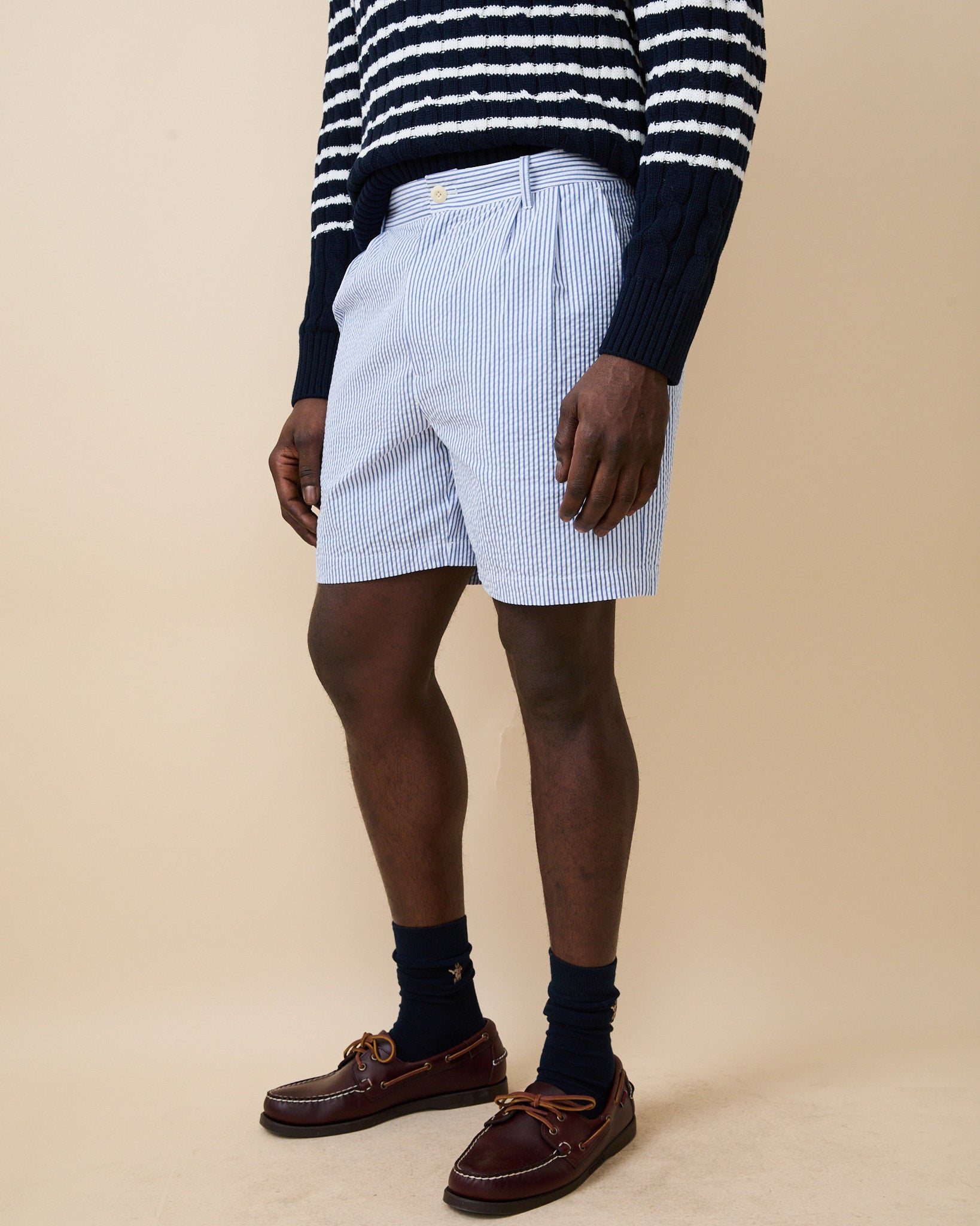 - Men’s light blue seersucker shorts