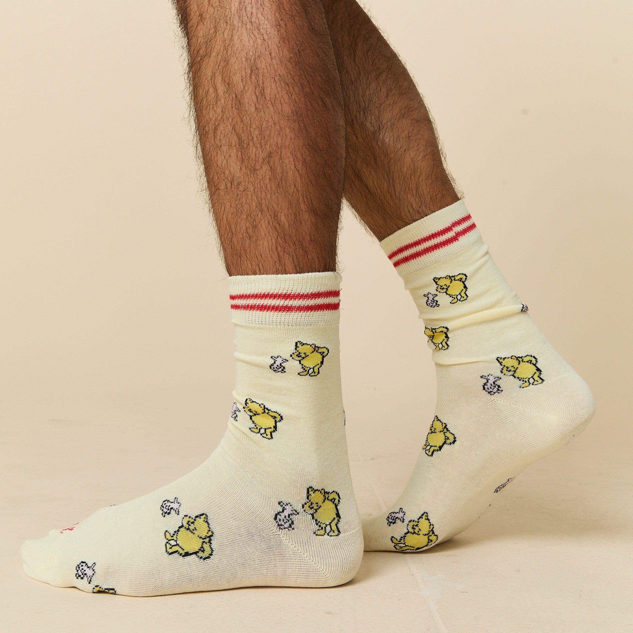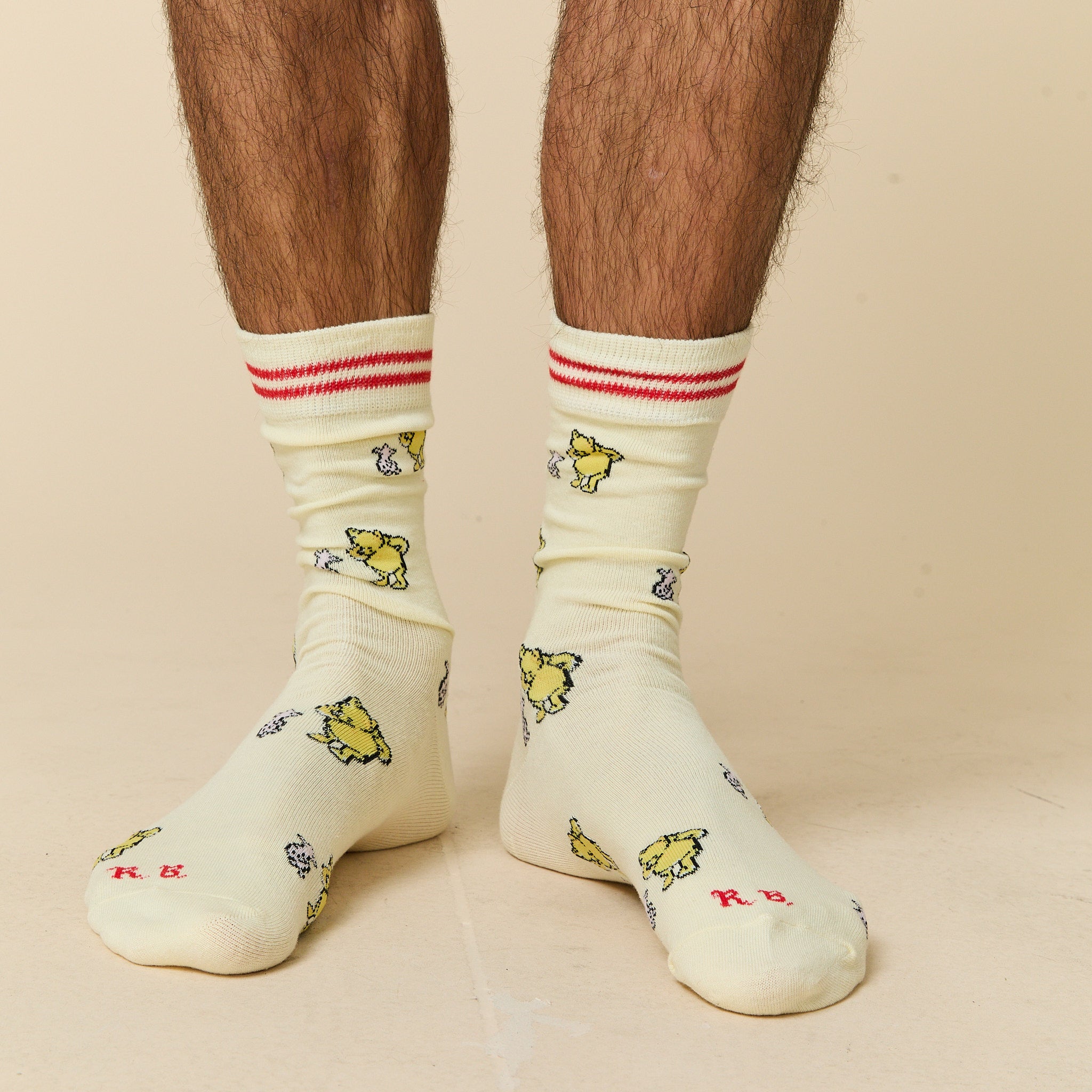 - Navy crew socks with an embroidered Winnie-the-Pooh motif