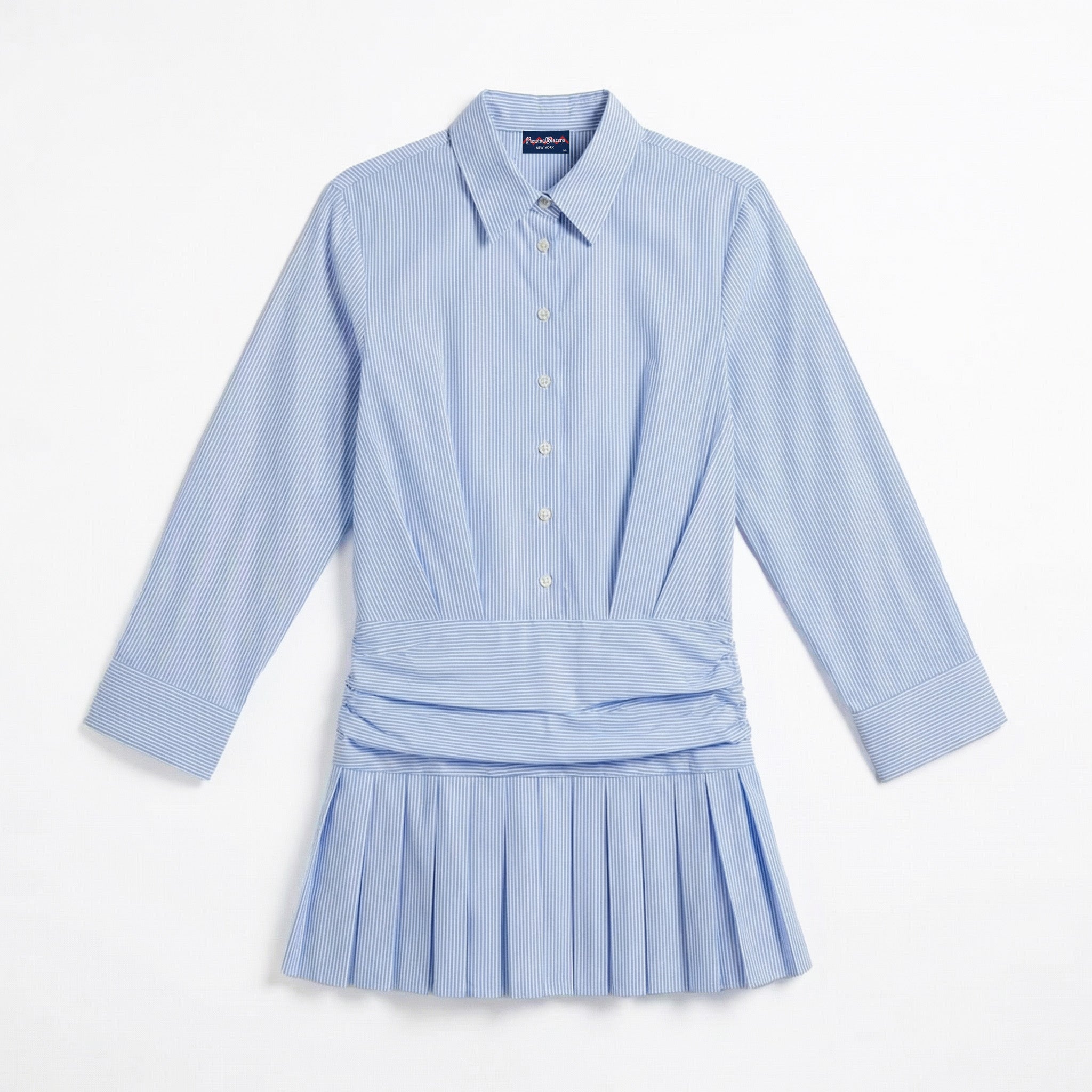 Women's Button Down Pleated Shirt Dress Blue