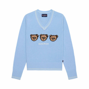- Women’s wool-and-cashmere blend V-neck sweater with an intarsia-knit bears motif