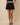 - Mid-rise waist with a mini length