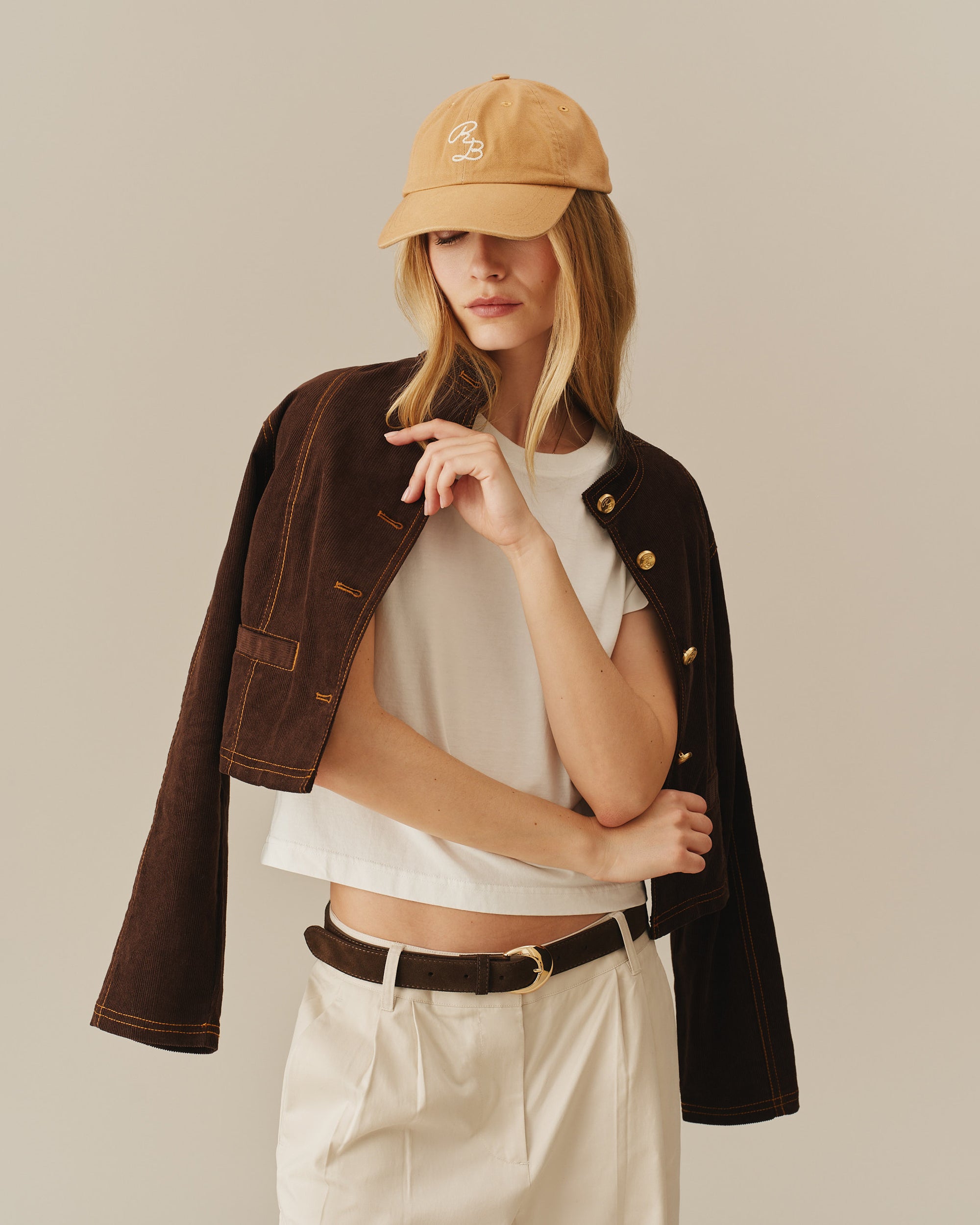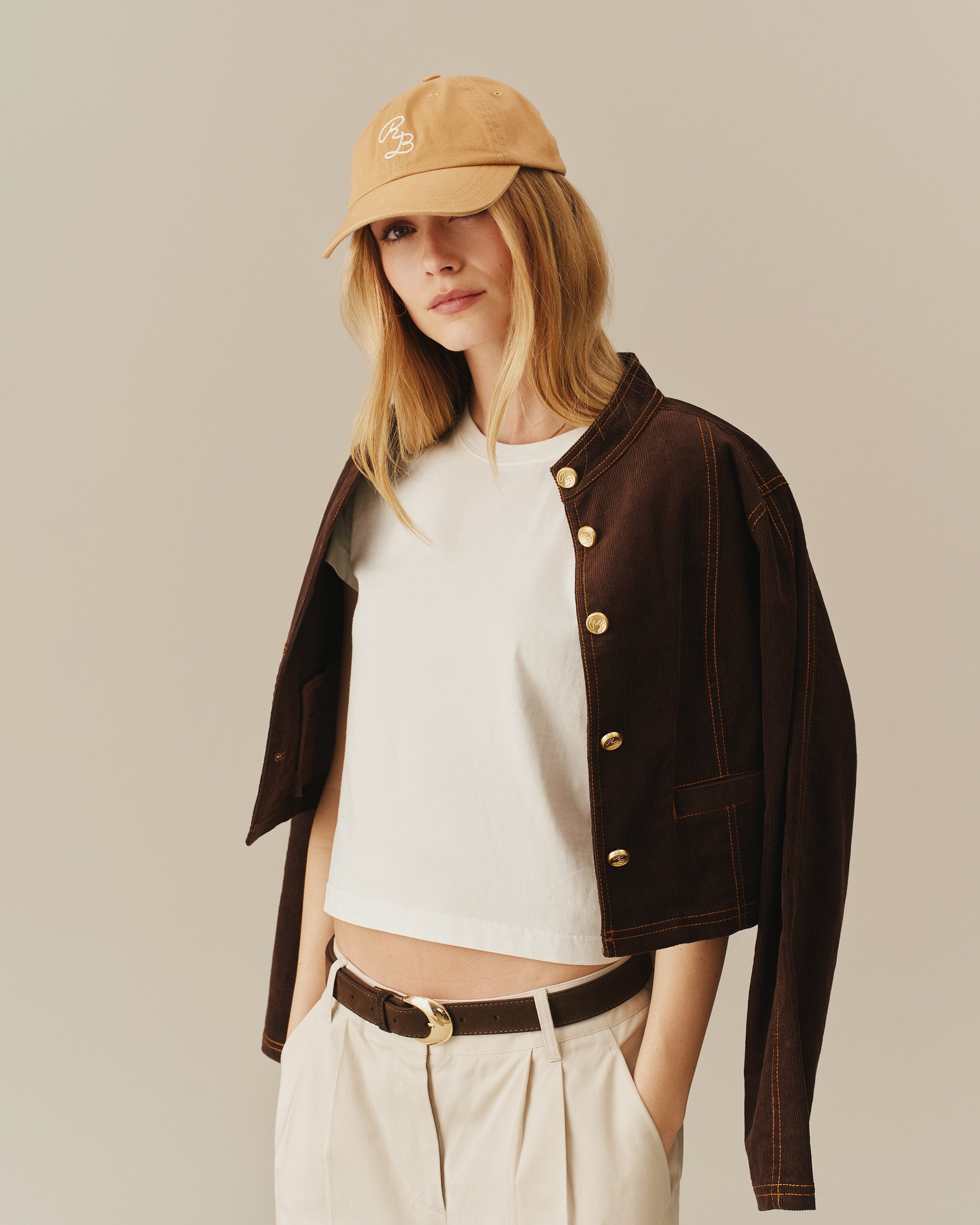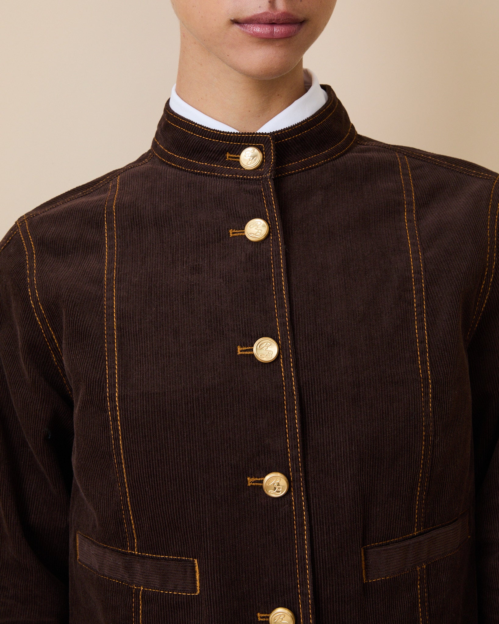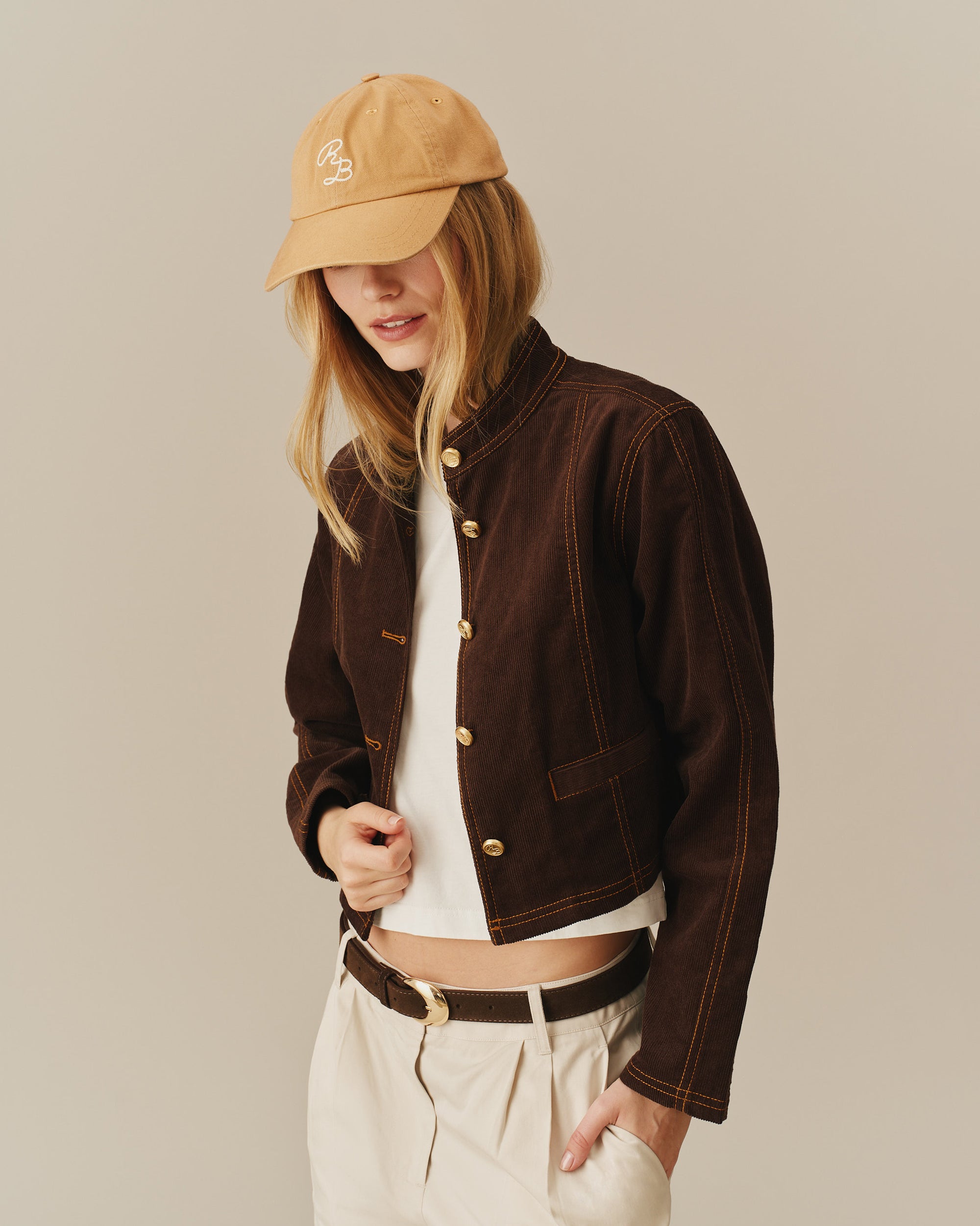 - Women’s corduroy jacket in a boxy, crewneck silhouette