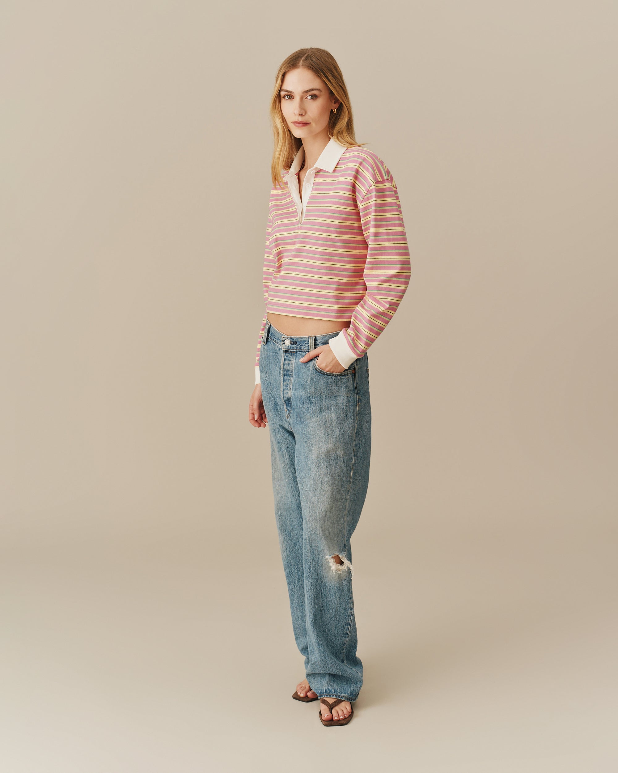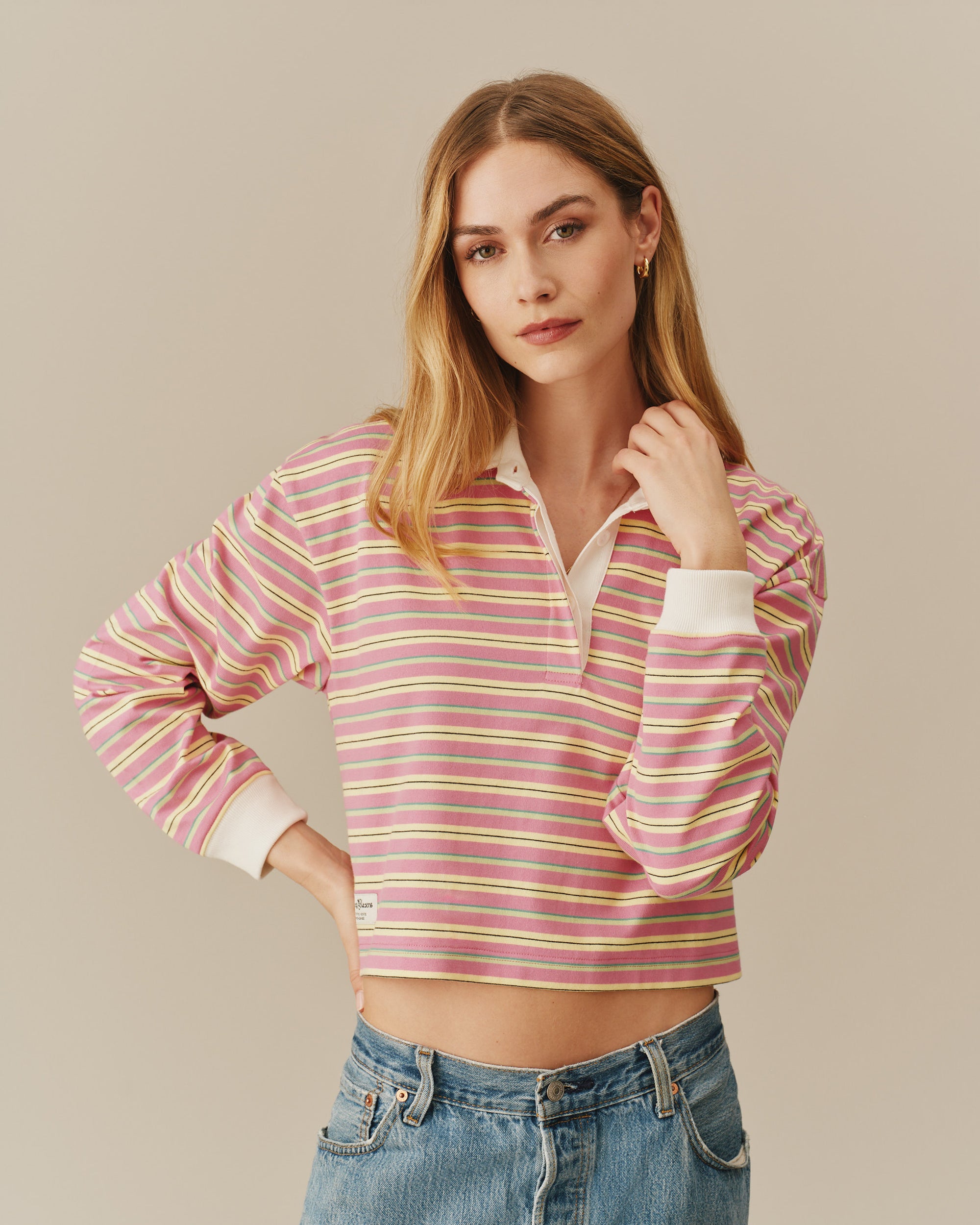- Women’s lightweight rugby shirt with a cropped silhouette