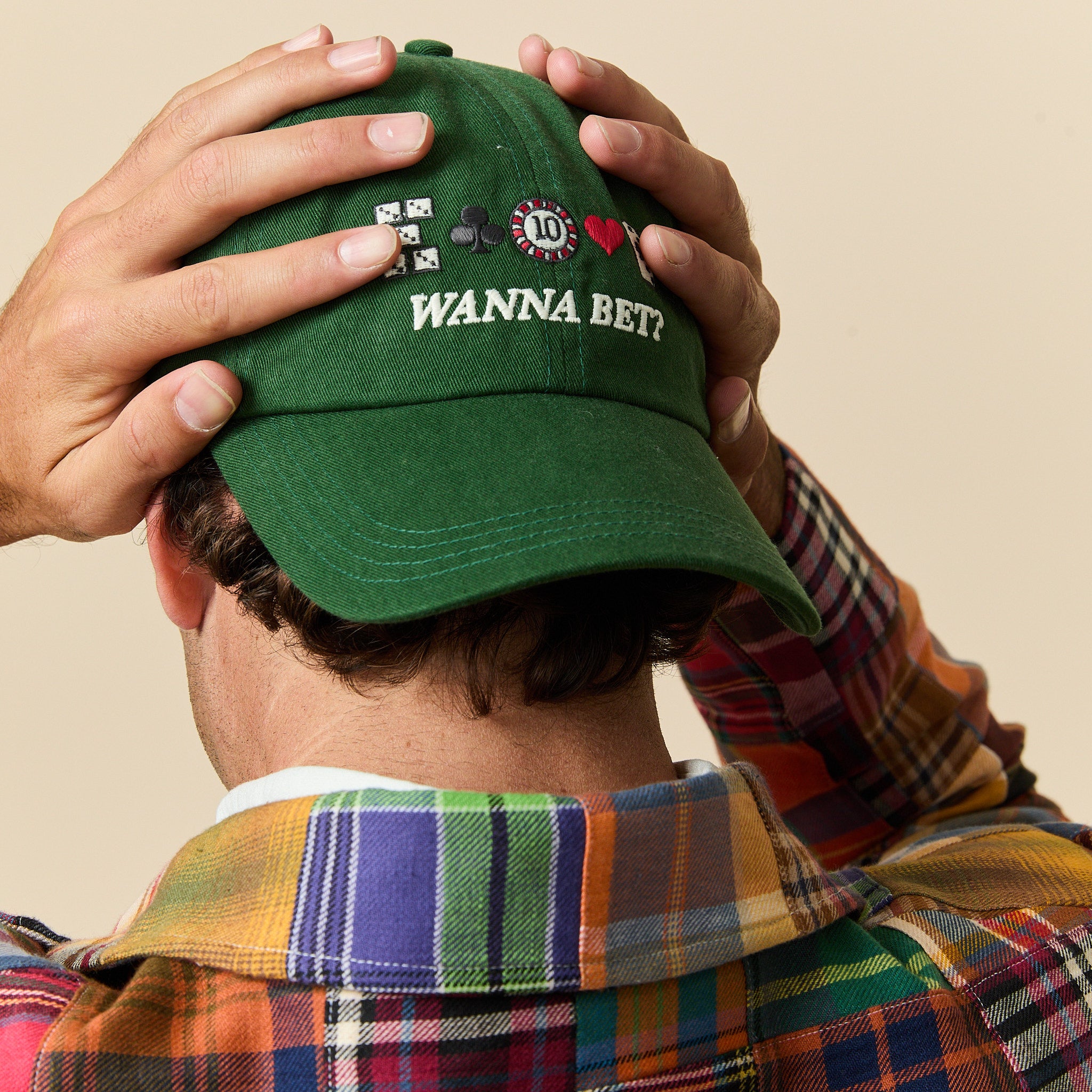 • Wanna bet? Low-profile cotton twill dad hat with an embroidered gambling motif on the crown