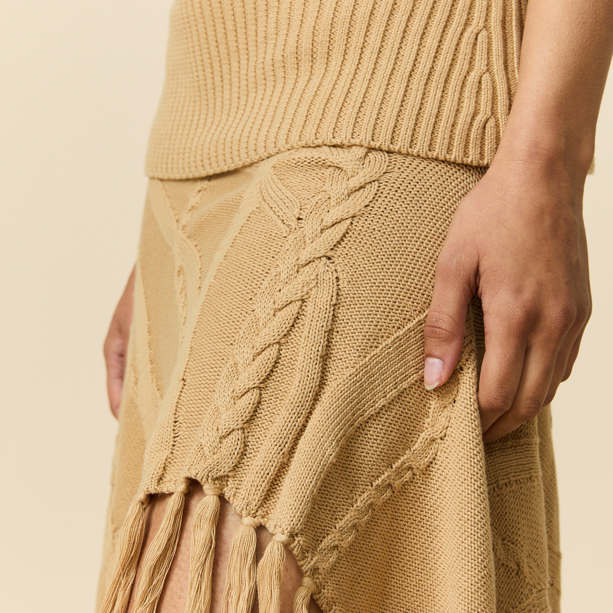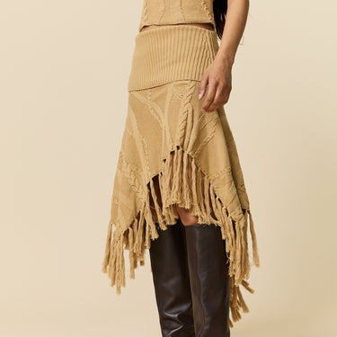 Women's Cotton Cable Fringe Skirt Camel