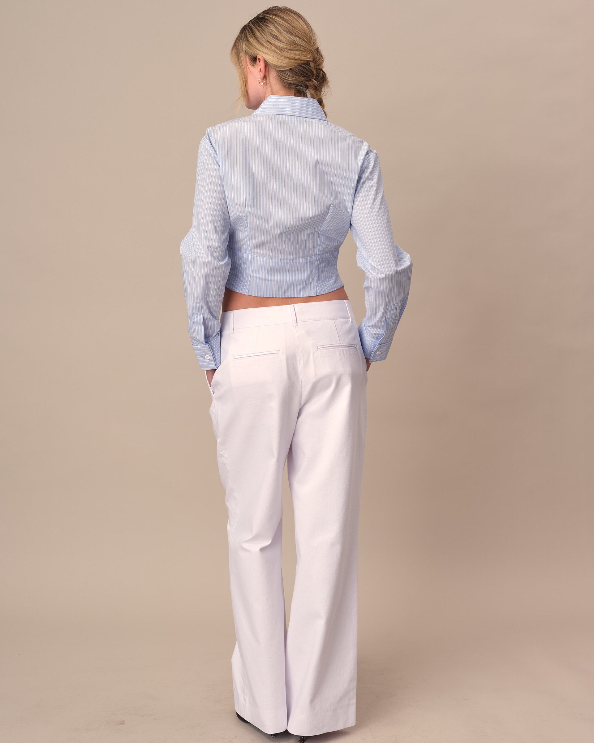 - Wide-leg silhouette with pleating for movement
