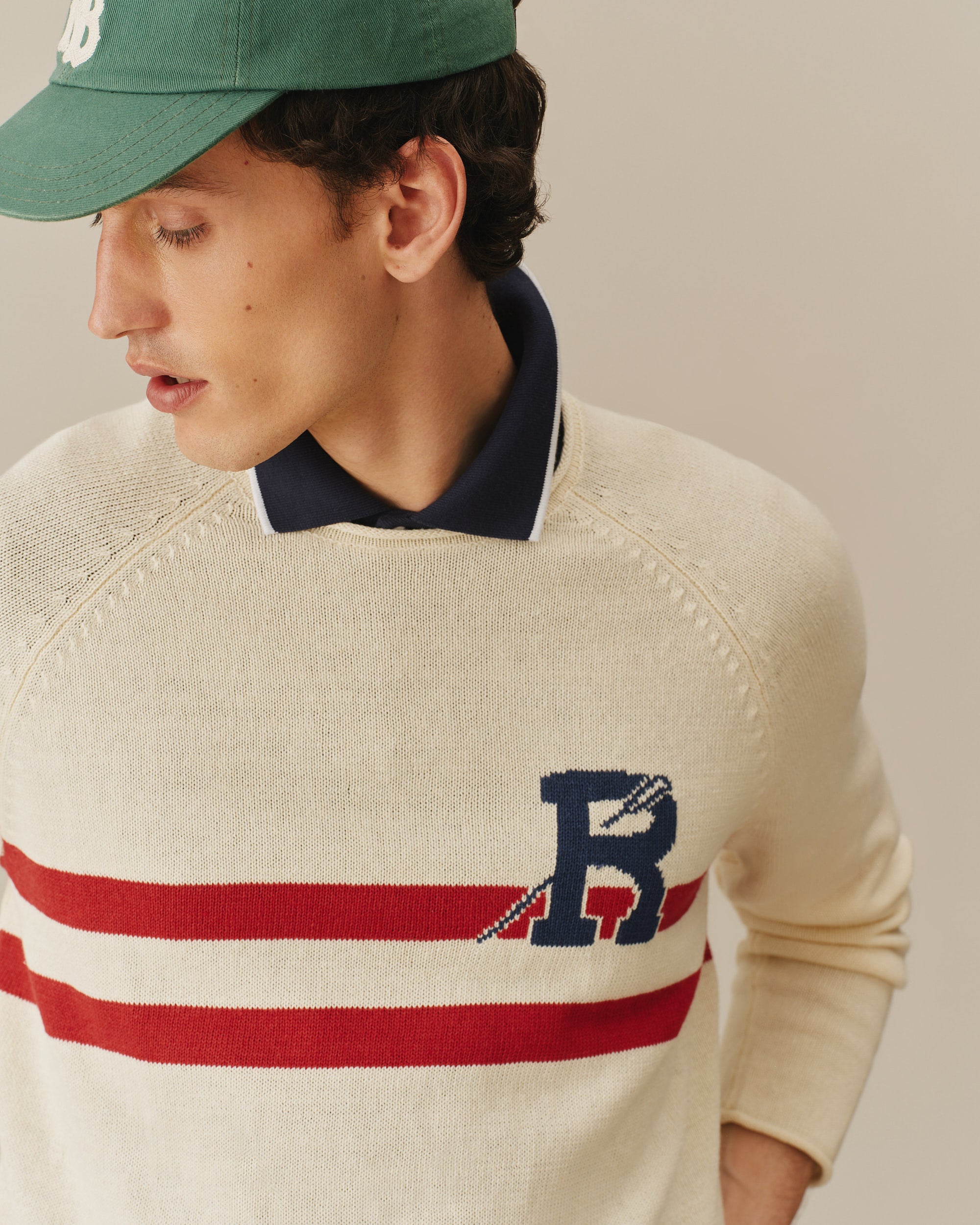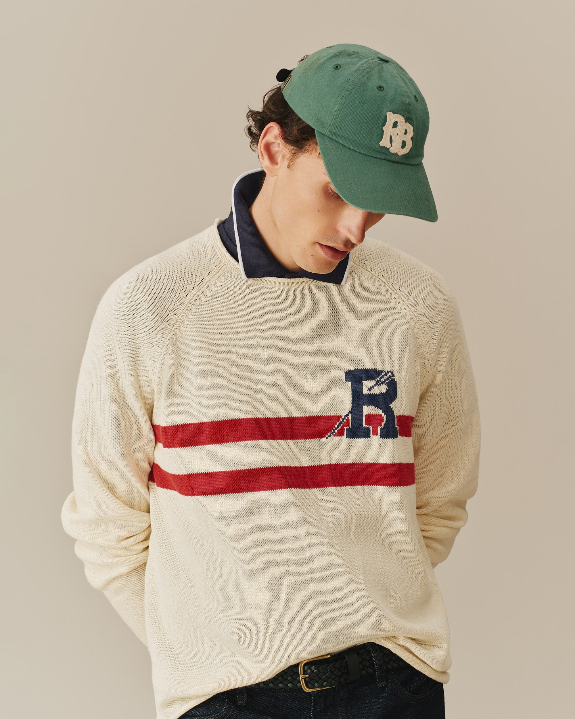- Signature “R” on the chest with an oar detail threaded through
