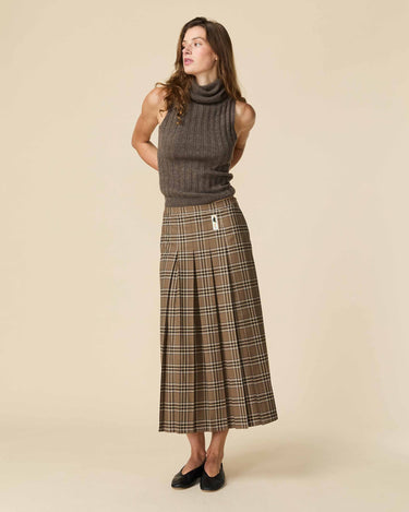 Women's Plaid Pleated Midi Skirt Brown Plaid