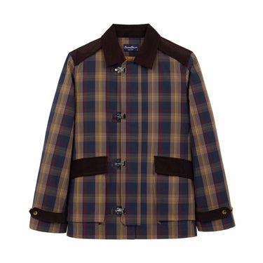 - Men’s classic oilcloth coat in plaid Corduroy collar, shoulders, and trim.