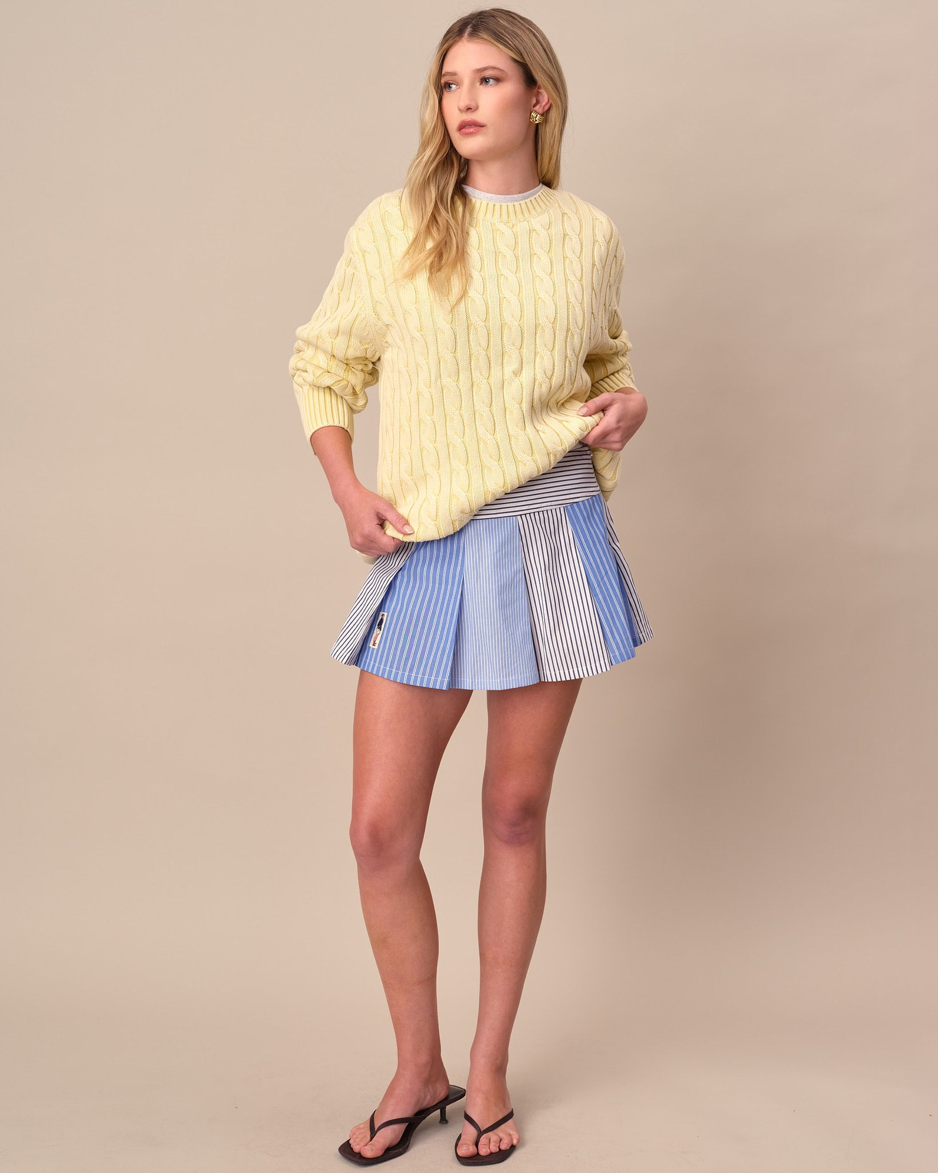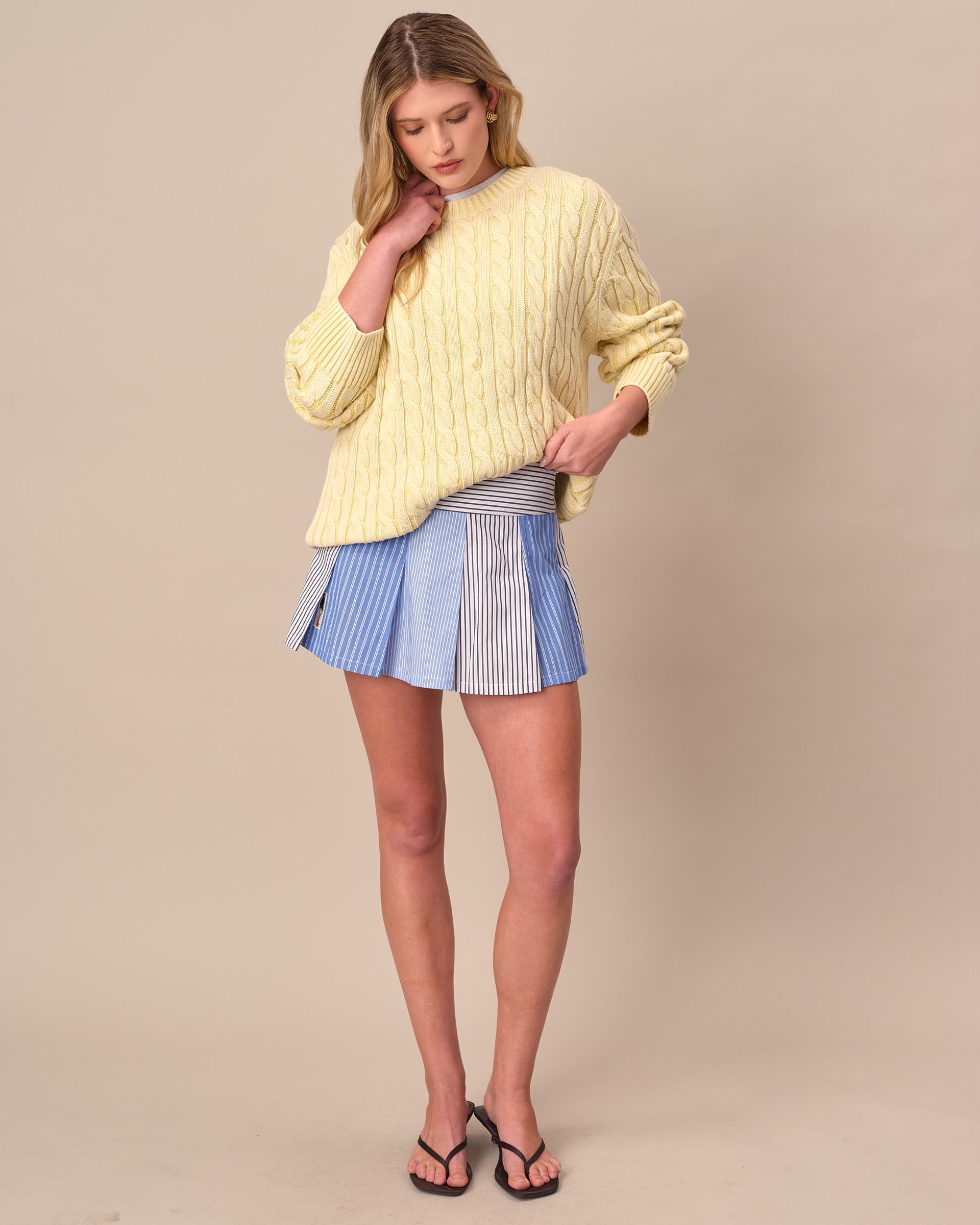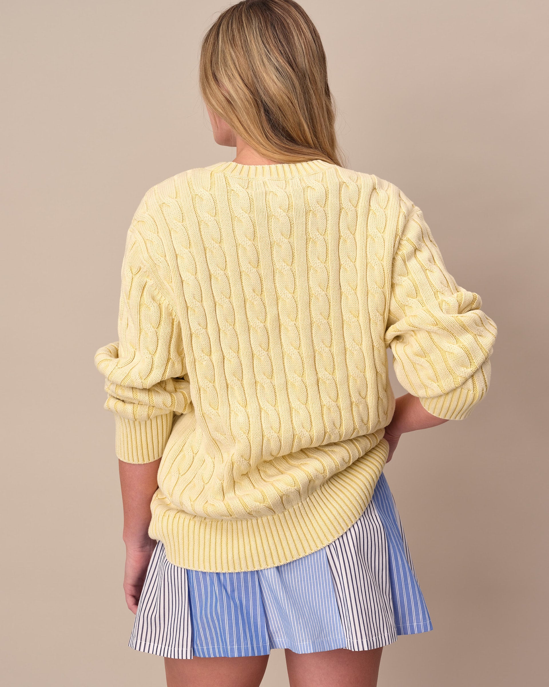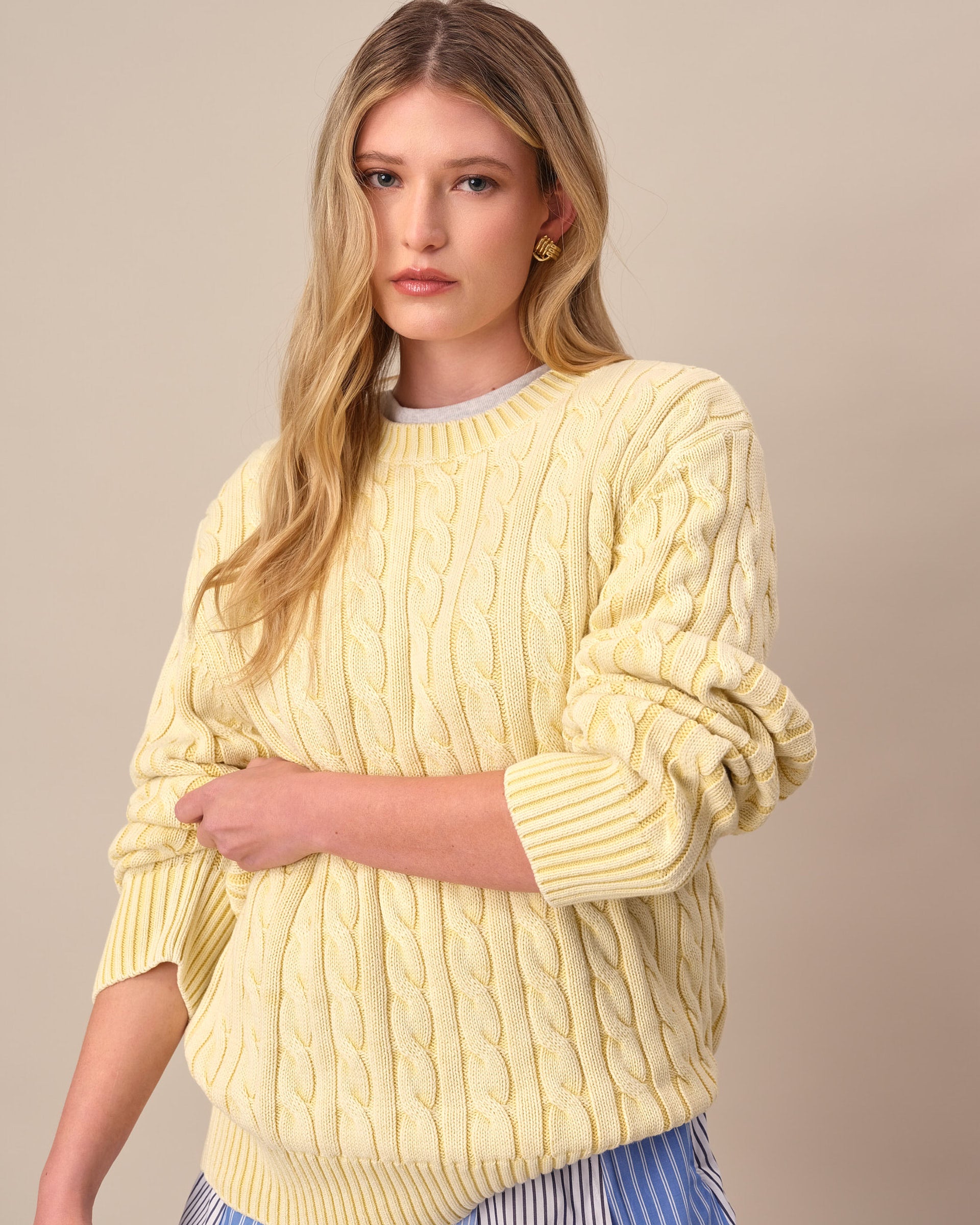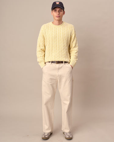 • Light yellow acid-washed cotton cable knit