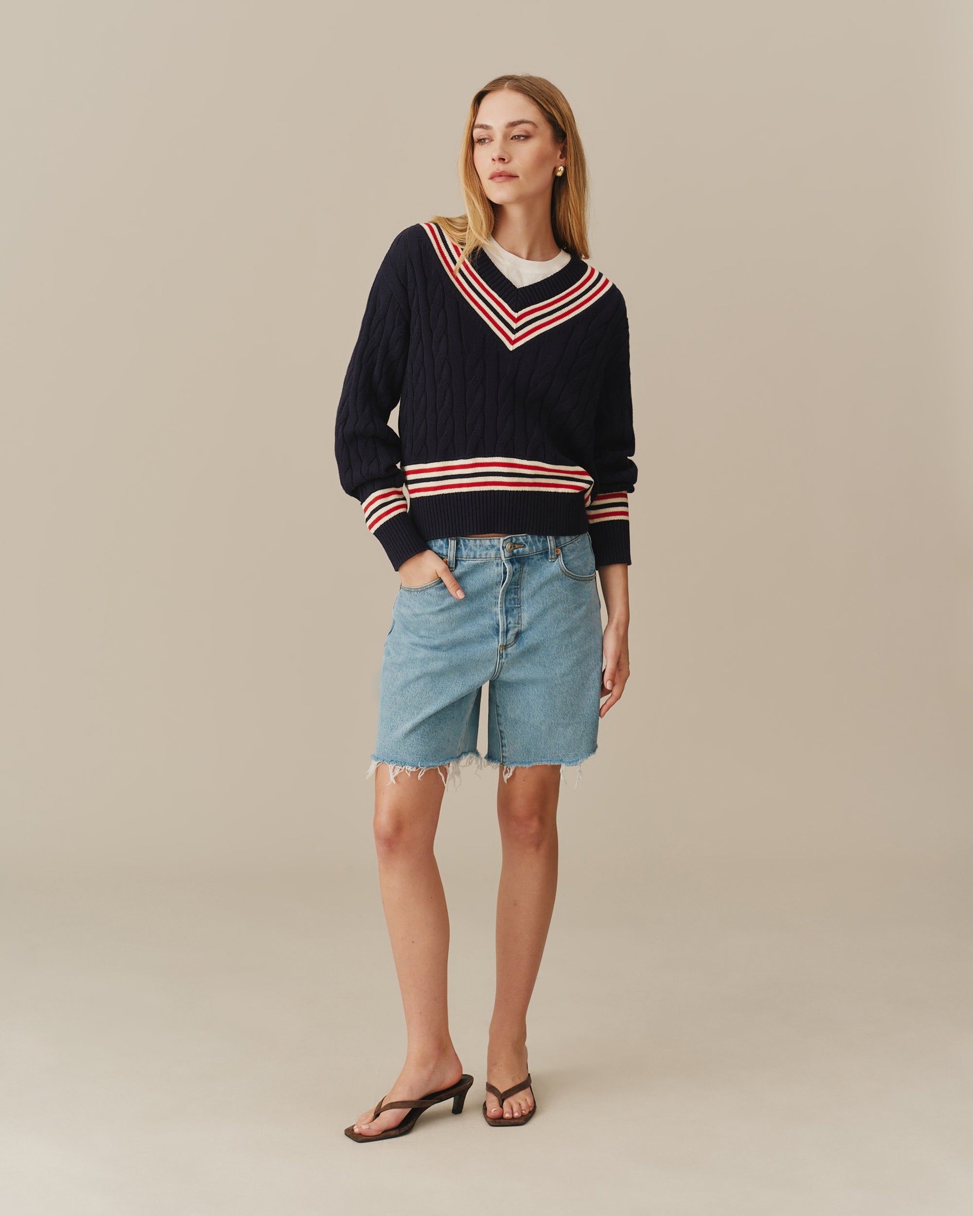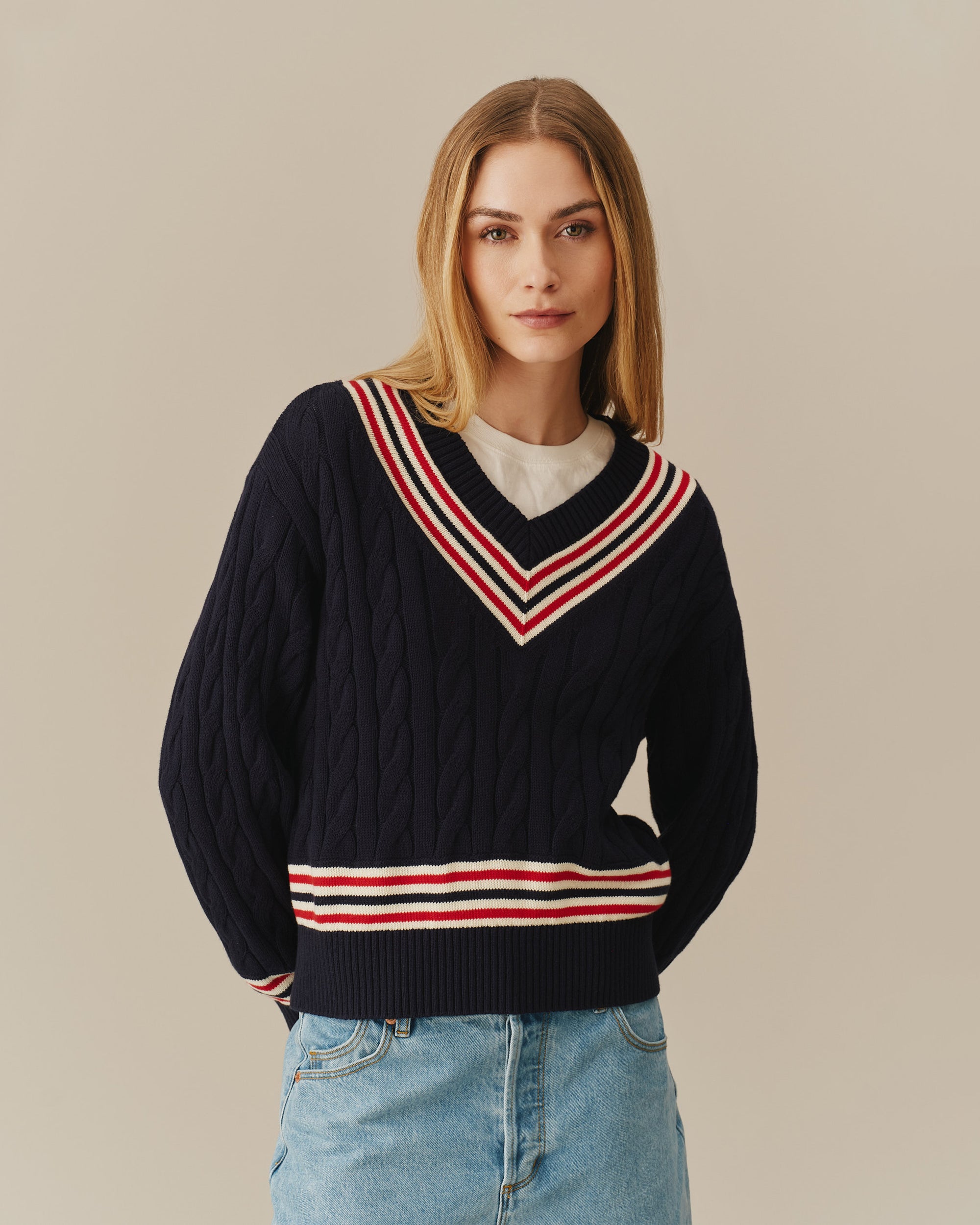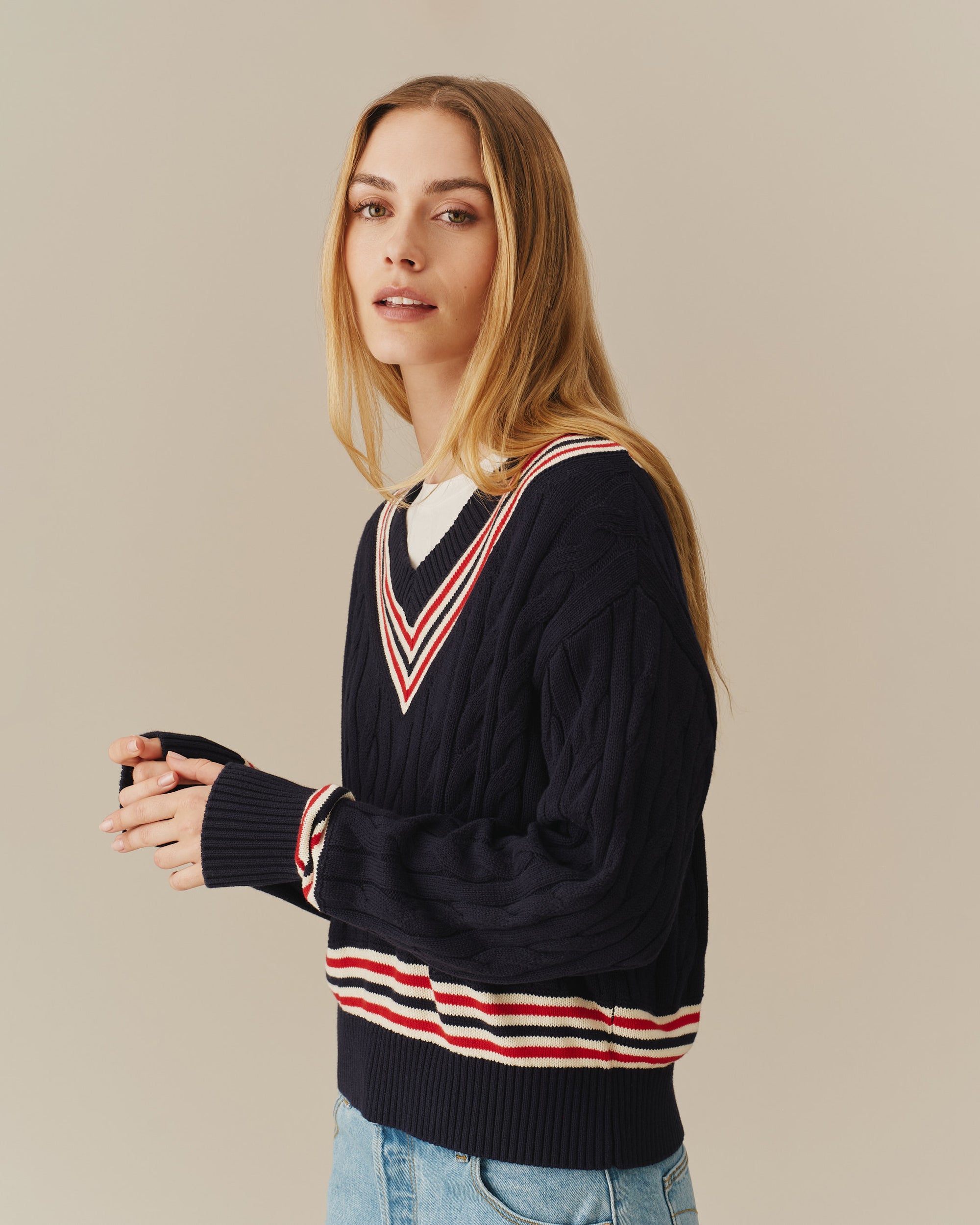 Women's Cotton Cricket Sweater Navy