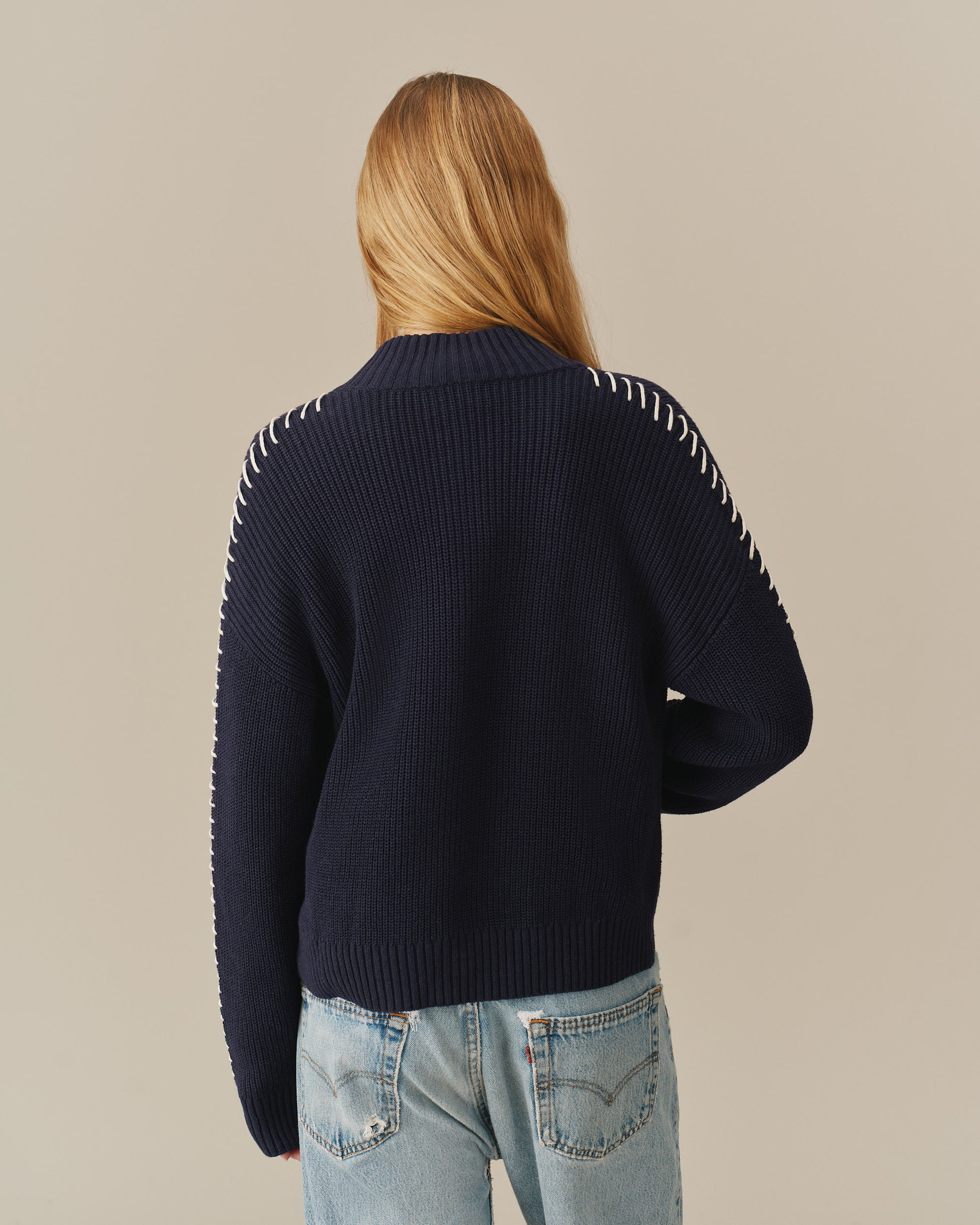 - Women’s mid-crop zip-through sweater with high neck