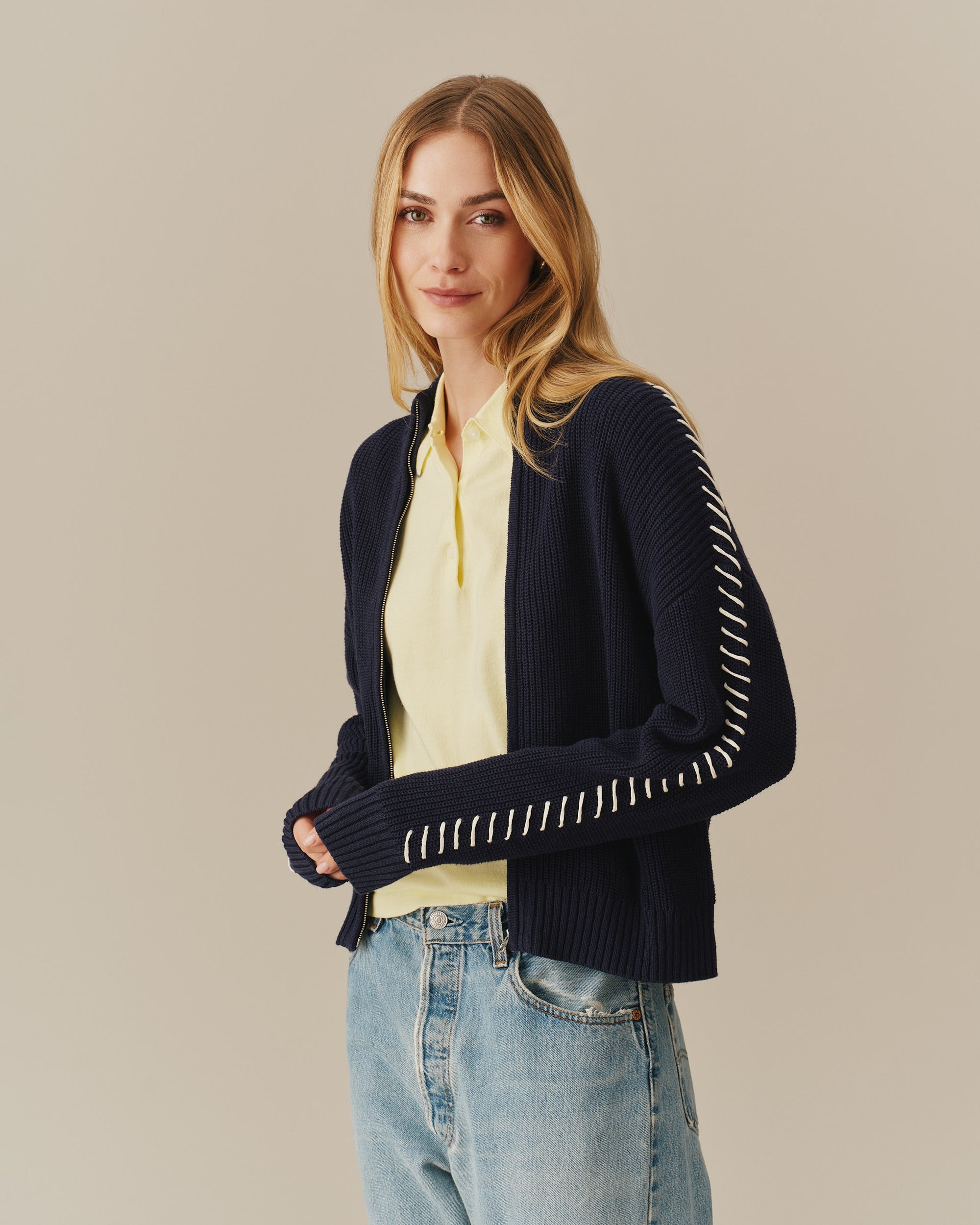 Women's Cropped Zip Through Sweater Navy