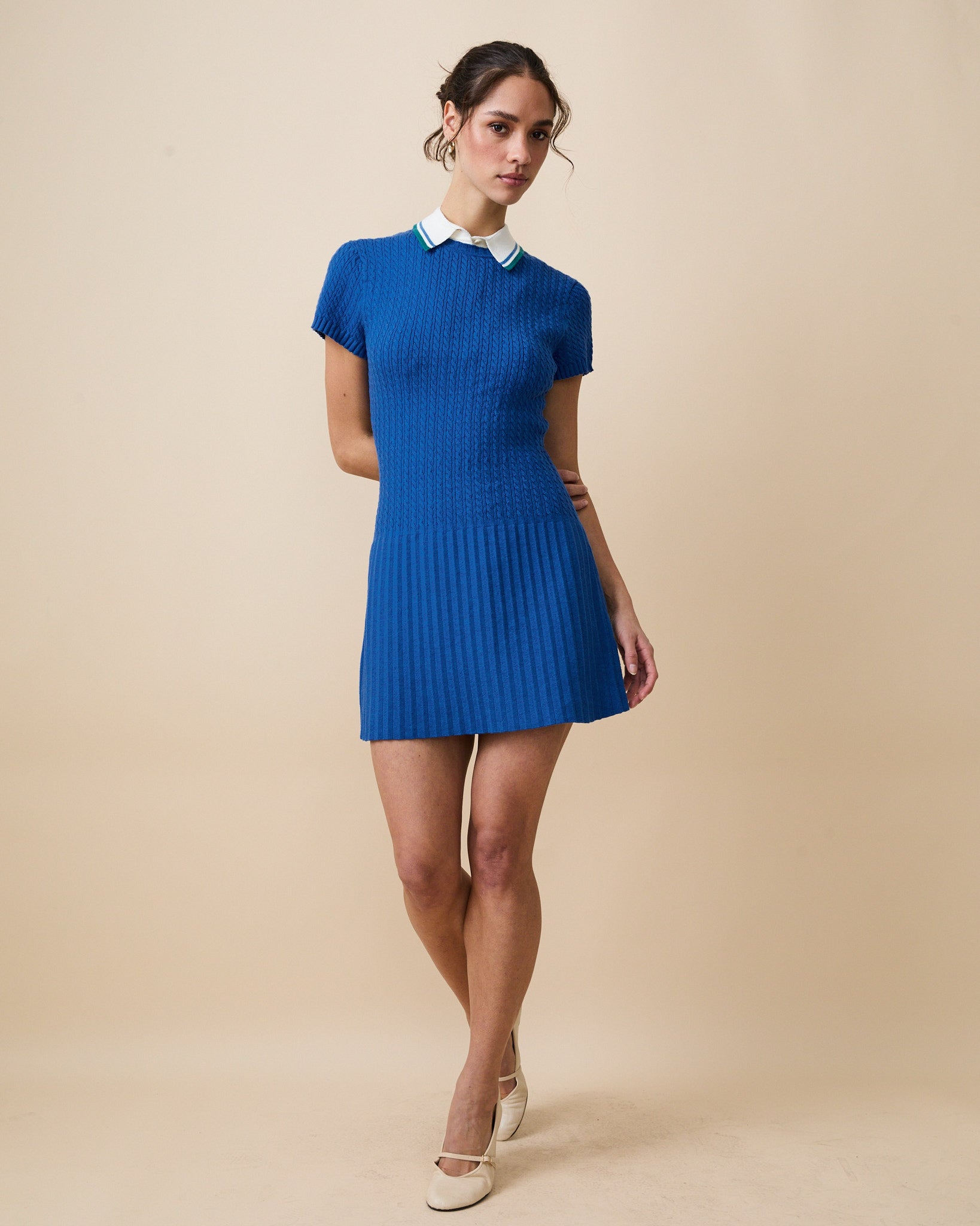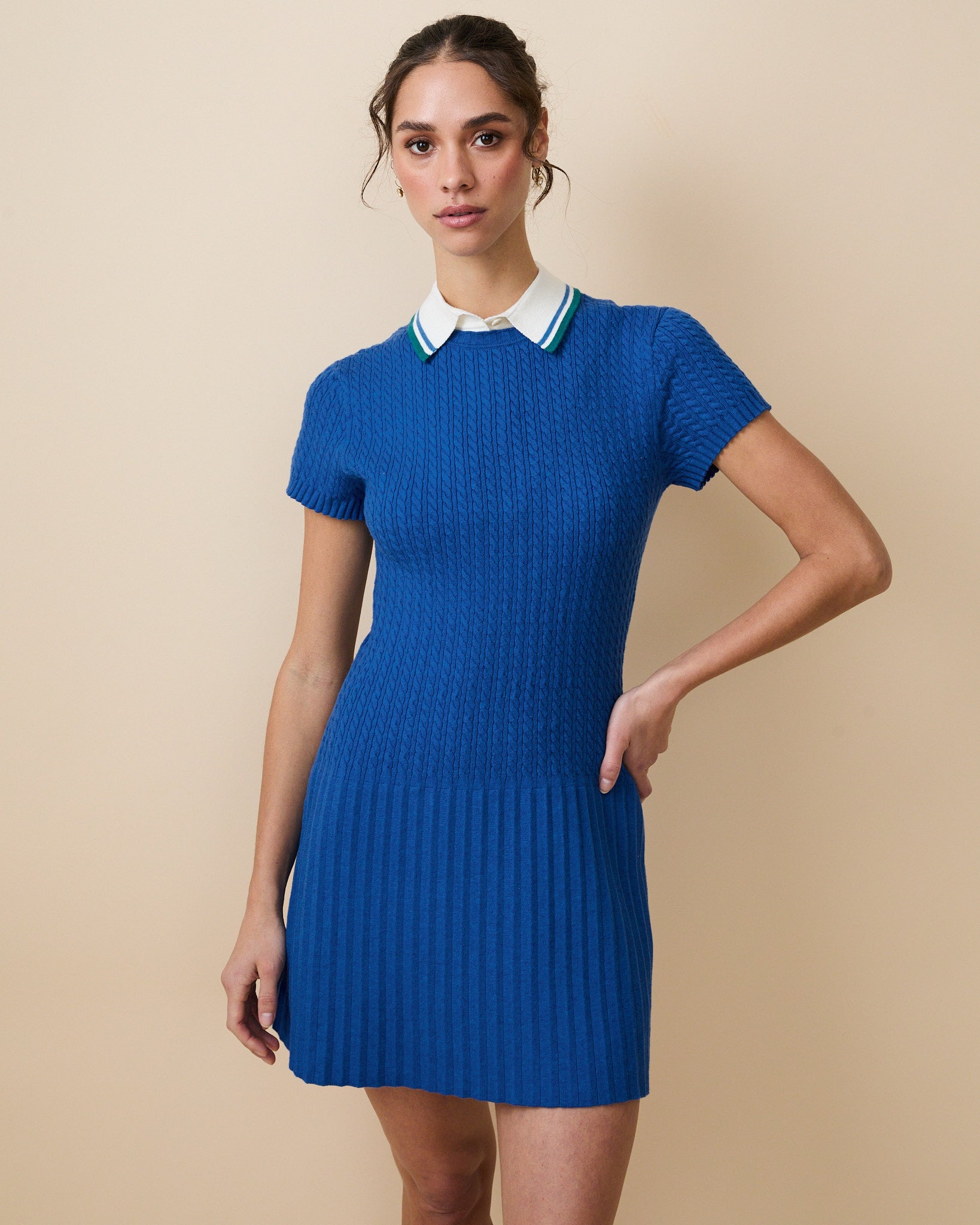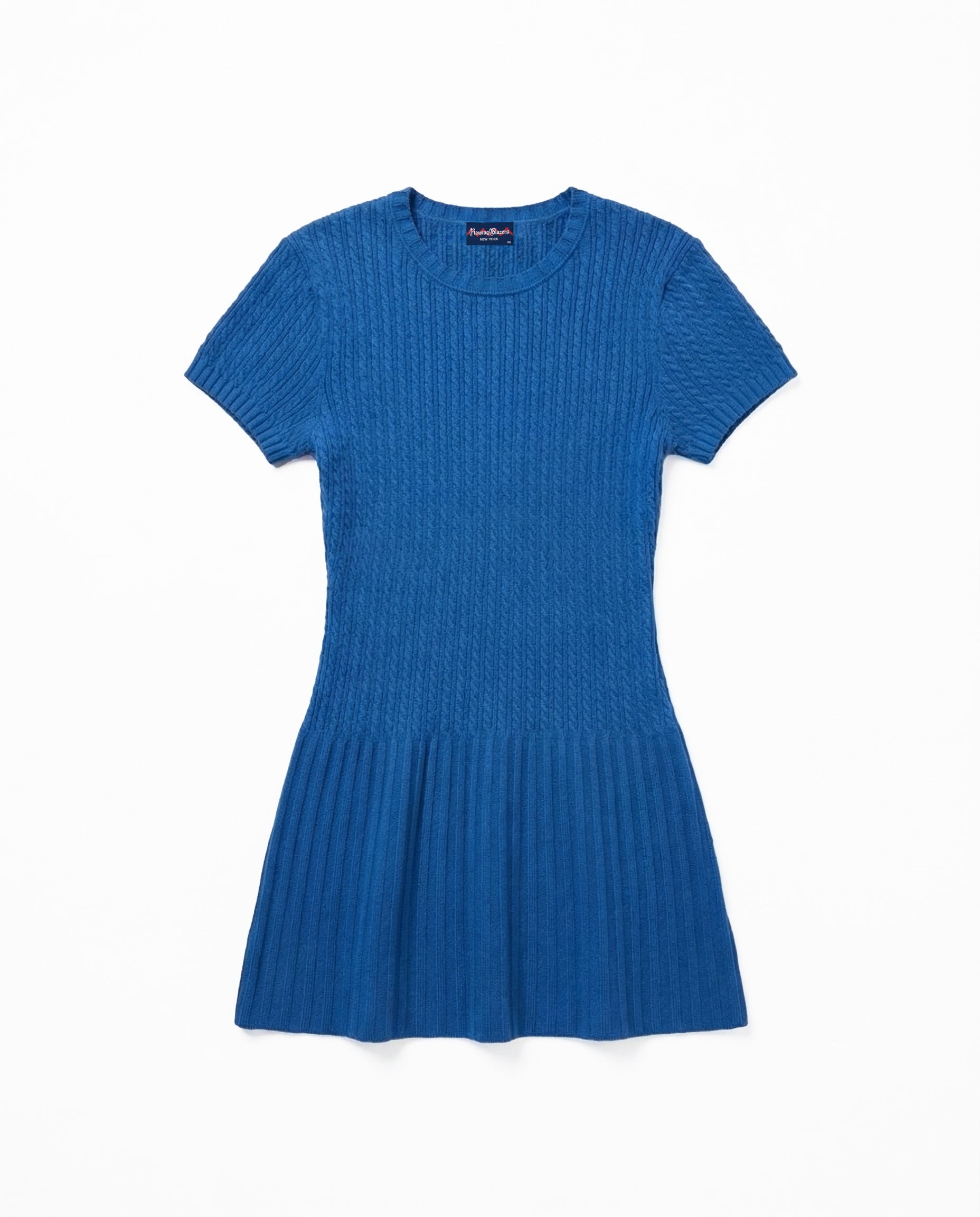Women's Cotton Cable Knit Pleated Dress Blue