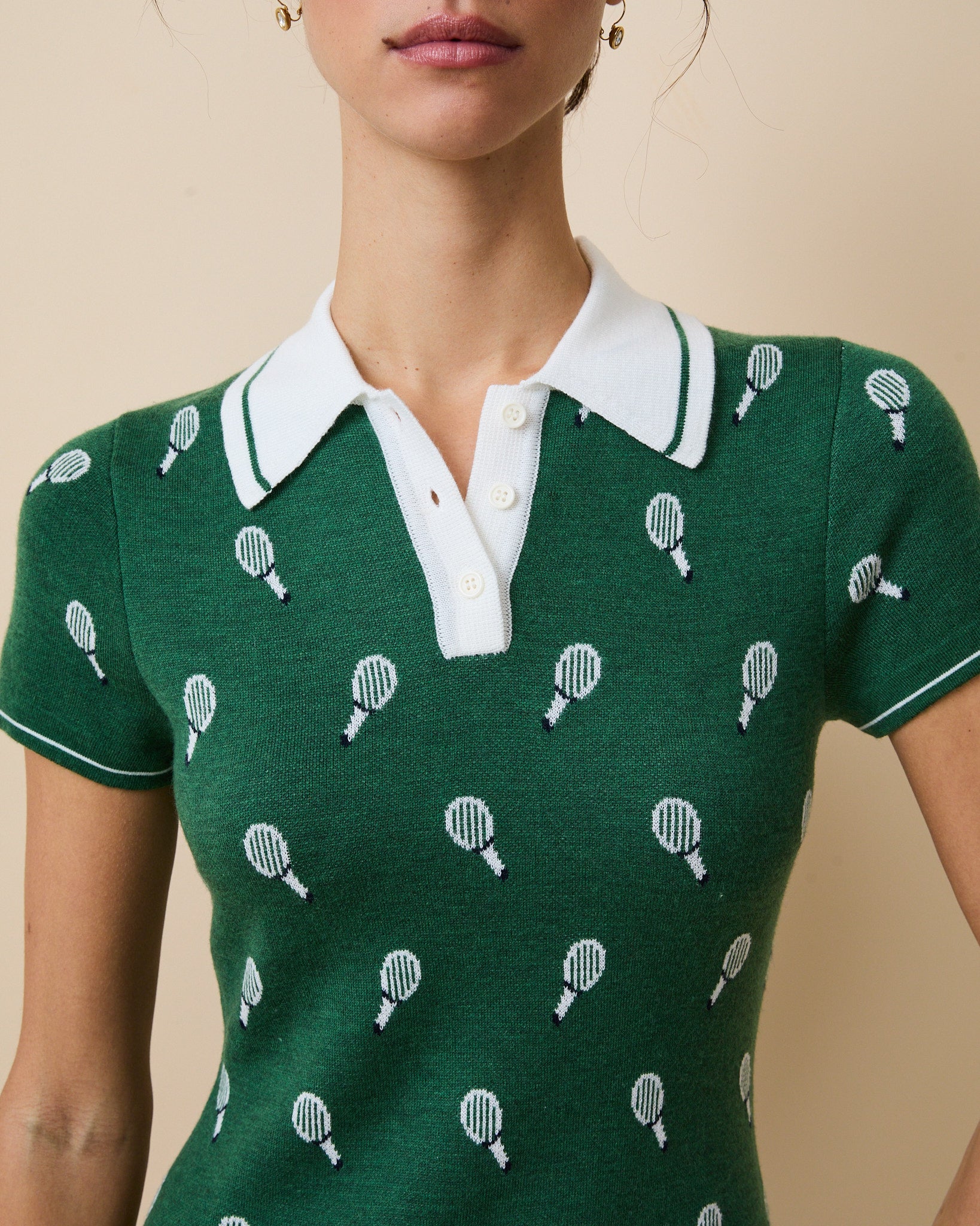 - Featuring an intarsia tennis racquet motif