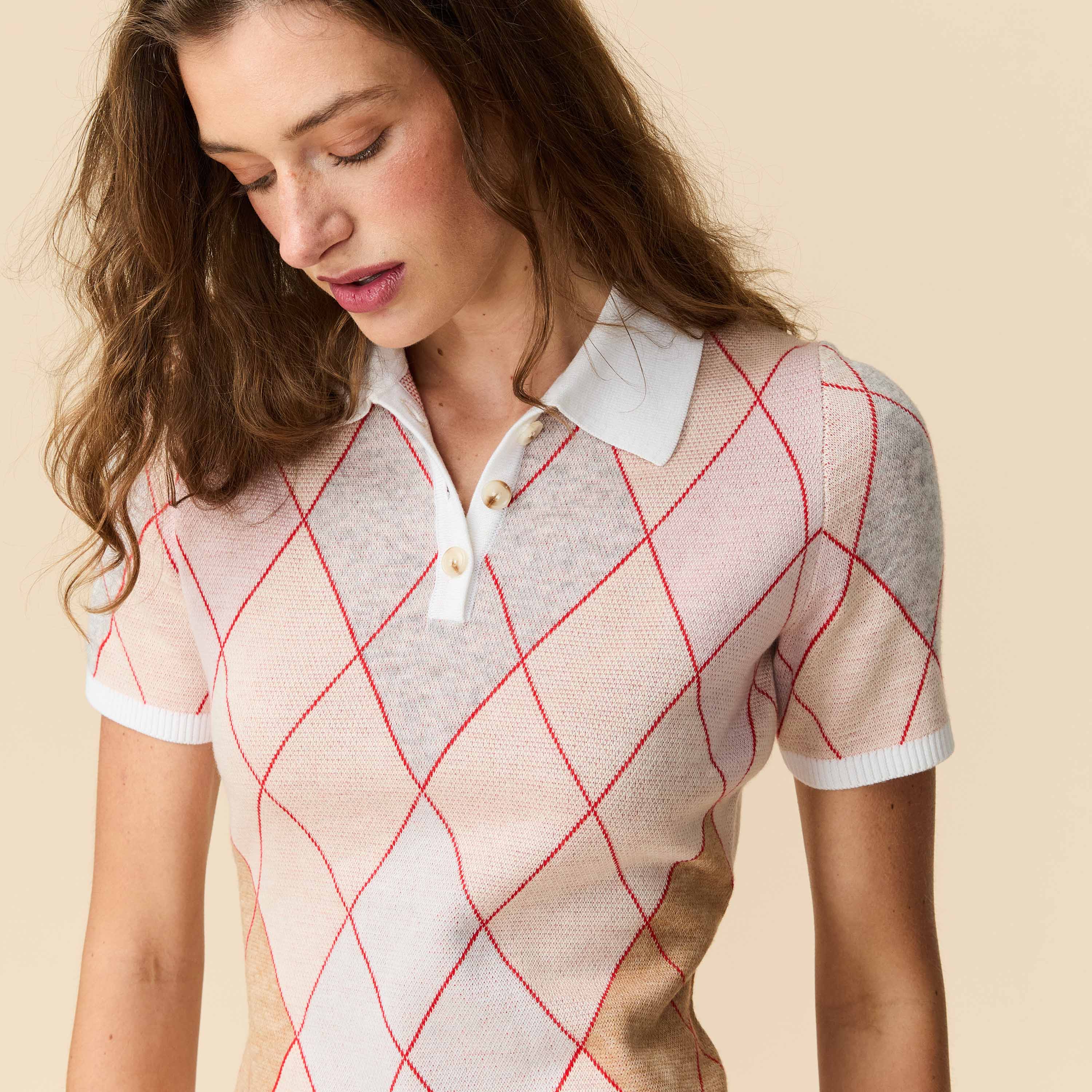• Women’s argyle sweater dress made from a soft merino wool blend
