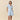 - Women’s short sleeve blue-and-white gingham cotton linen top featuring a baguette motif at the right hip