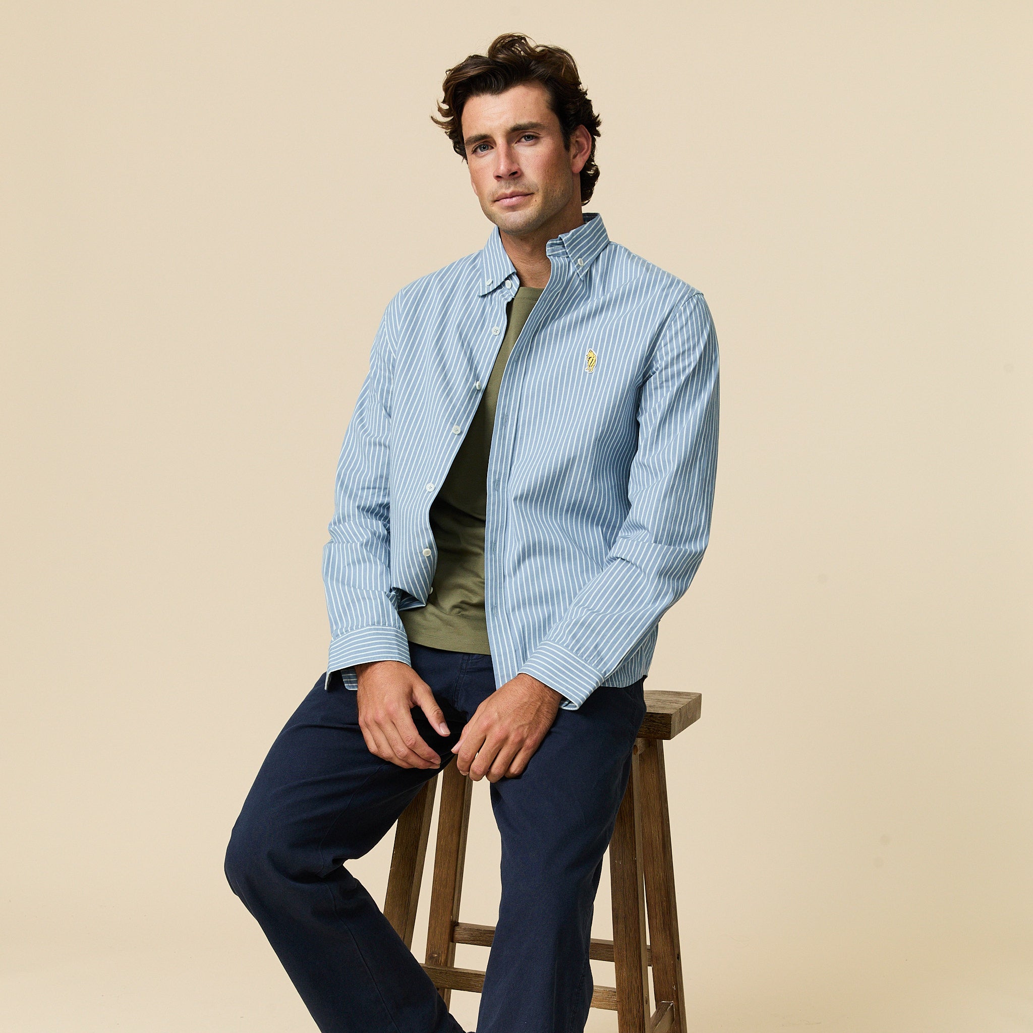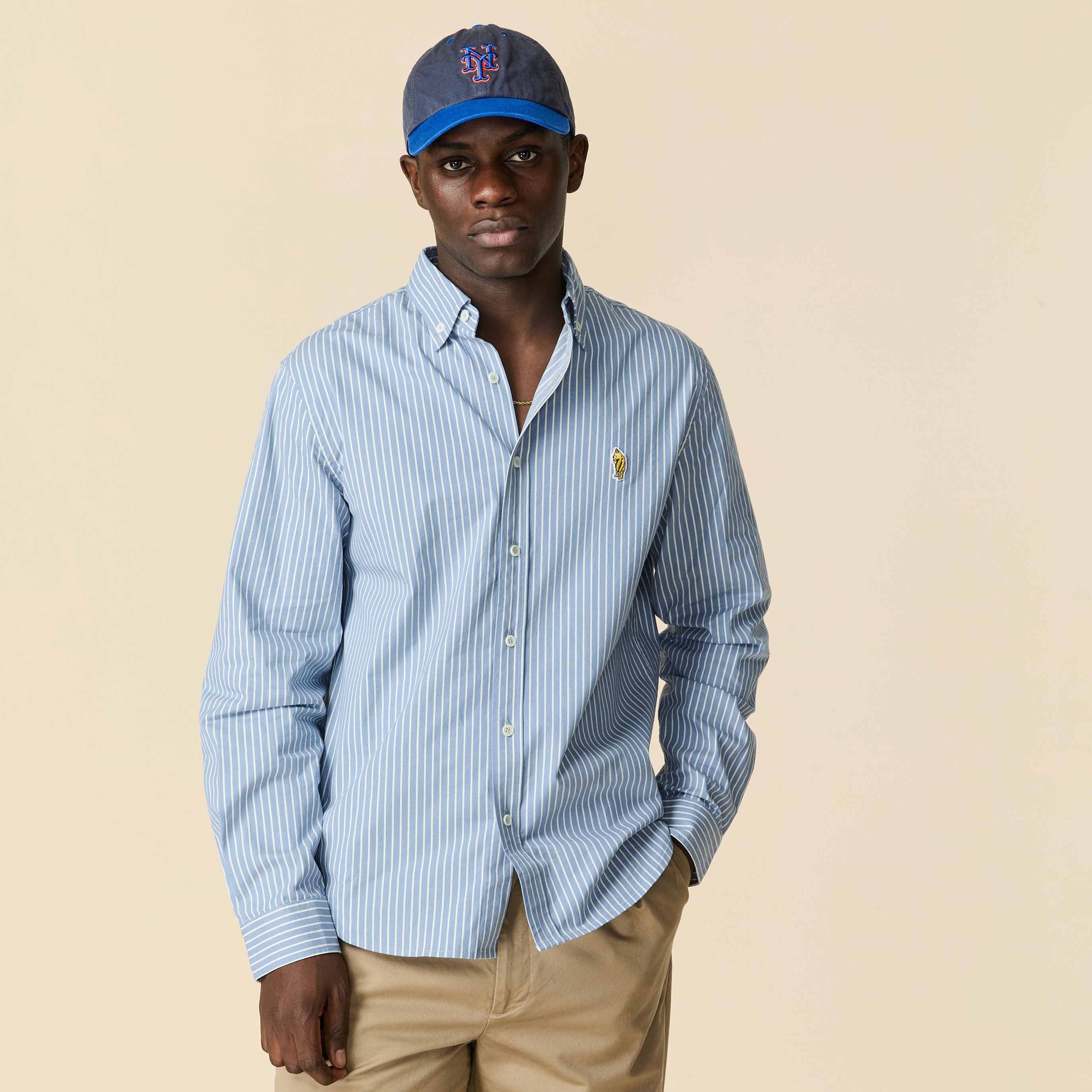 • Classic striped button-down shirt with an embroidered Winnie-the-Pooh icon on the left chest