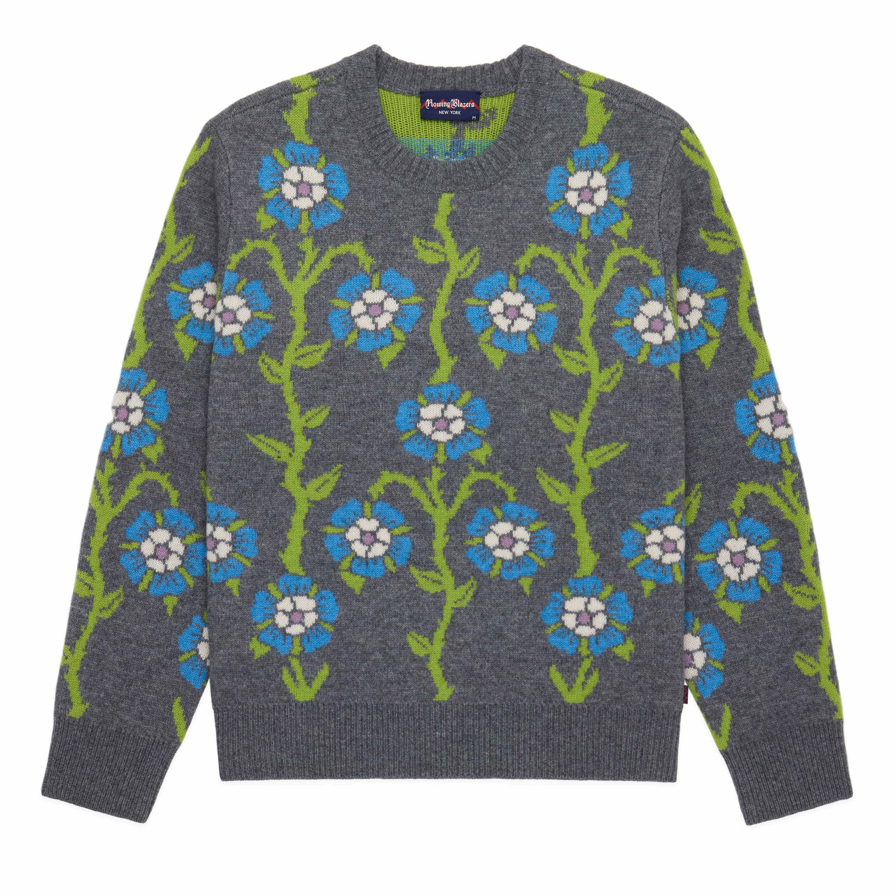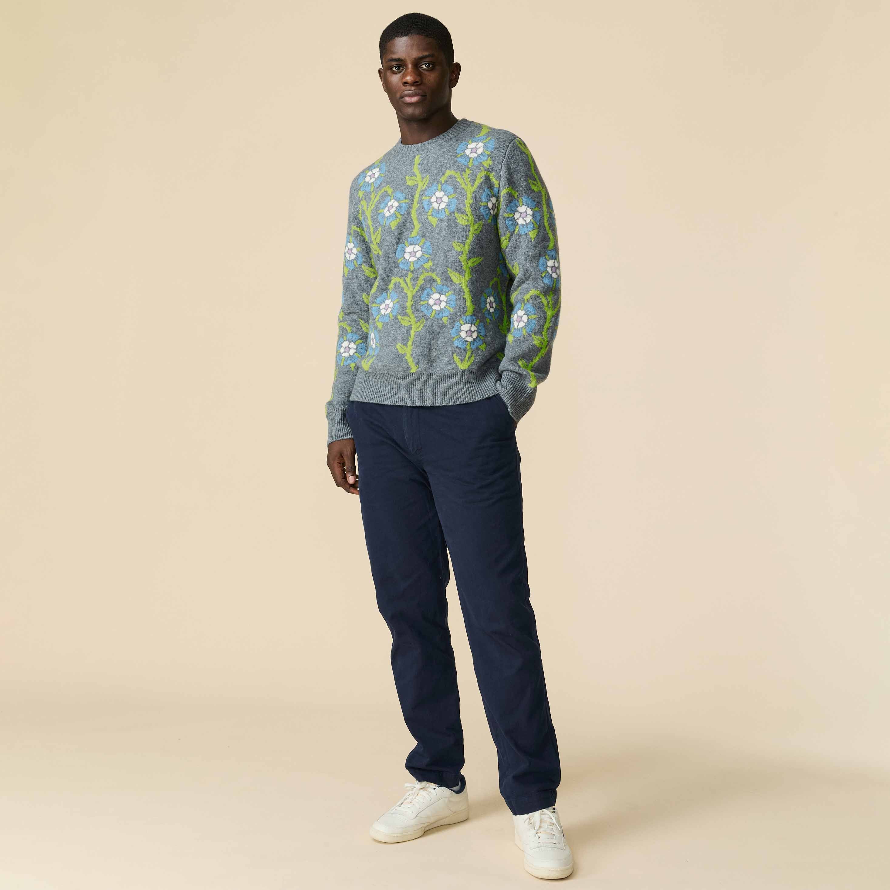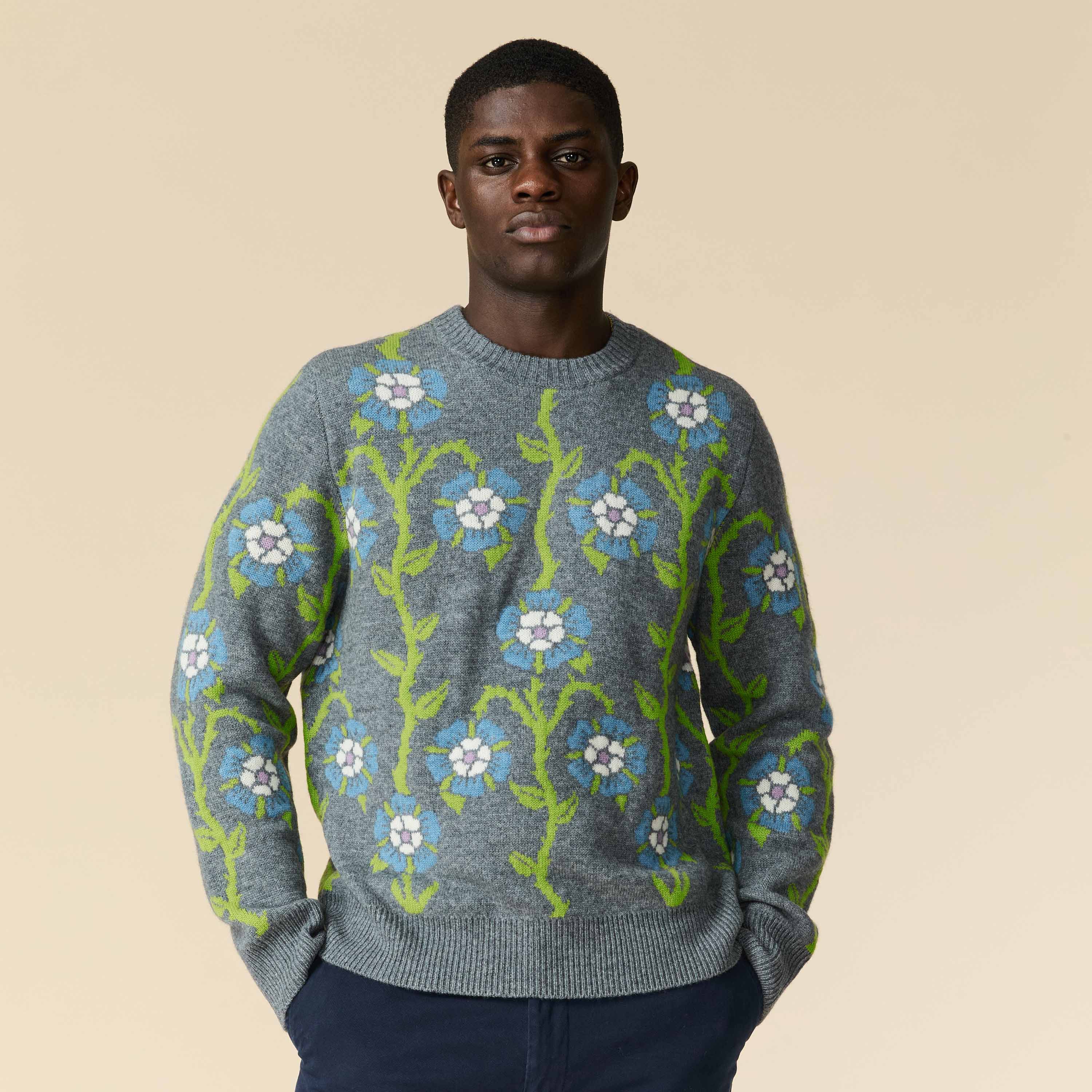 - Men’s wool-and-cashmere blend crewneck sweater with an all-over Tudor rose motif