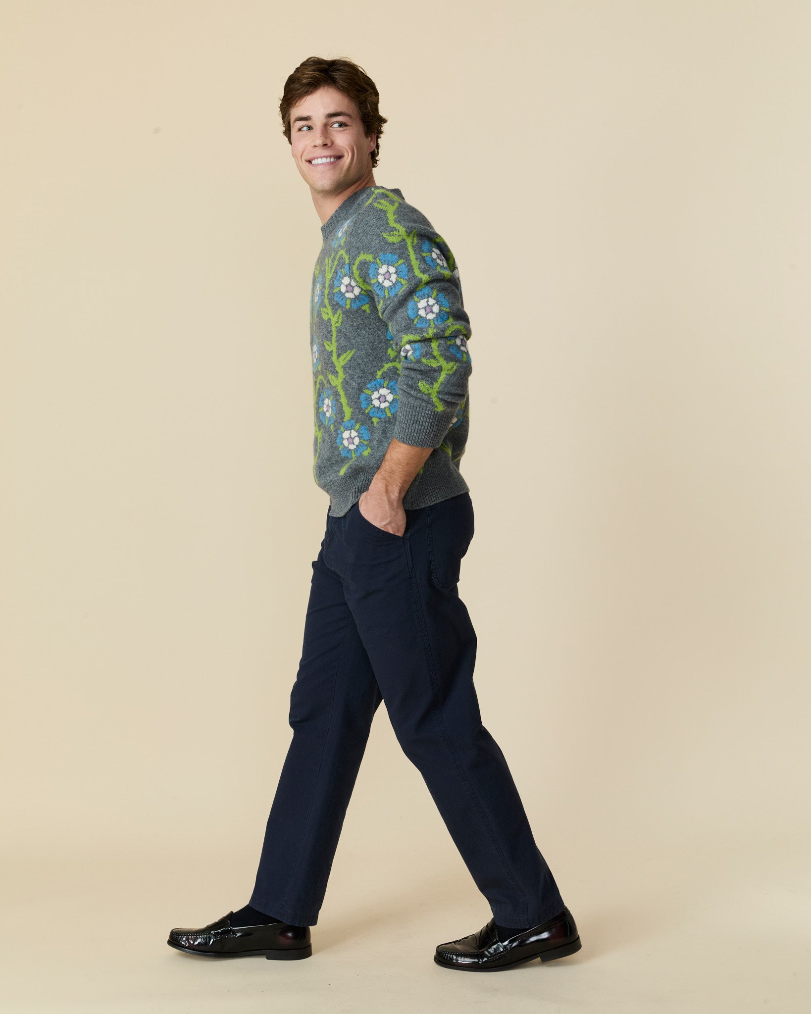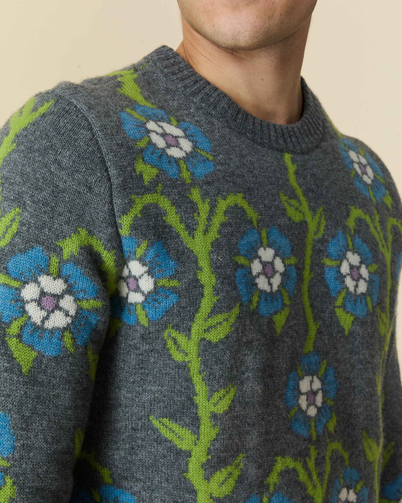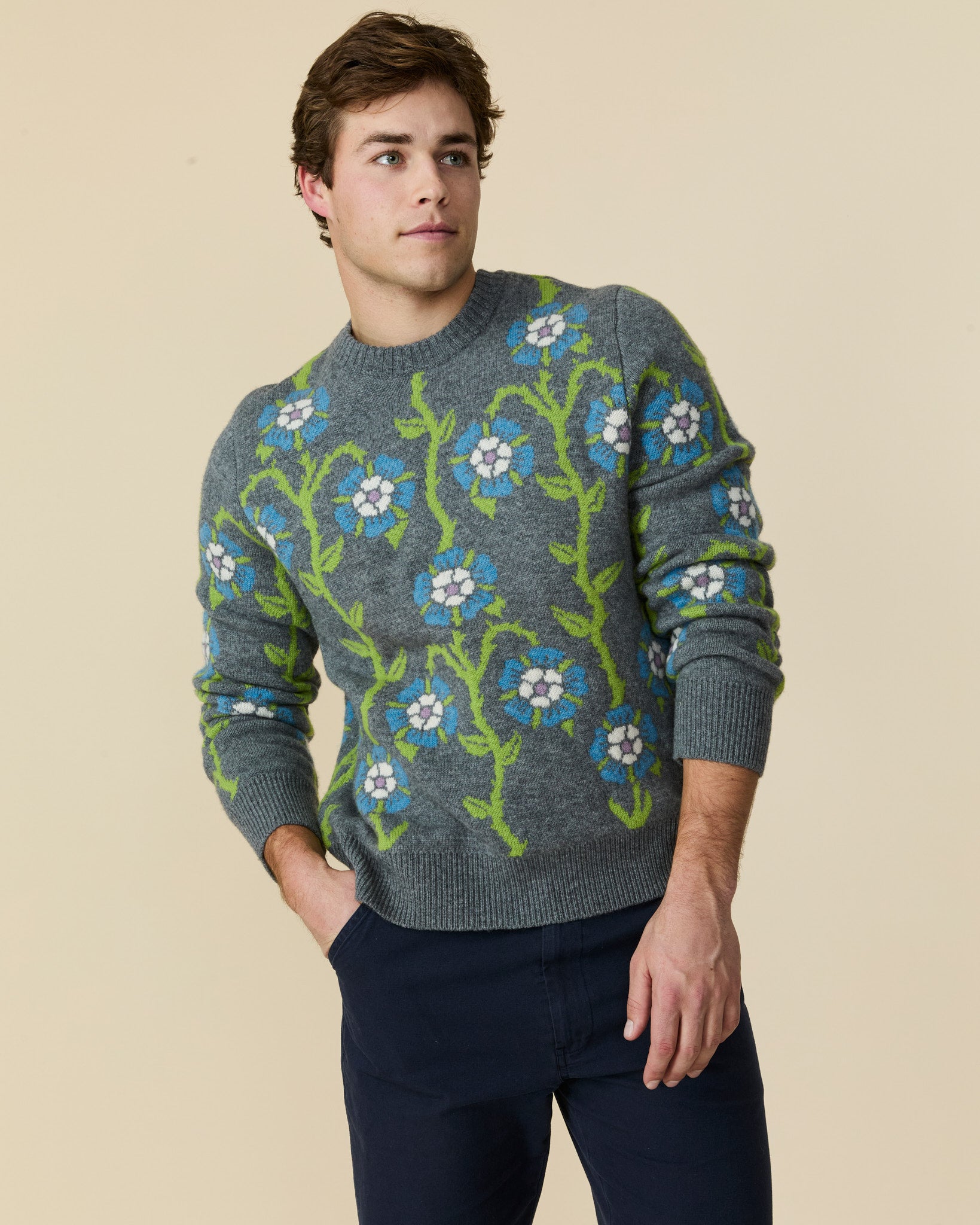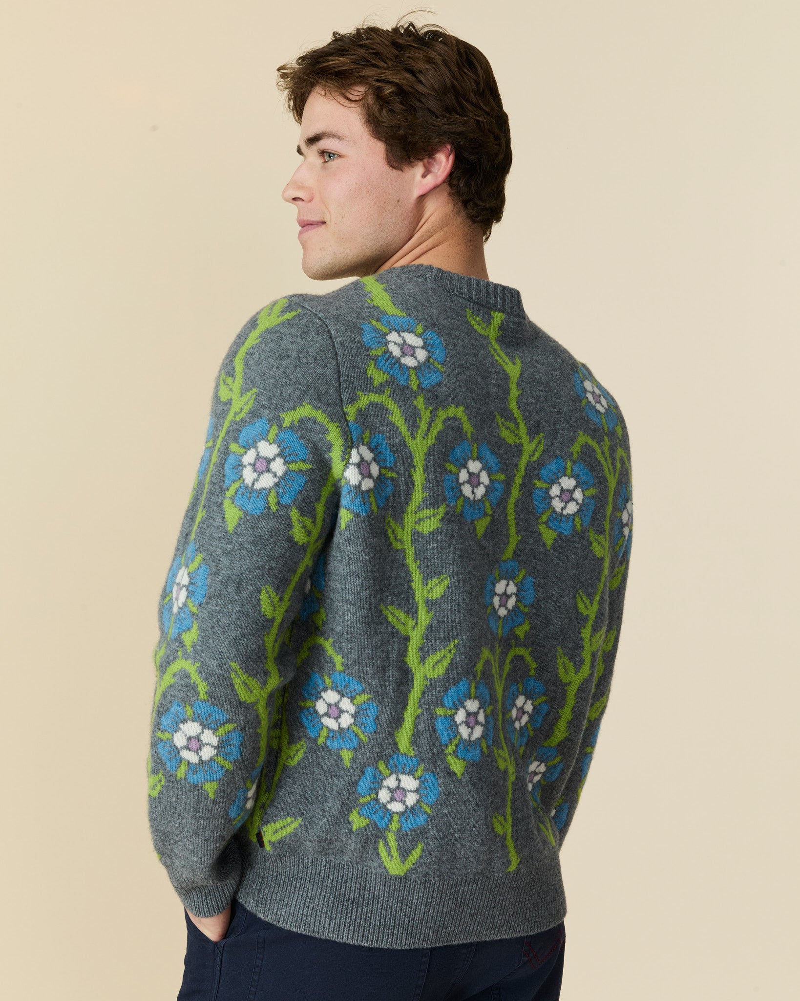- Men’s wool-and-cashmere blend crewneck sweater with an all-over Tudor rose motif