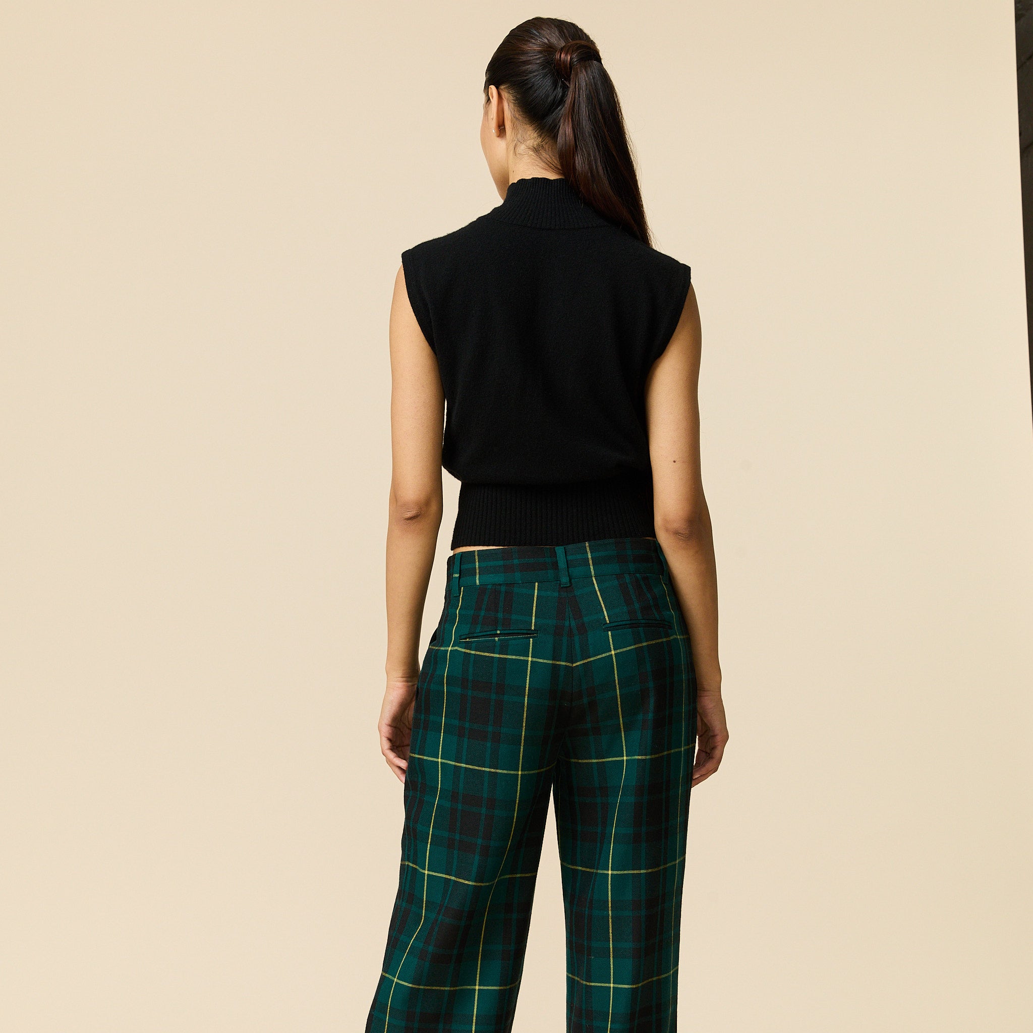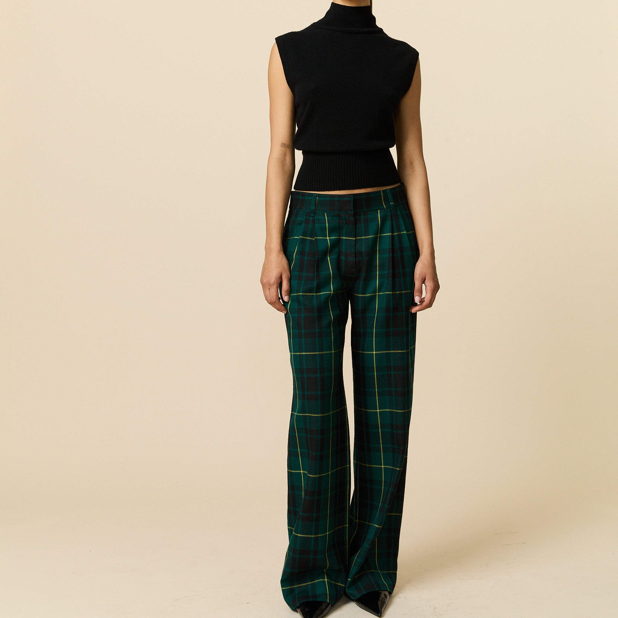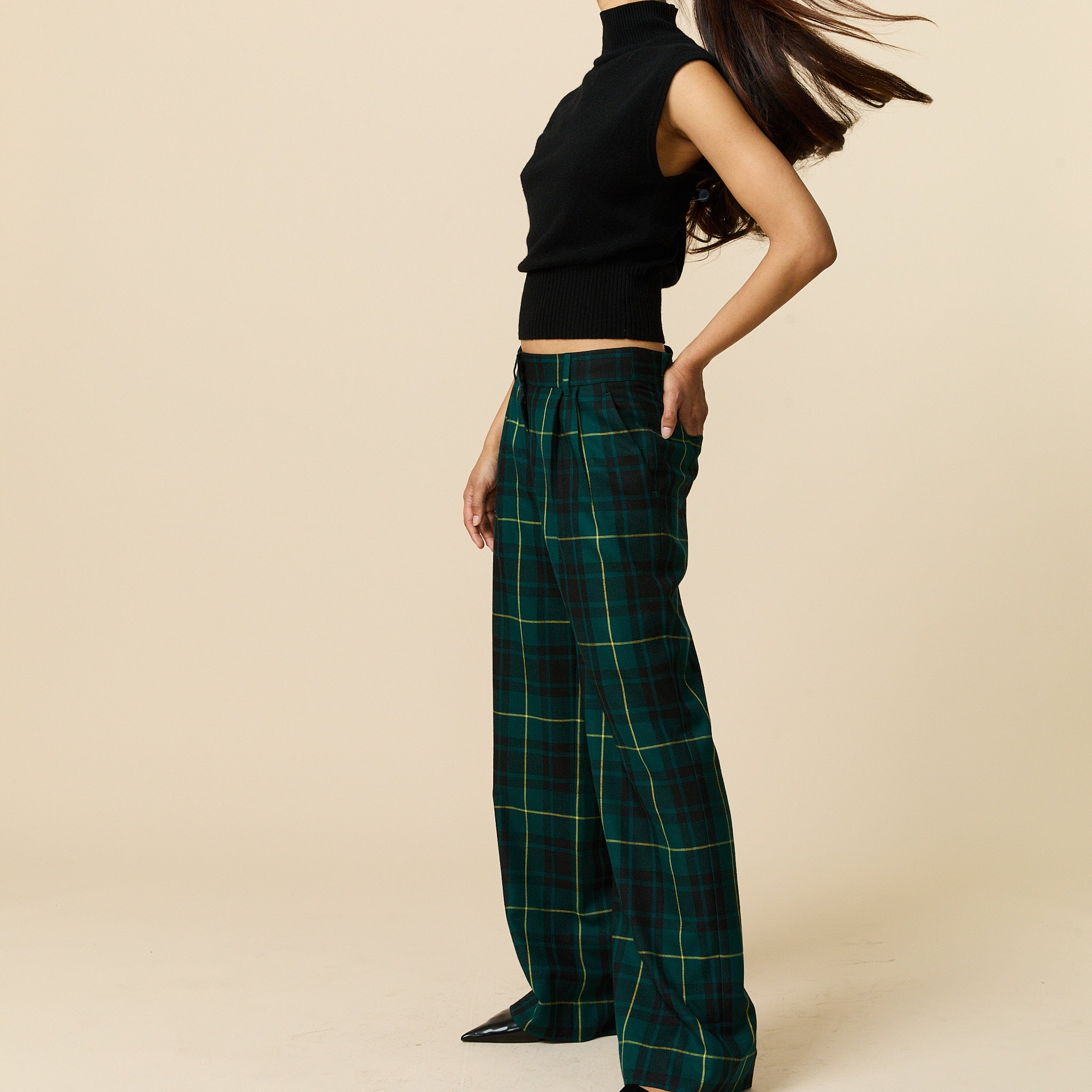 • Women’s flat-front wool blend trousers in classic Gordon Modern tartan Flat front.