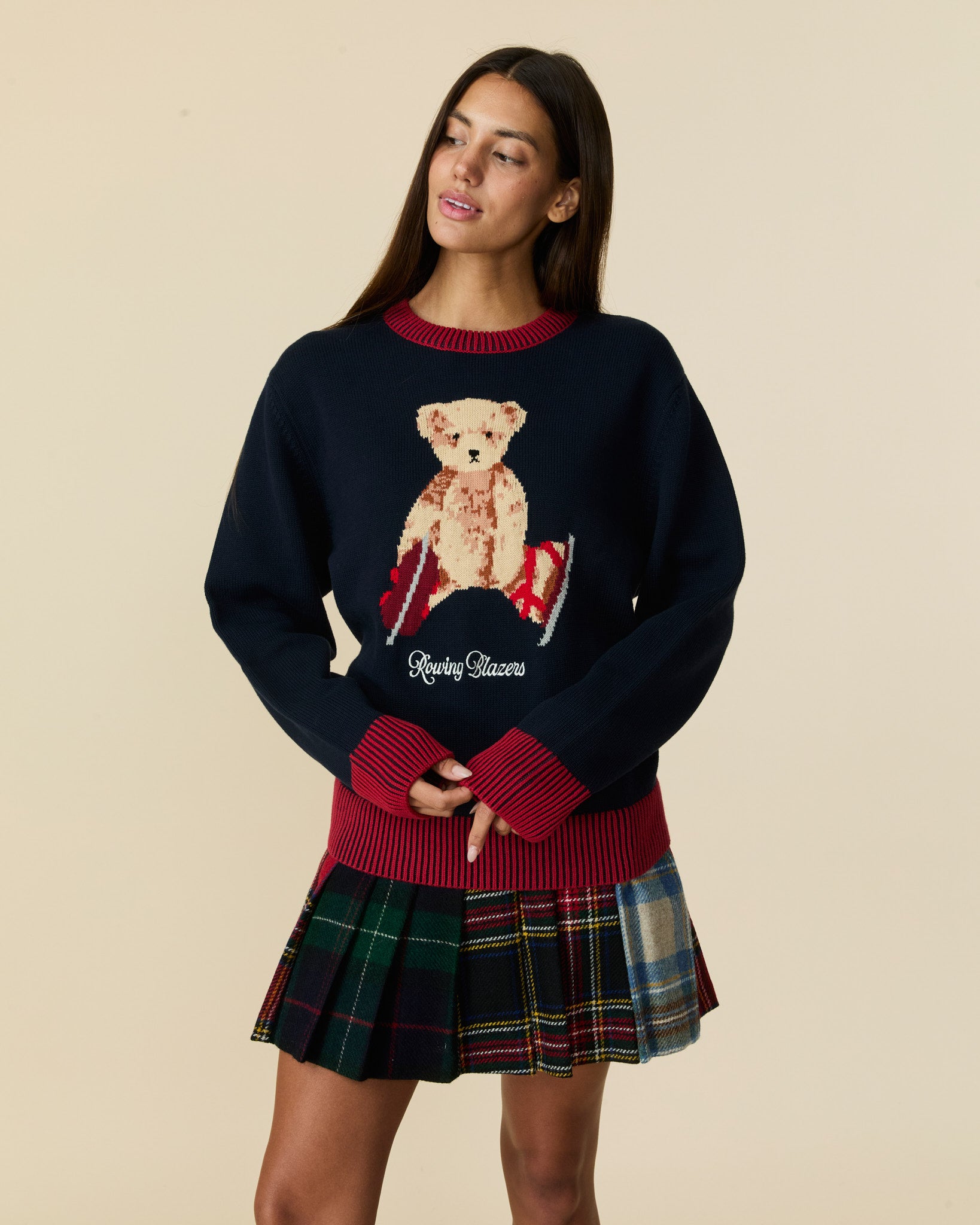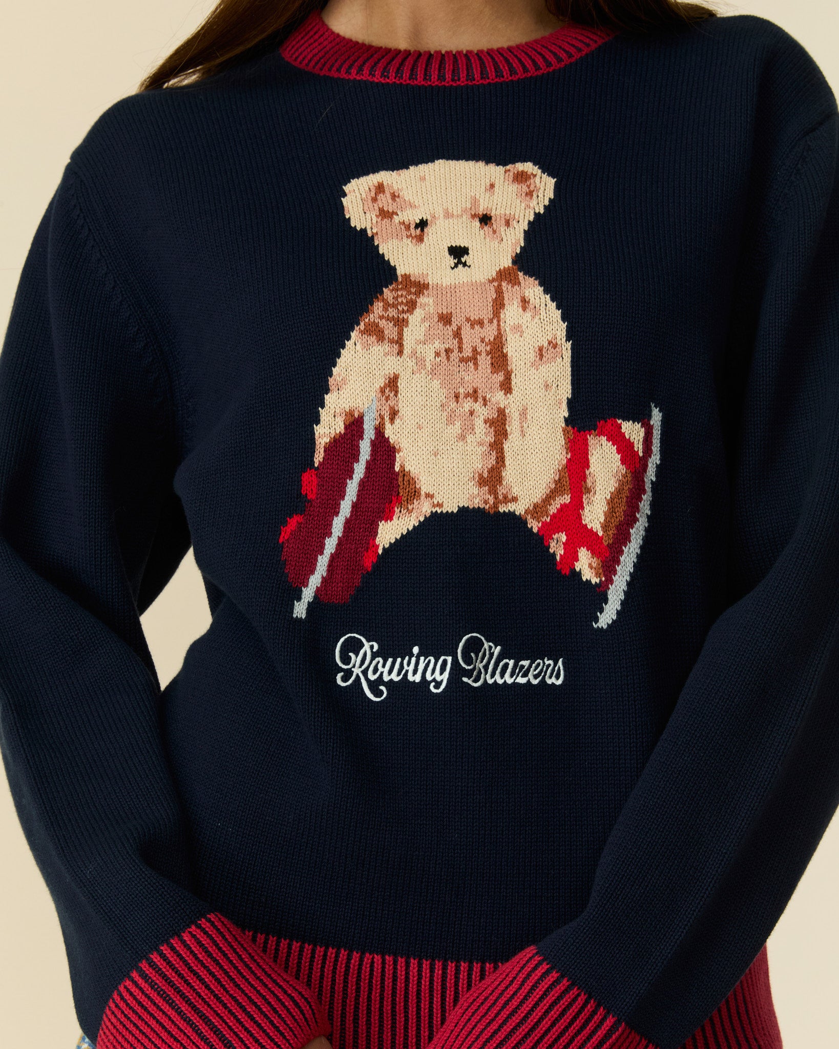 • Cotton-and-cashmere blend crewneck sweater with a bear in ice skates on the chest