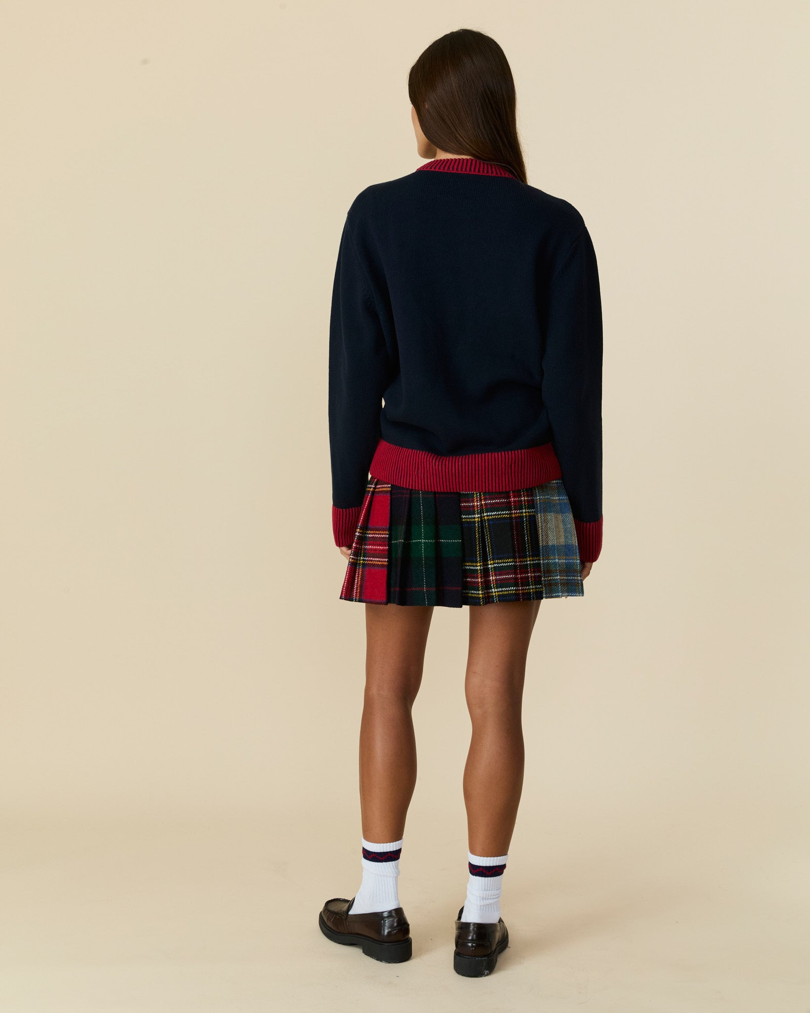 • Ribbed collar, cuffs and hem. Intarsia-knit graphics