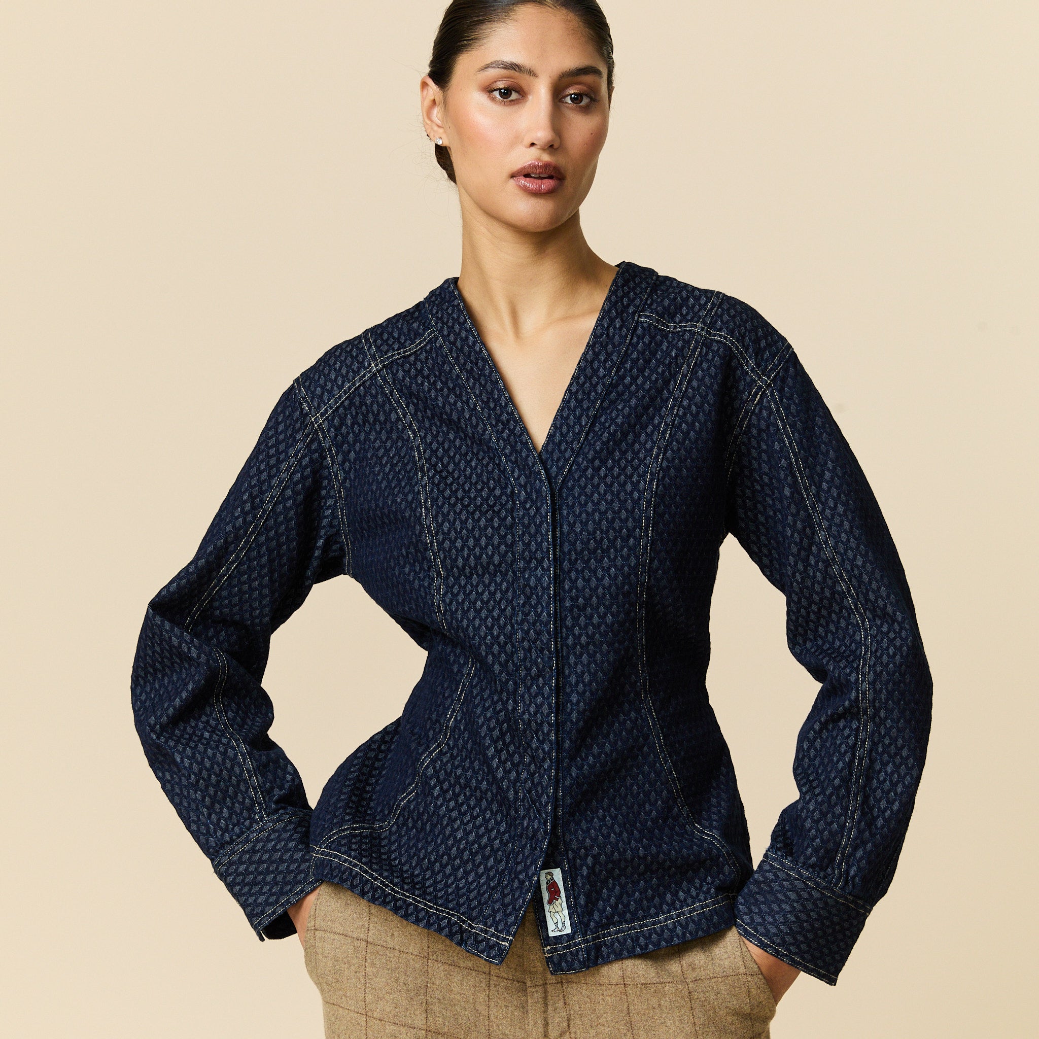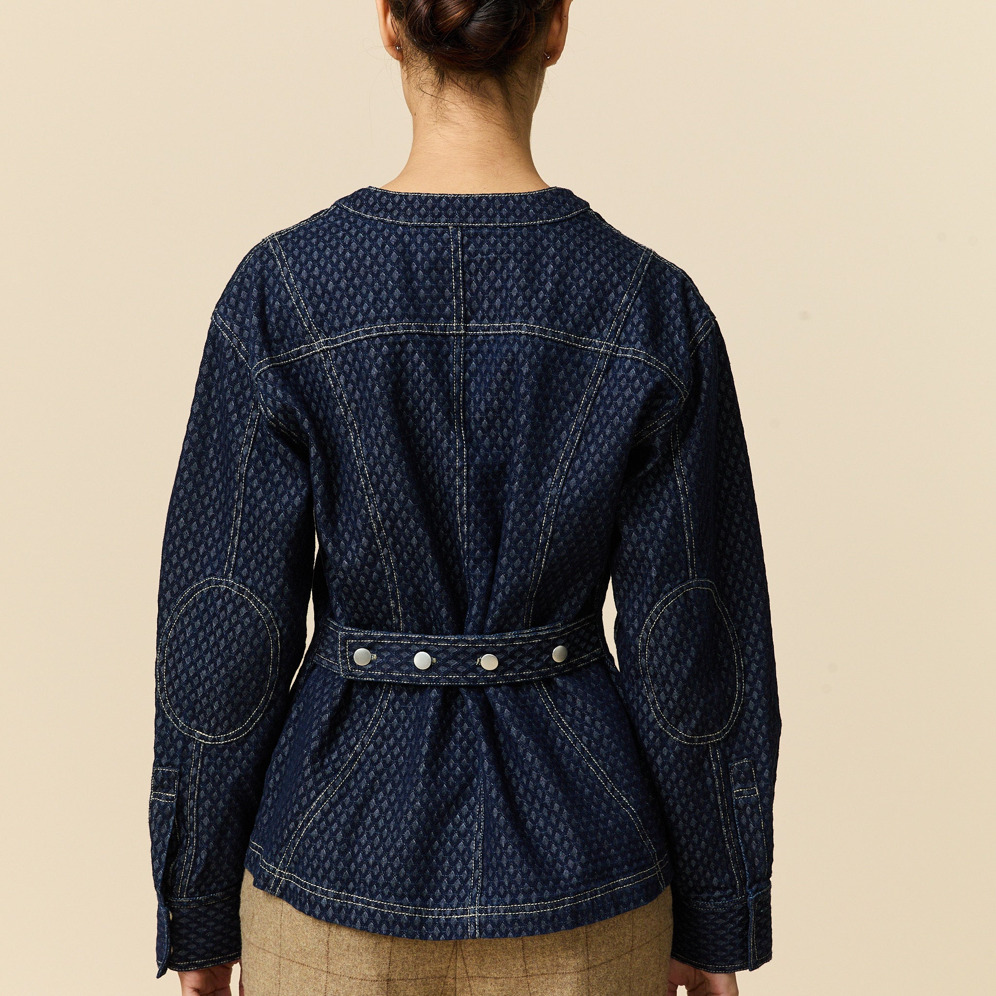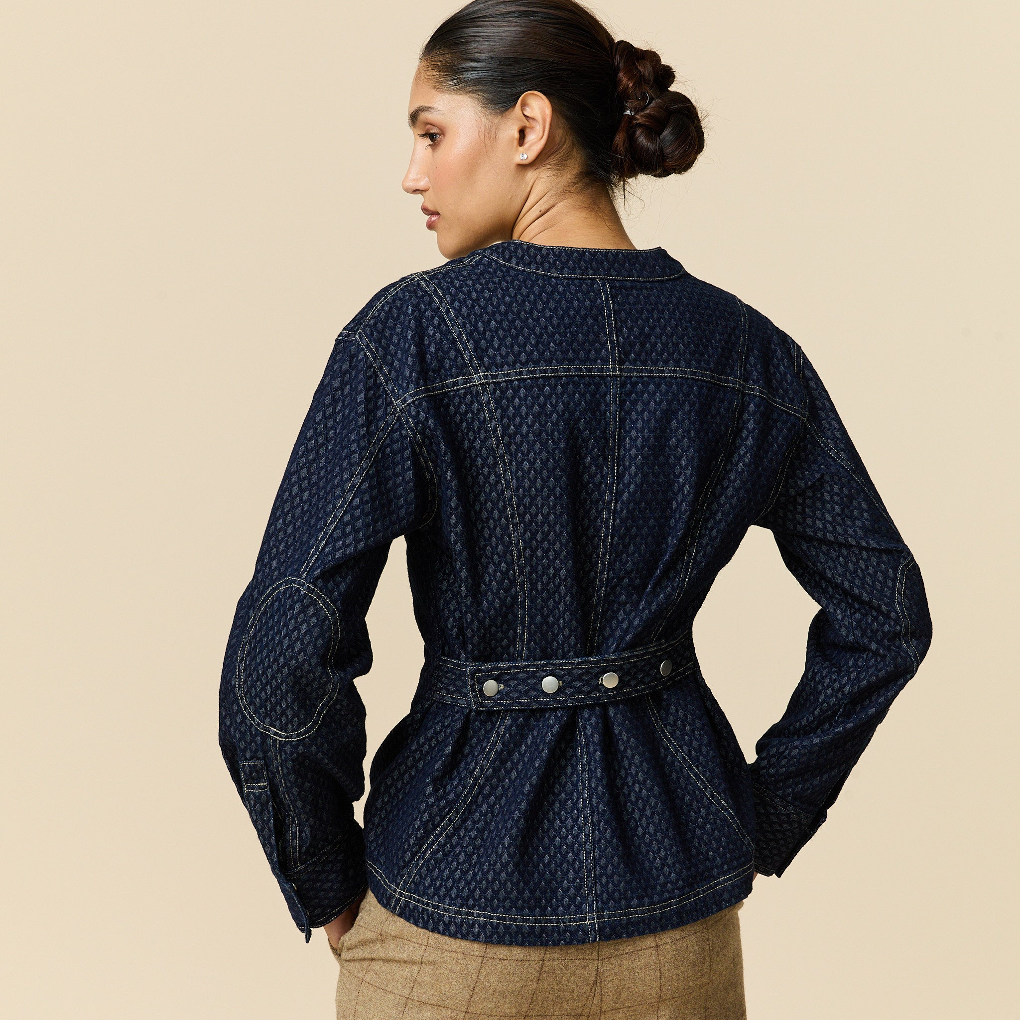Women's Indigo Jacquard Denim Riding Jacket Navy