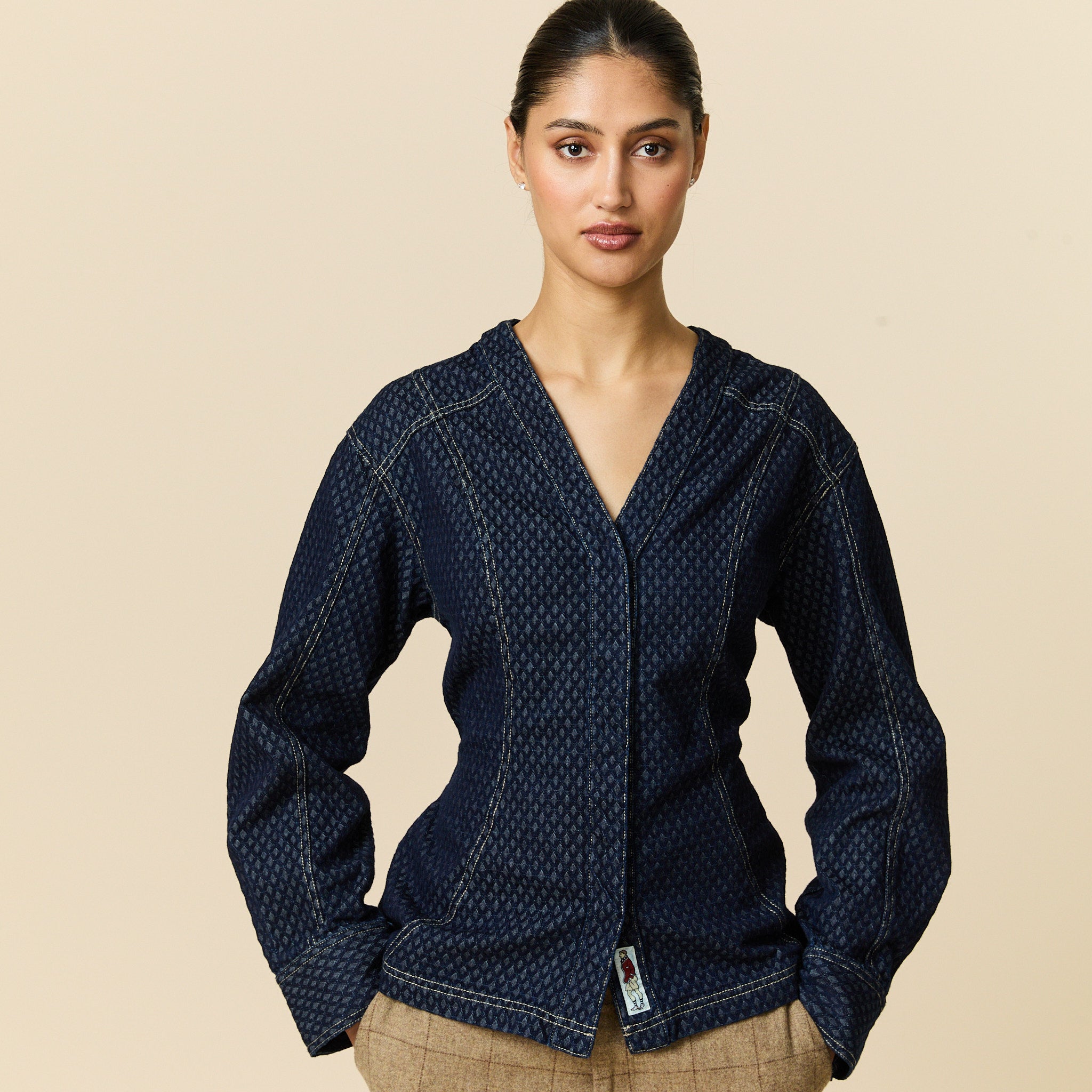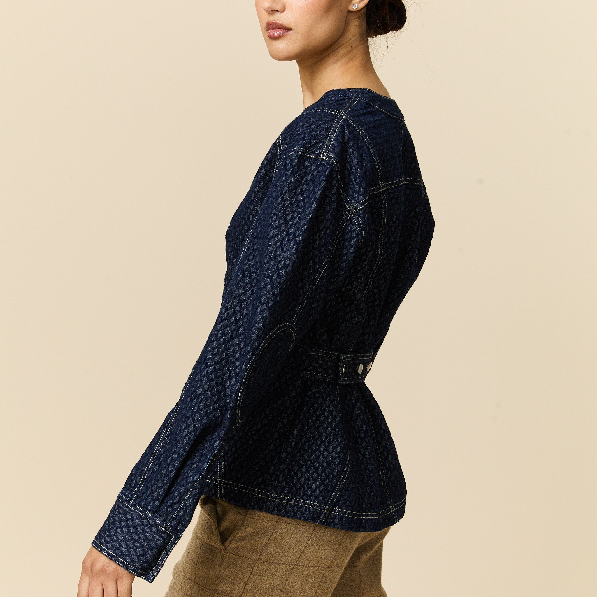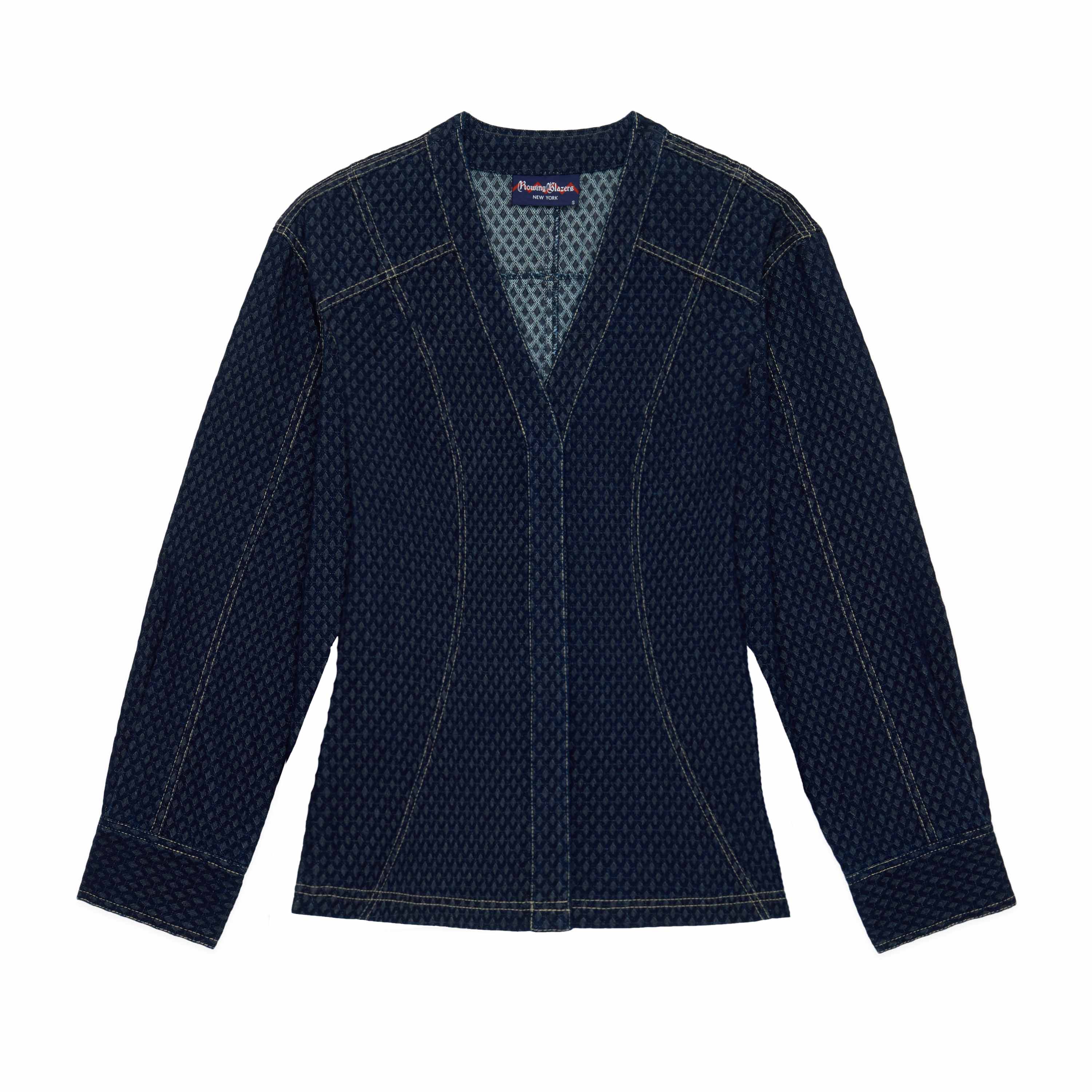 Women's Indigo Jacquard Denim Riding Jacket Navy