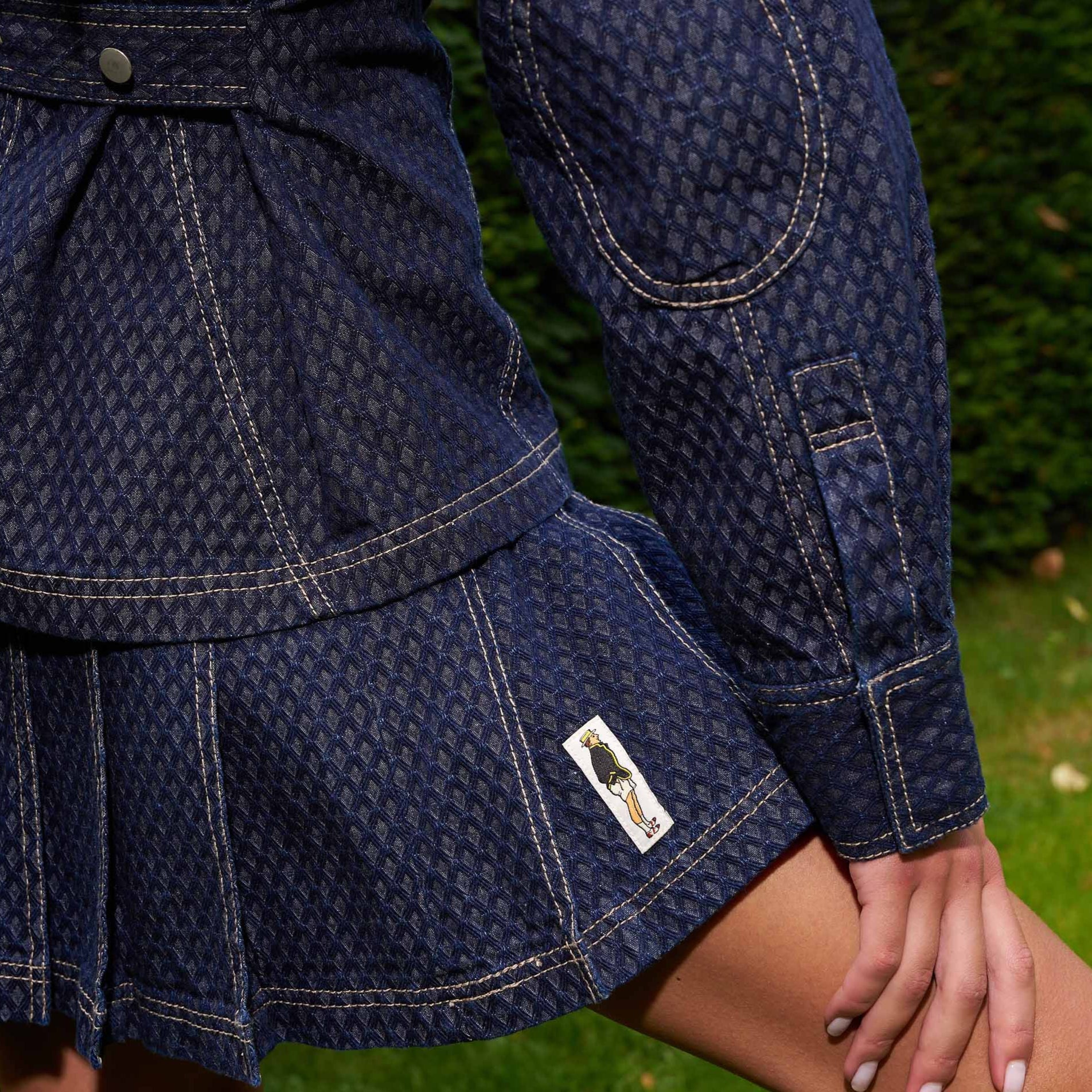 - Women's cotton denim riding jacket with an all over jacquard-knit tonal pattern
