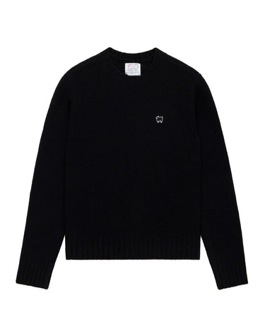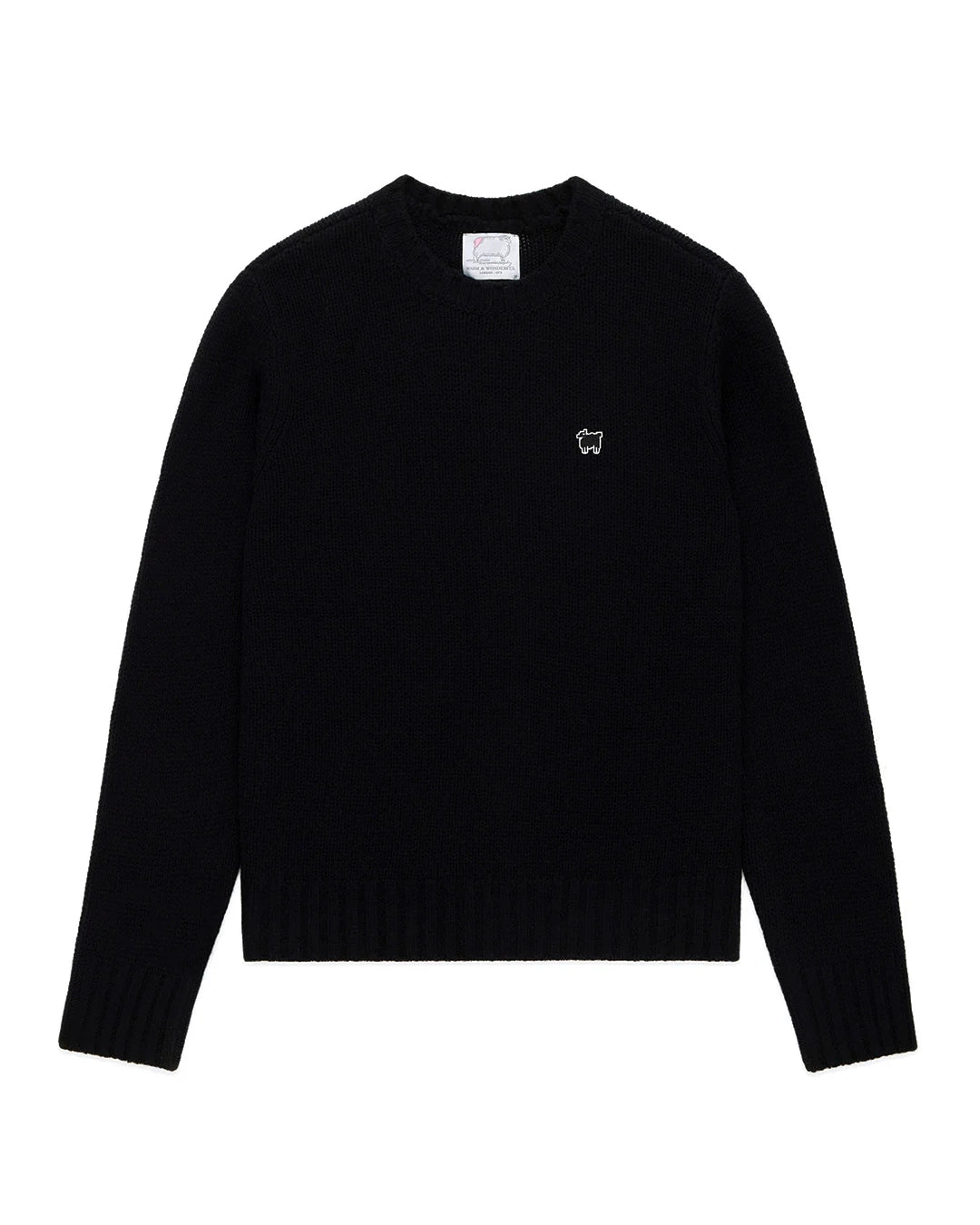 - Wool-and-cashmere blend crewneck sweater featuring Warm & Wonderful’s iconic “Black Sheep” icon on the left chest