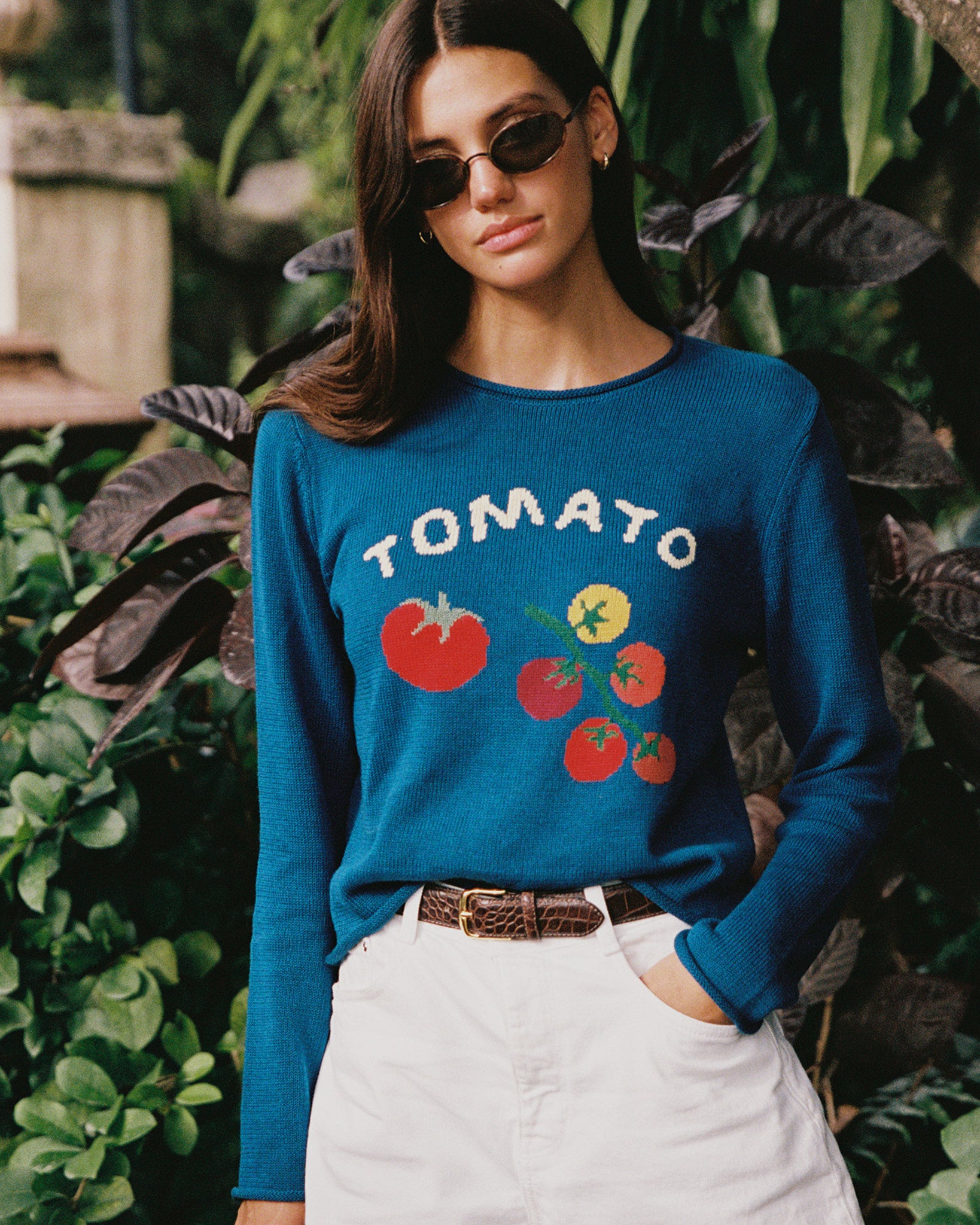 - Bold “TOMATO” motif with tomatoes-on-the-vine detailing